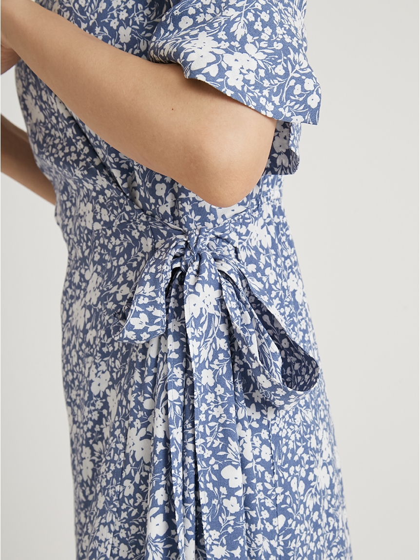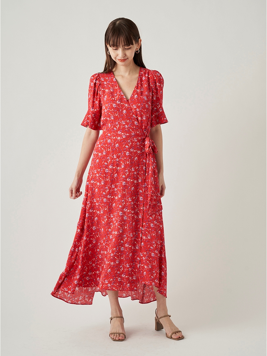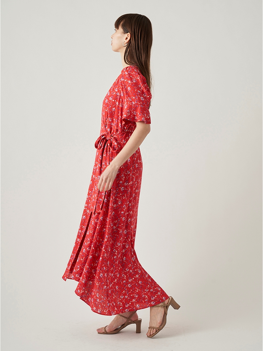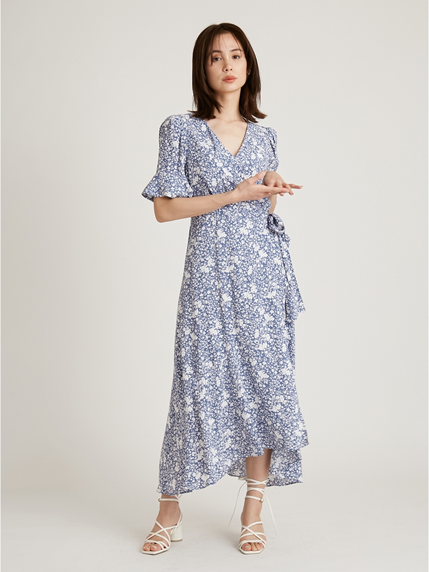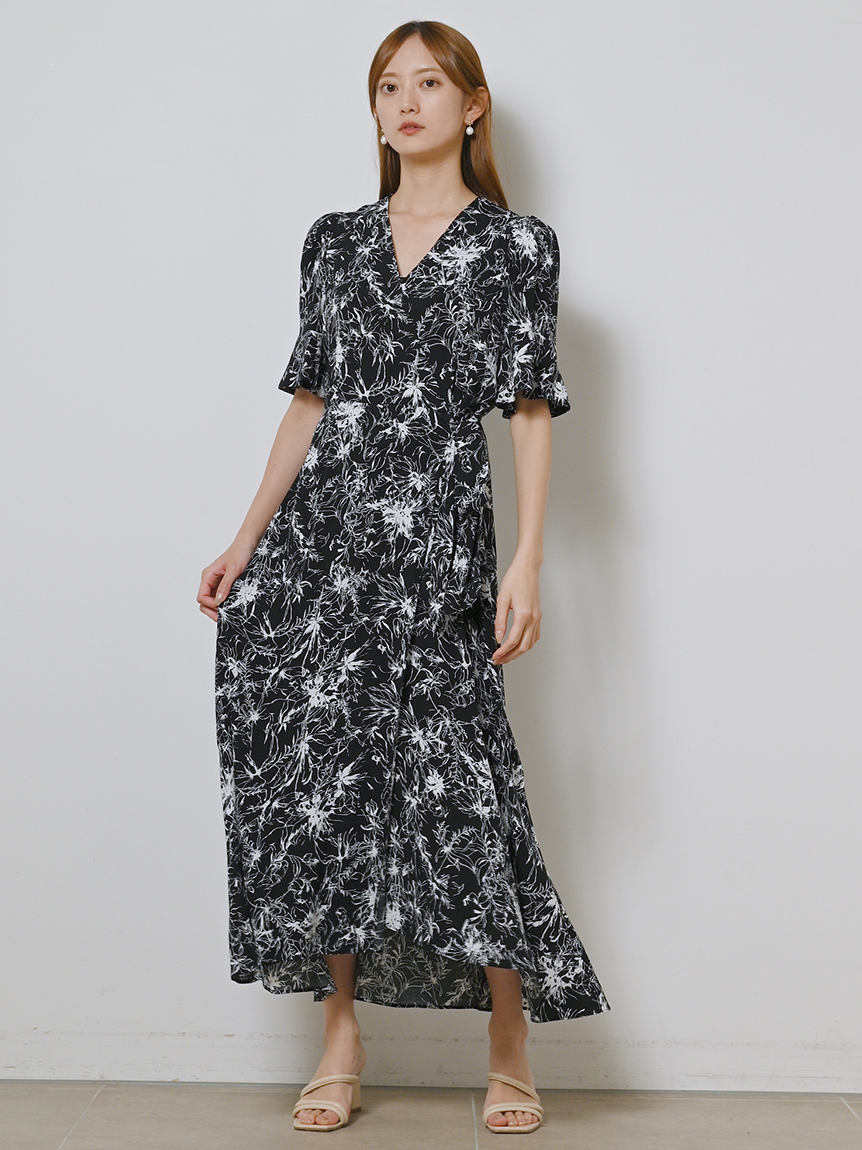 サイドでリボンを結んだカシュクールデザインで大人な雰囲気に仕上げたワンピース。切り替えを入れくびれを作った丸みのあるスリーブが愛らしさをぐっと高めています。上品に広がるナローマーメイドシルエットは、バックウエストにゴムギャザーを効かせることでスタイルアップ効果◎。存在感たっぷりのプリントなので1枚でもサマになり、夏らしいスタイリングが完成します。