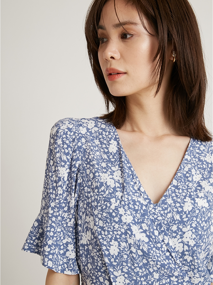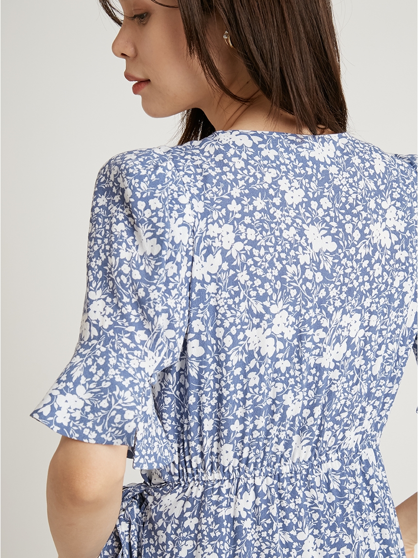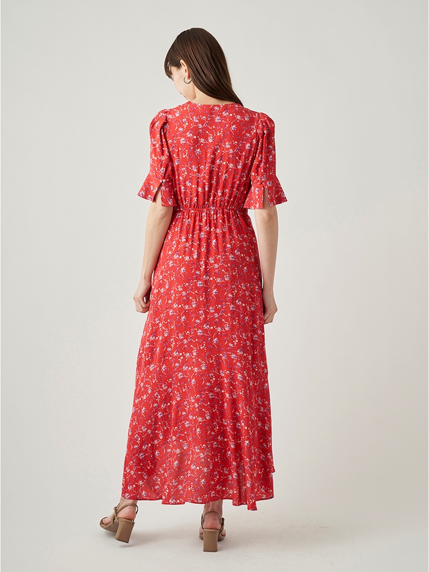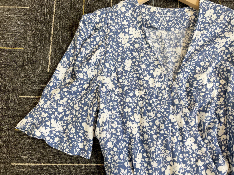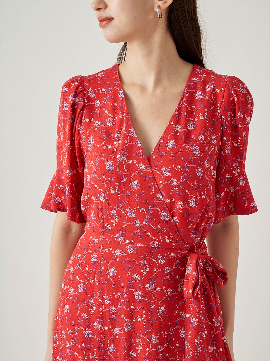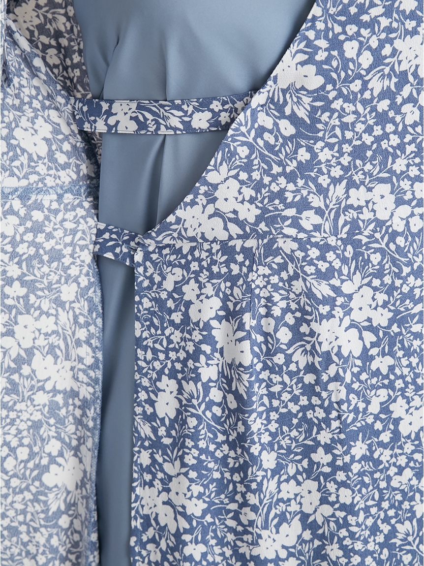 サイドでリボンを結んだカシュクールデザインで大人な雰囲気に仕上げたワンピース。切り替えを入れくびれを作った丸みのあるスリーブが愛らしさをぐっと高めています。上品に広がるナローマーメイドシルエットは、バックウエストにゴムギャザーを効かせることでスタイルアップ効果◎。存在感たっぷりのプリントなので1枚でもサマになり、夏らしいスタイリングが完成します。