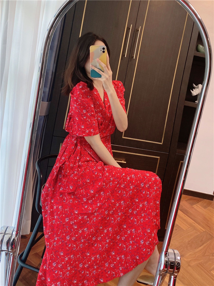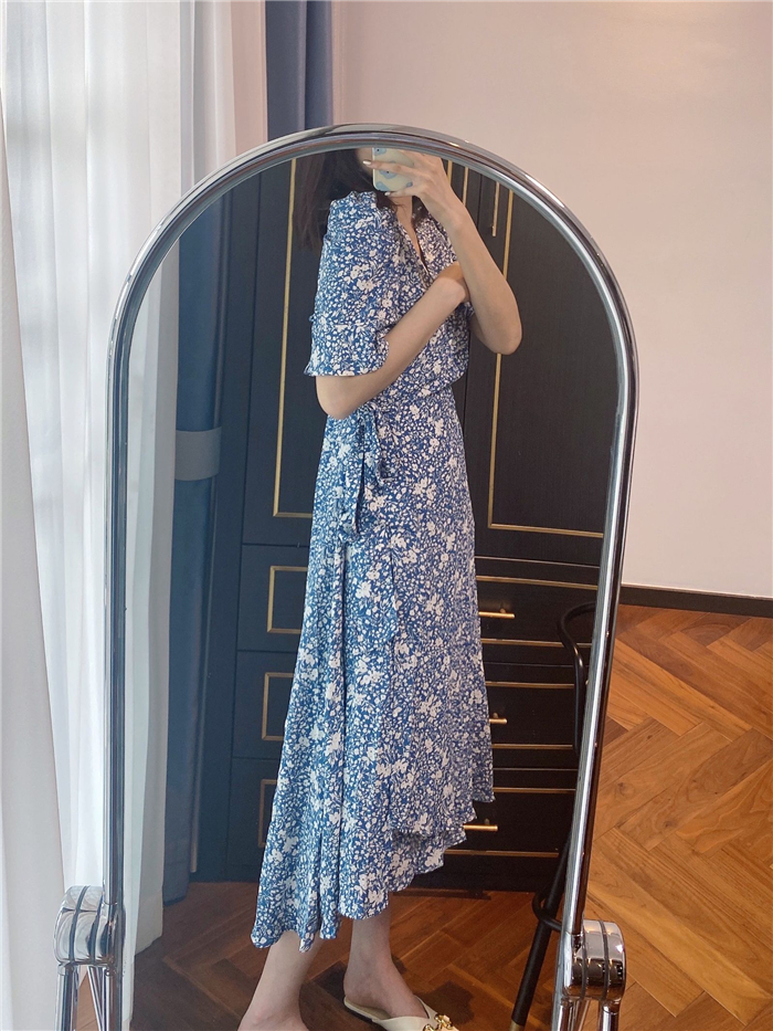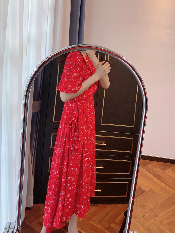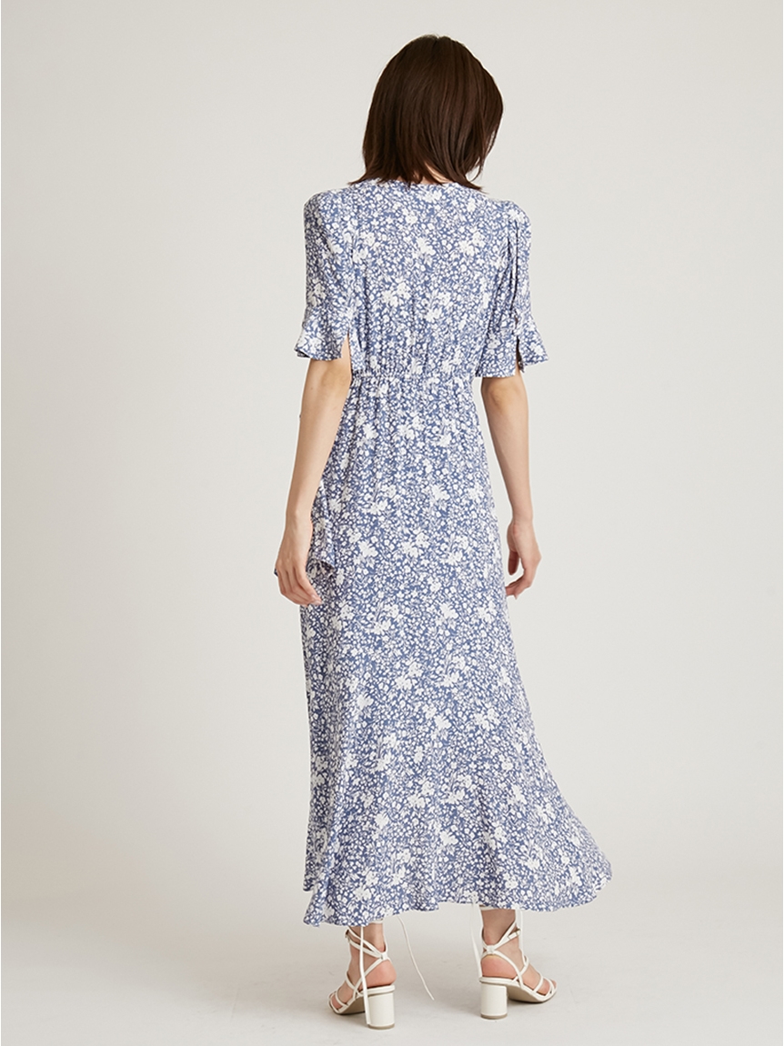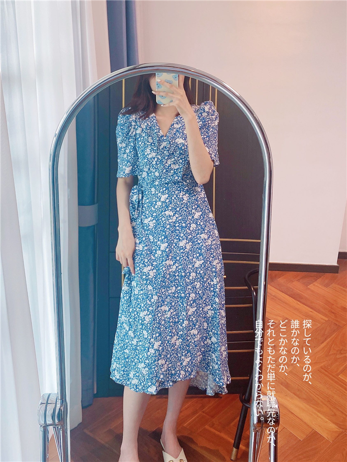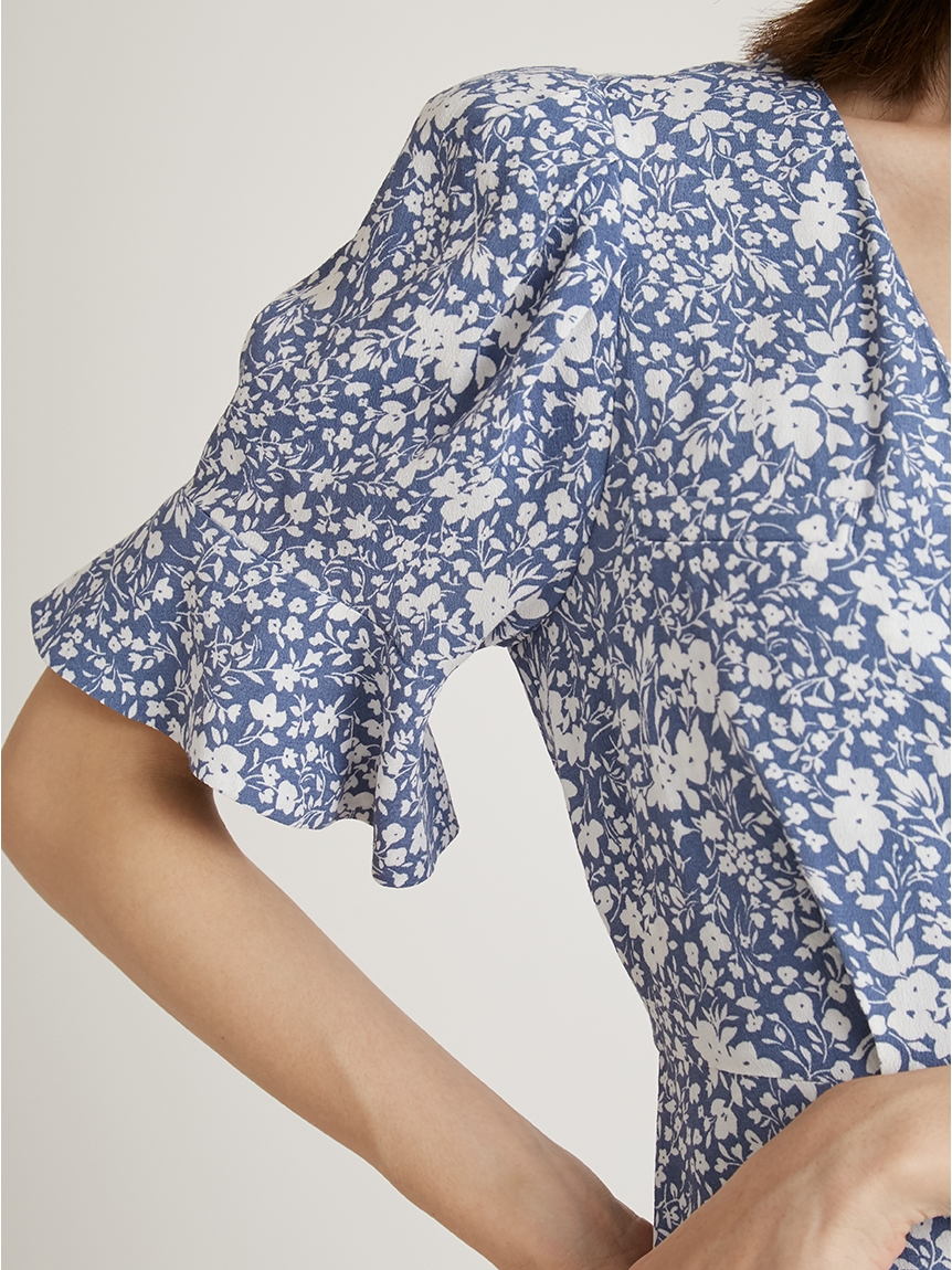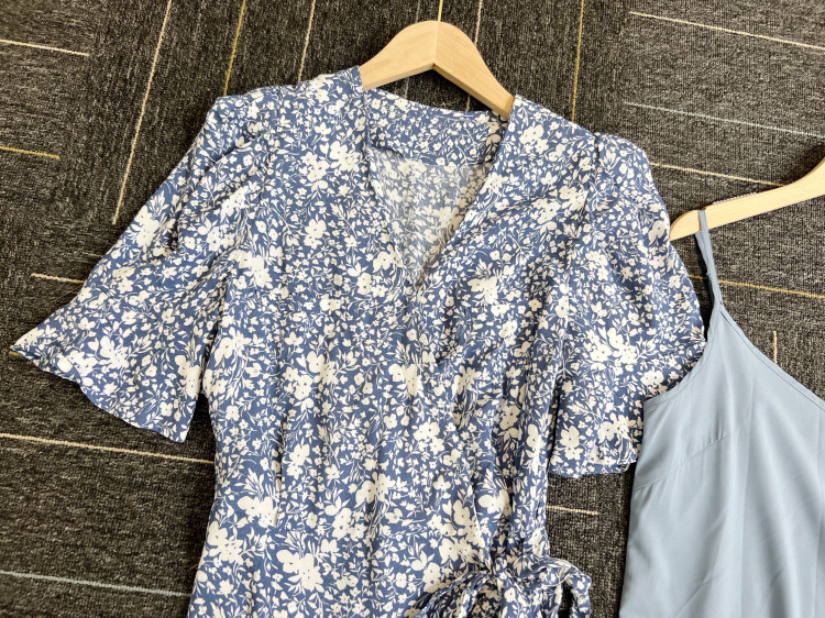 サイドでリボンを結んだカシュクールデザインで大人な雰囲気に仕上げたワンピース。切り替えを入れくびれを作った丸みのあるスリーブが愛らしさをぐっと高めています。上品に広がるナローマーメイドシルエットは、バックウエストにゴムギャザーを効かせることでスタイルアップ効果◎。存在感たっぷりのプリントなので1枚でもサマになり、夏らしいスタイリングが完成します。