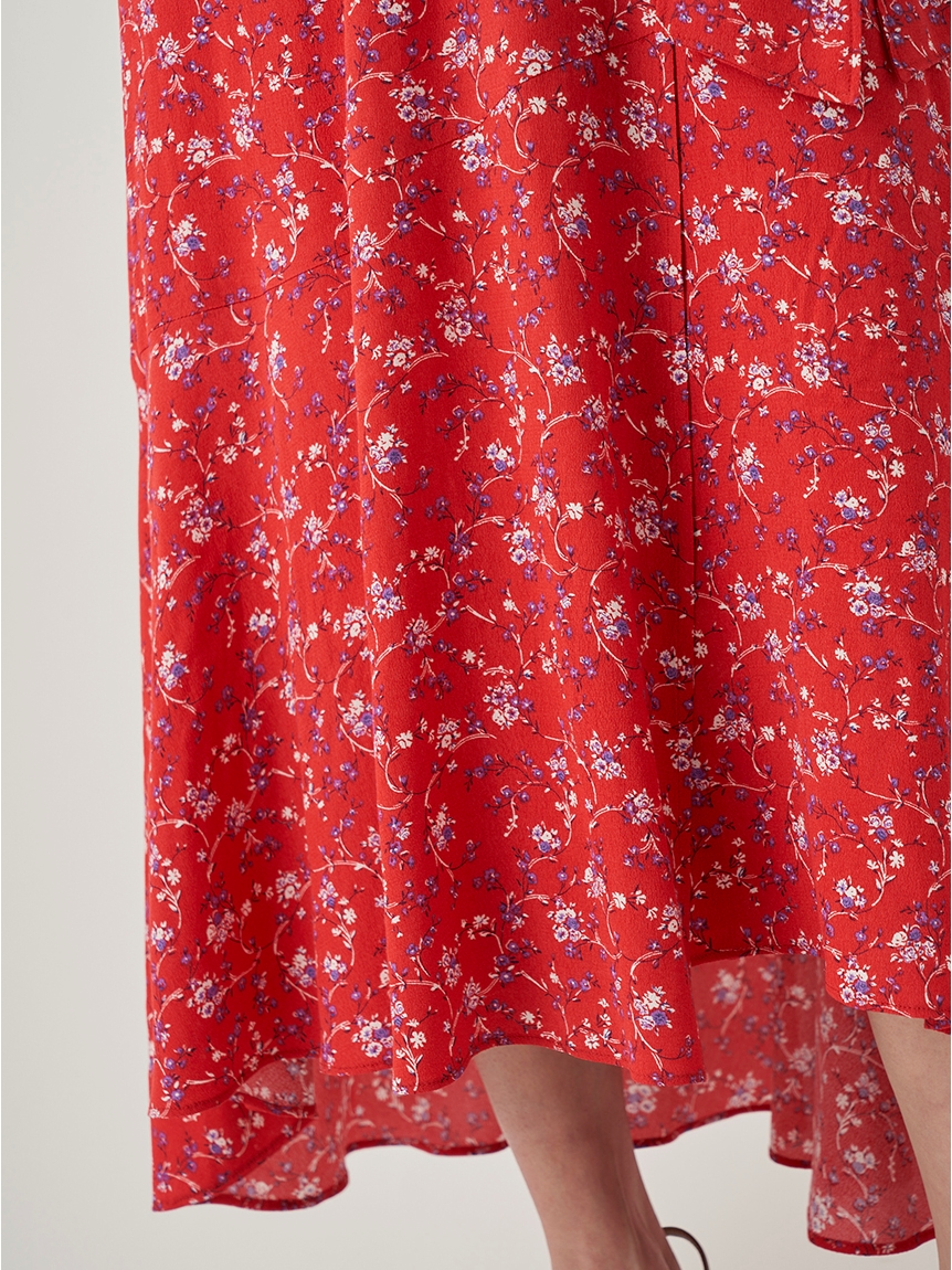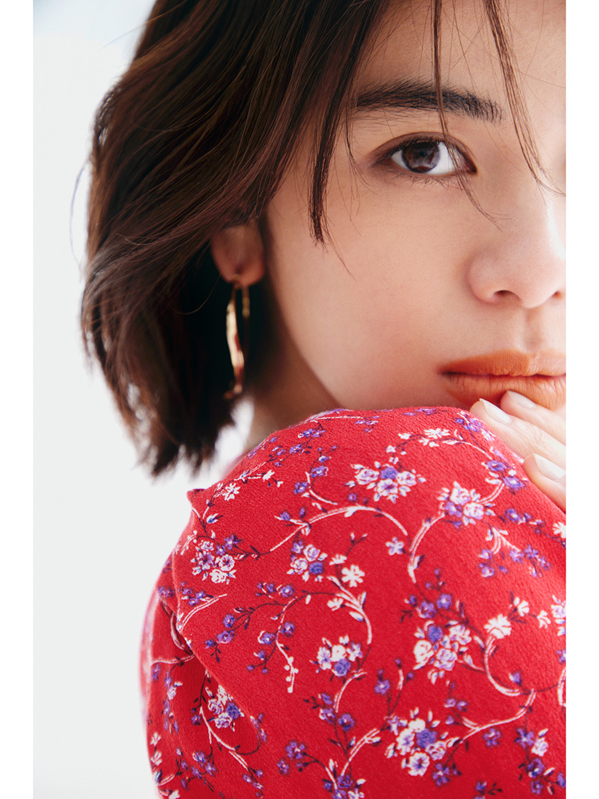 落ち感のある軽やかなファブリックを使用。華やかなレッド、鮮やかなブルー、モードなブラックのオリジナルフラワー柄3色をご用意しました。