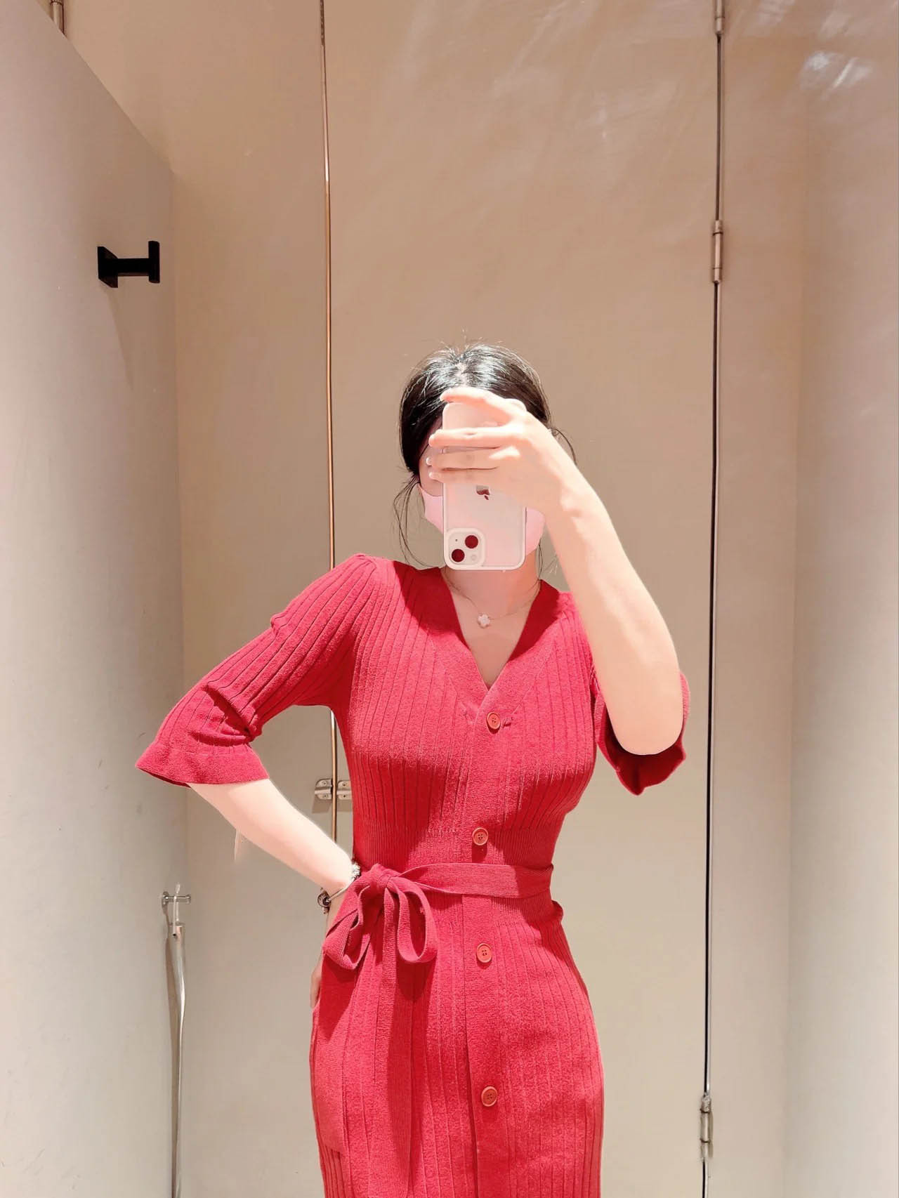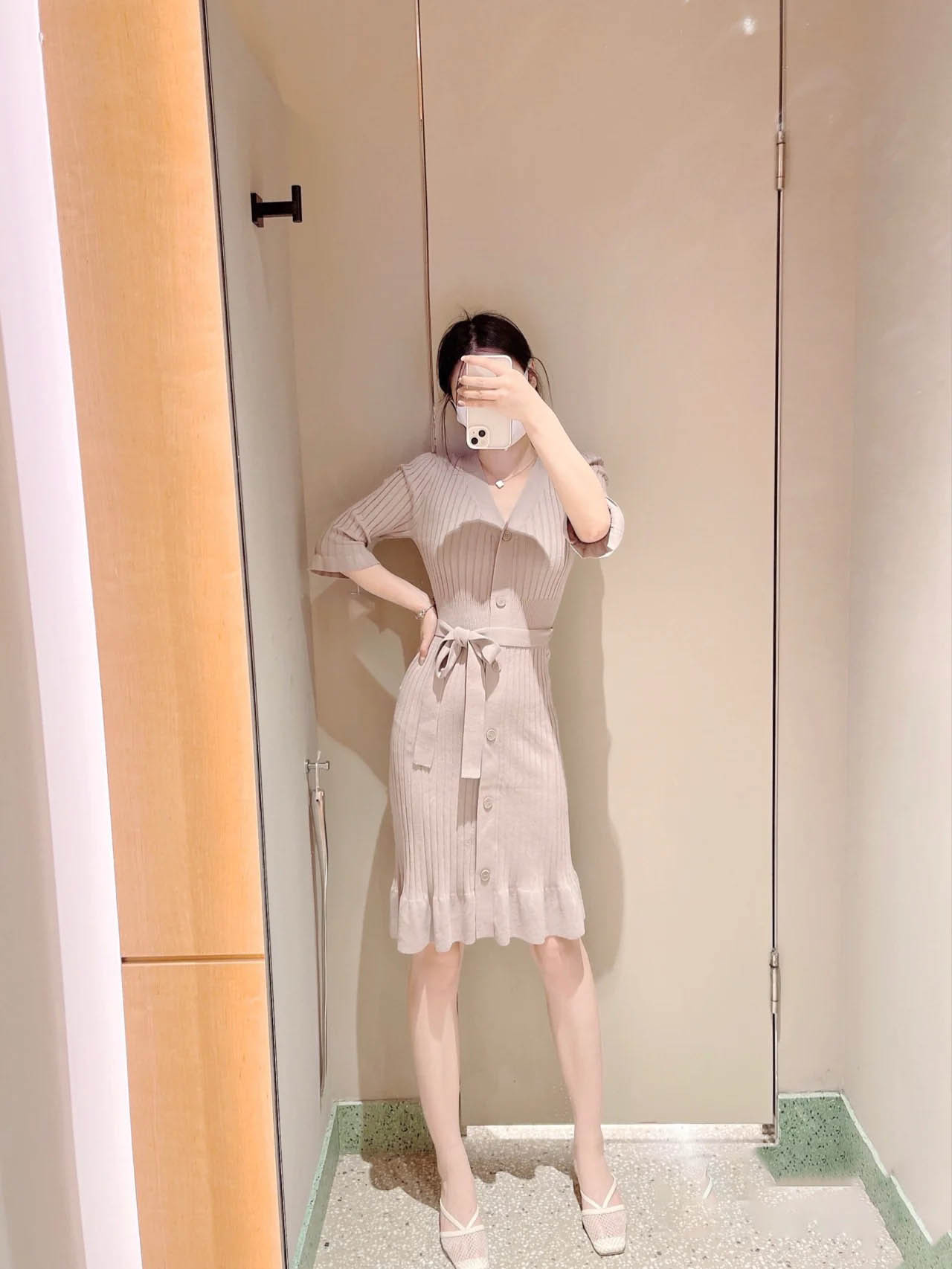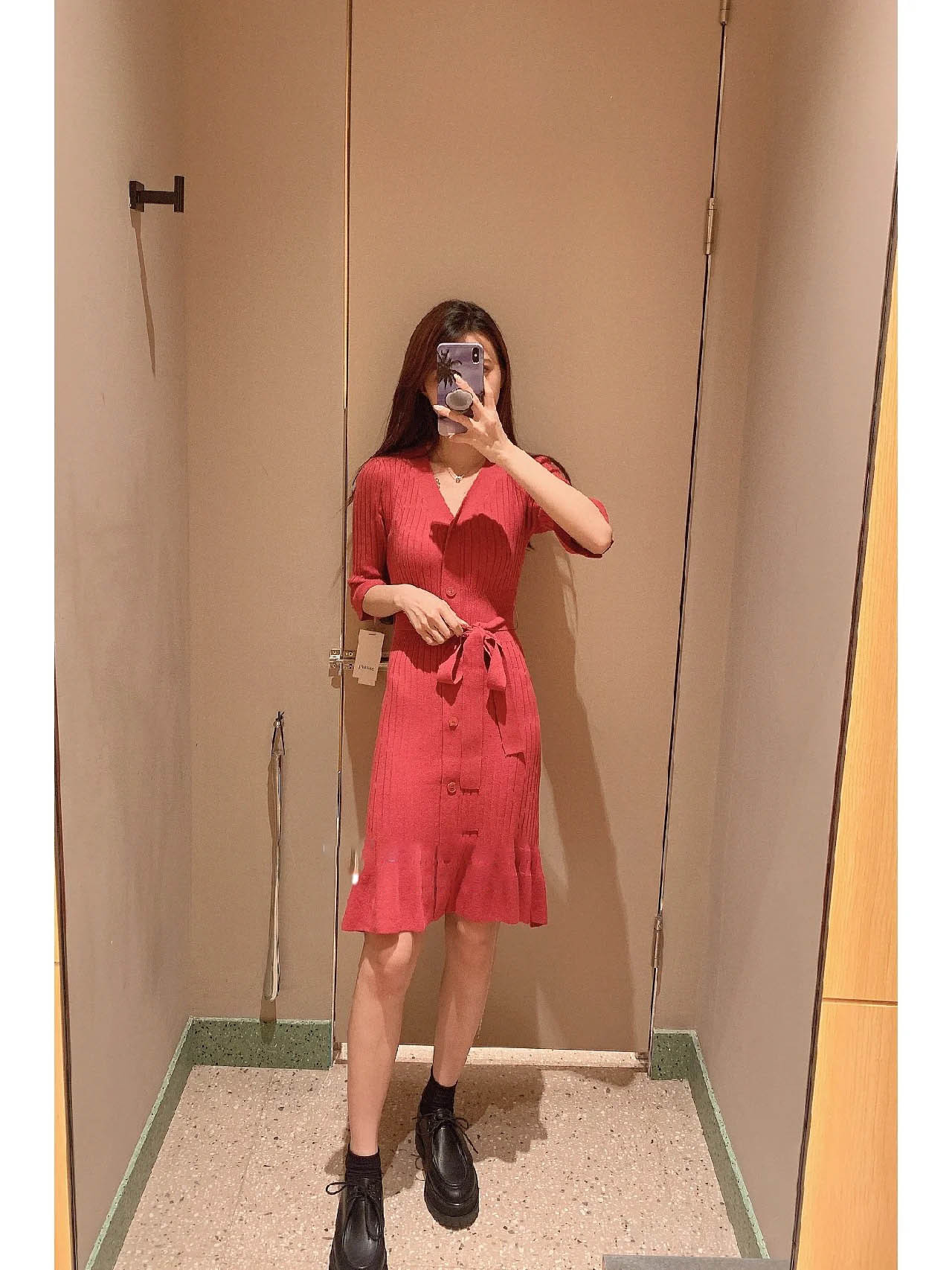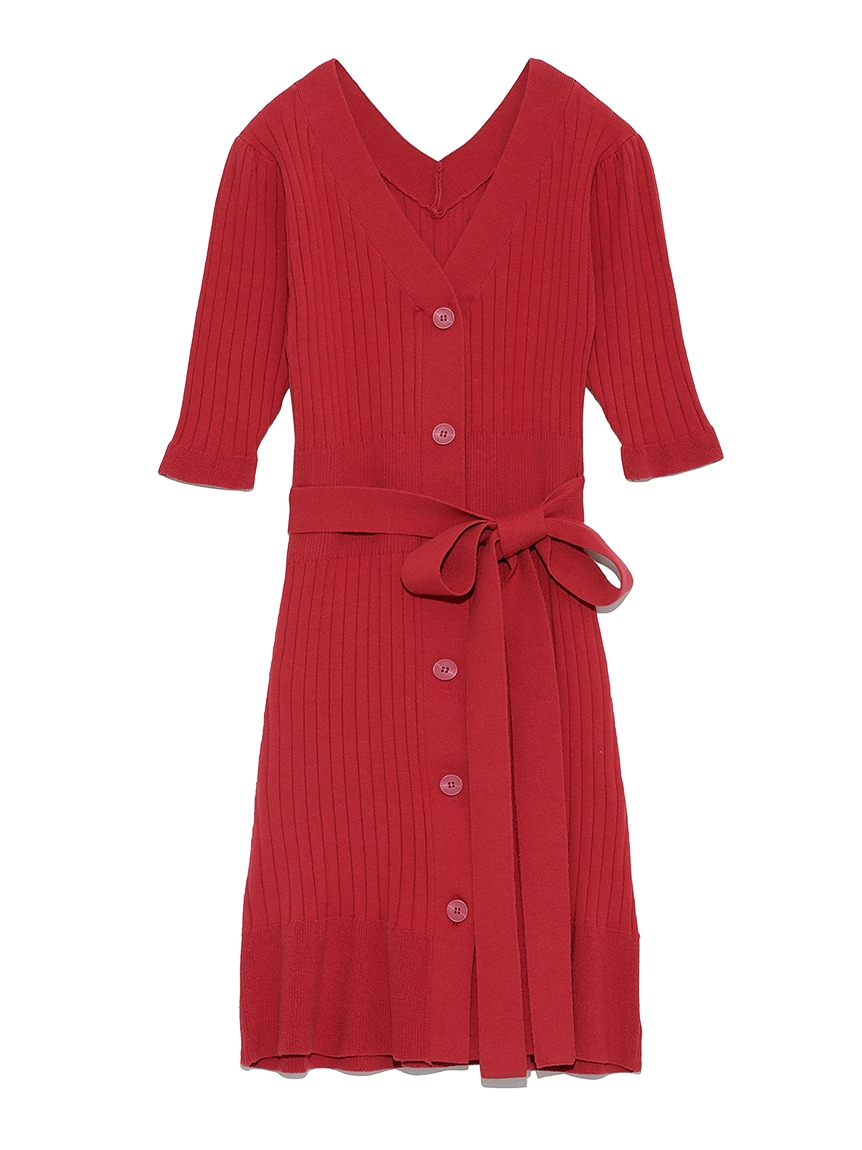 「SNIDEL」で定番の人気を誇るフロントボタンニットワンピースを膝丈ミニにリデザイン。トレンドライクなルックスでスタイリングの鮮度を高める1着が届きました。上品さをキープしながら、女性らしい身体のラインを演出してくれるフィット&フレアの美シルエット。編地を切り替えたウエストには付属のベルトをプラスしアクセントをプラスしています。