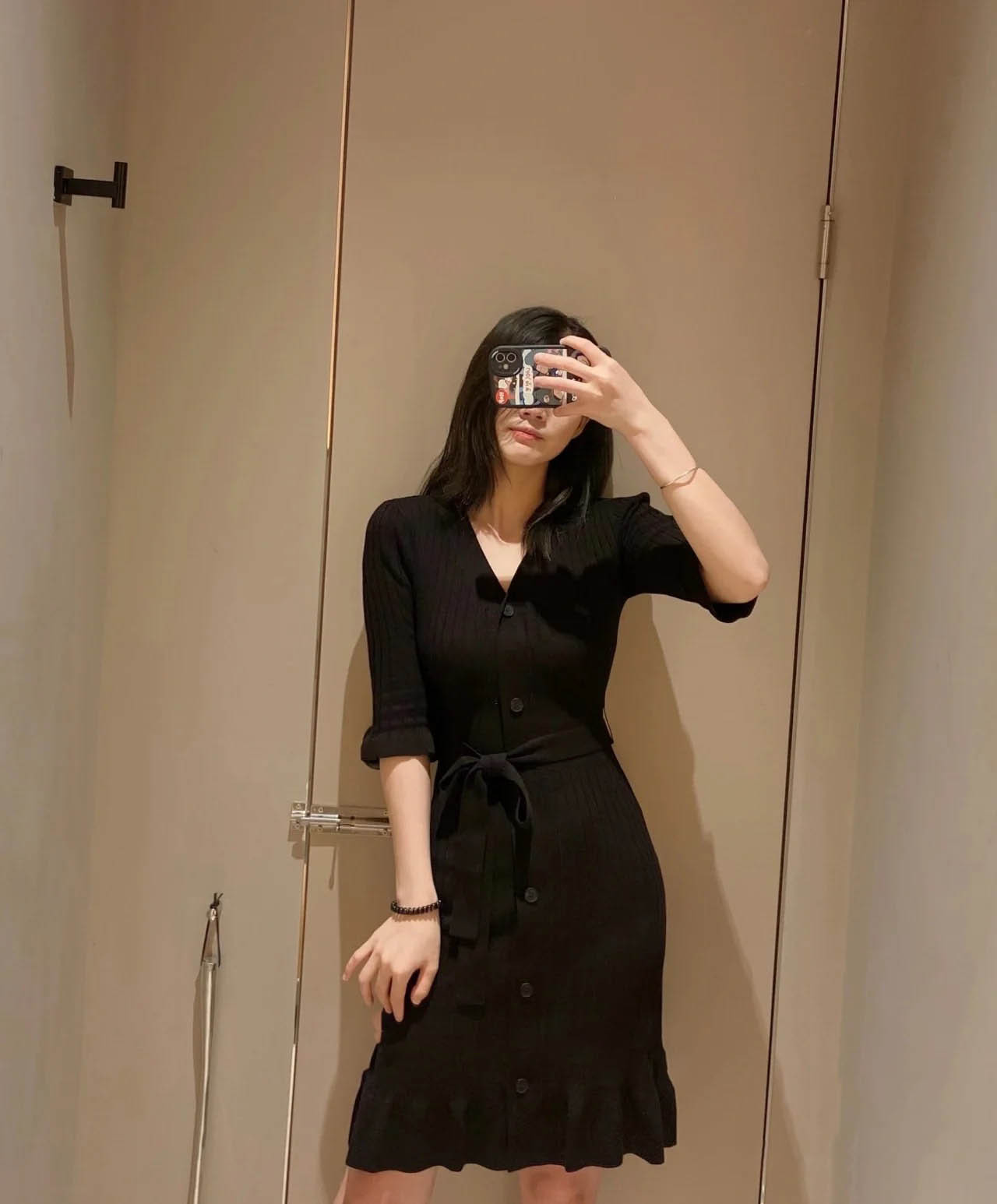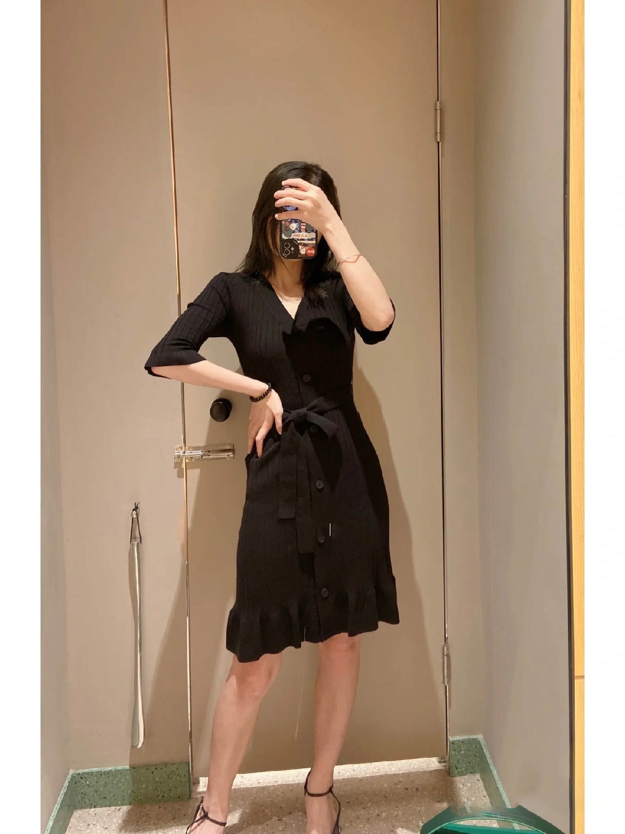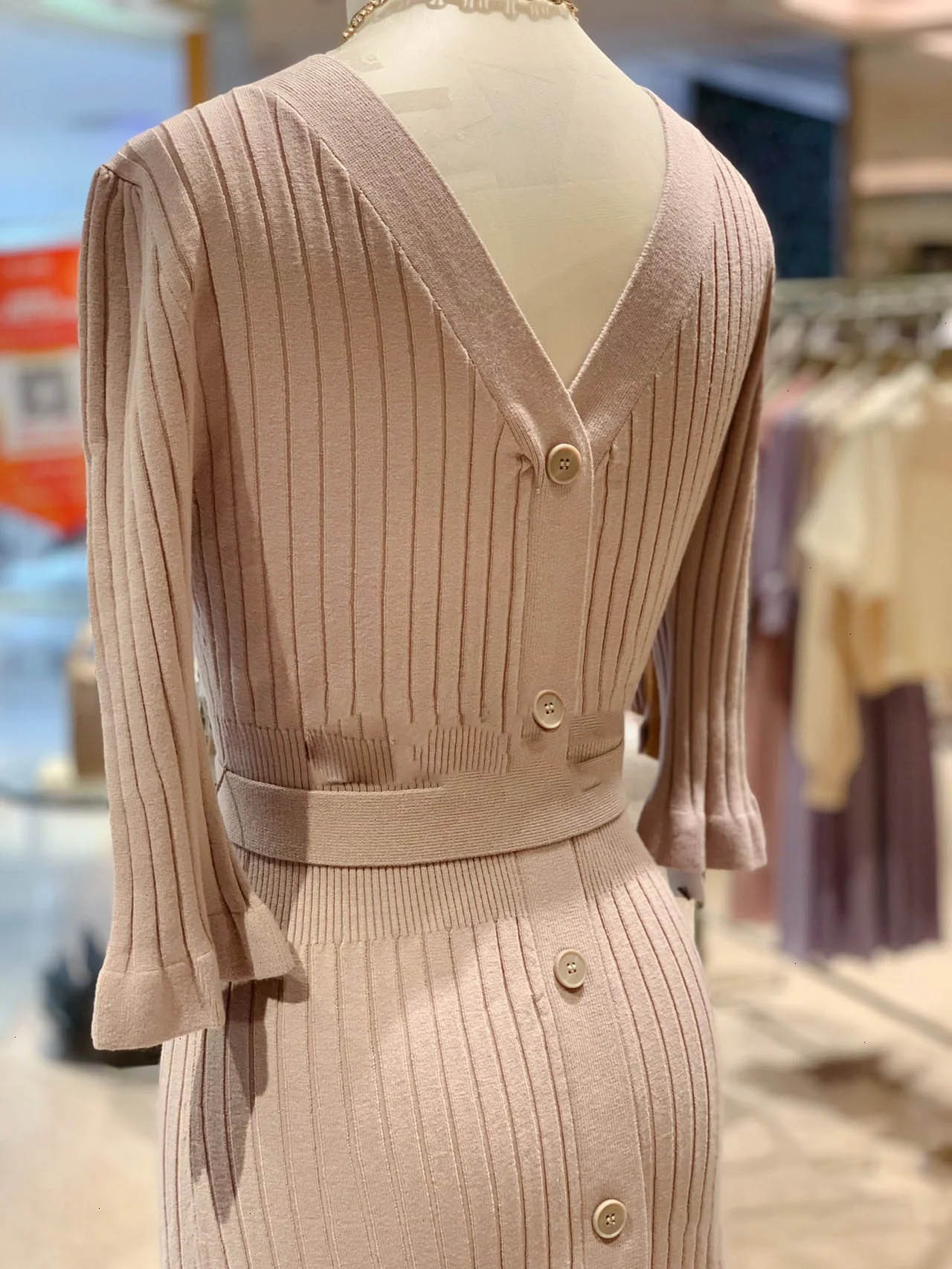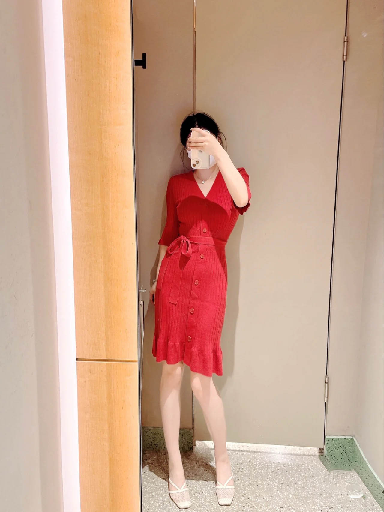 「SNIDEL」で定番の人気を誇るフロントボタンニットワンピースを膝丈ミニにリデザイン。トレンドライクなルックスでスタイリングの鮮度を高める1着が届きました。上品さをキープしながら、女性らしい身体のラインを演出してくれるフィット&フレアの美シルエット。編地を切り替えたウエストには付属のベルトをプラスしアクセントをプラスしています。