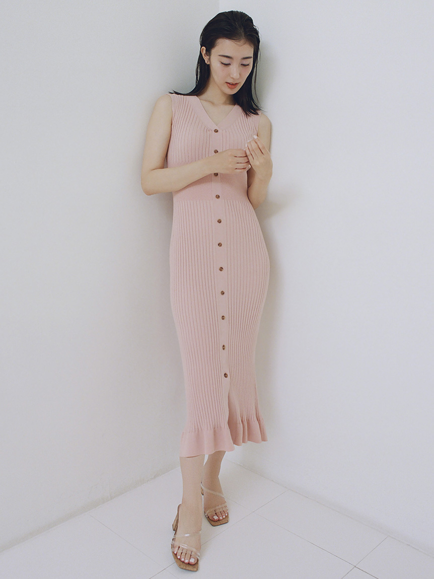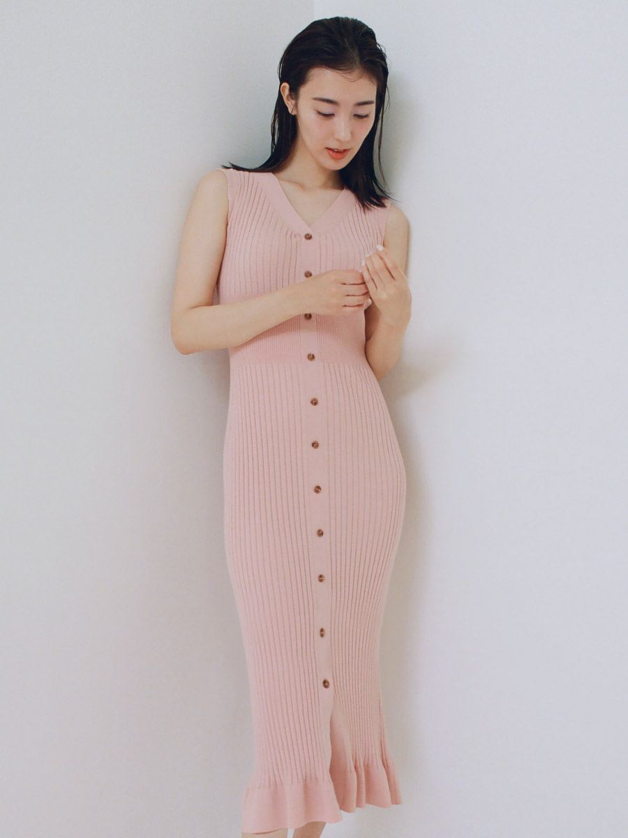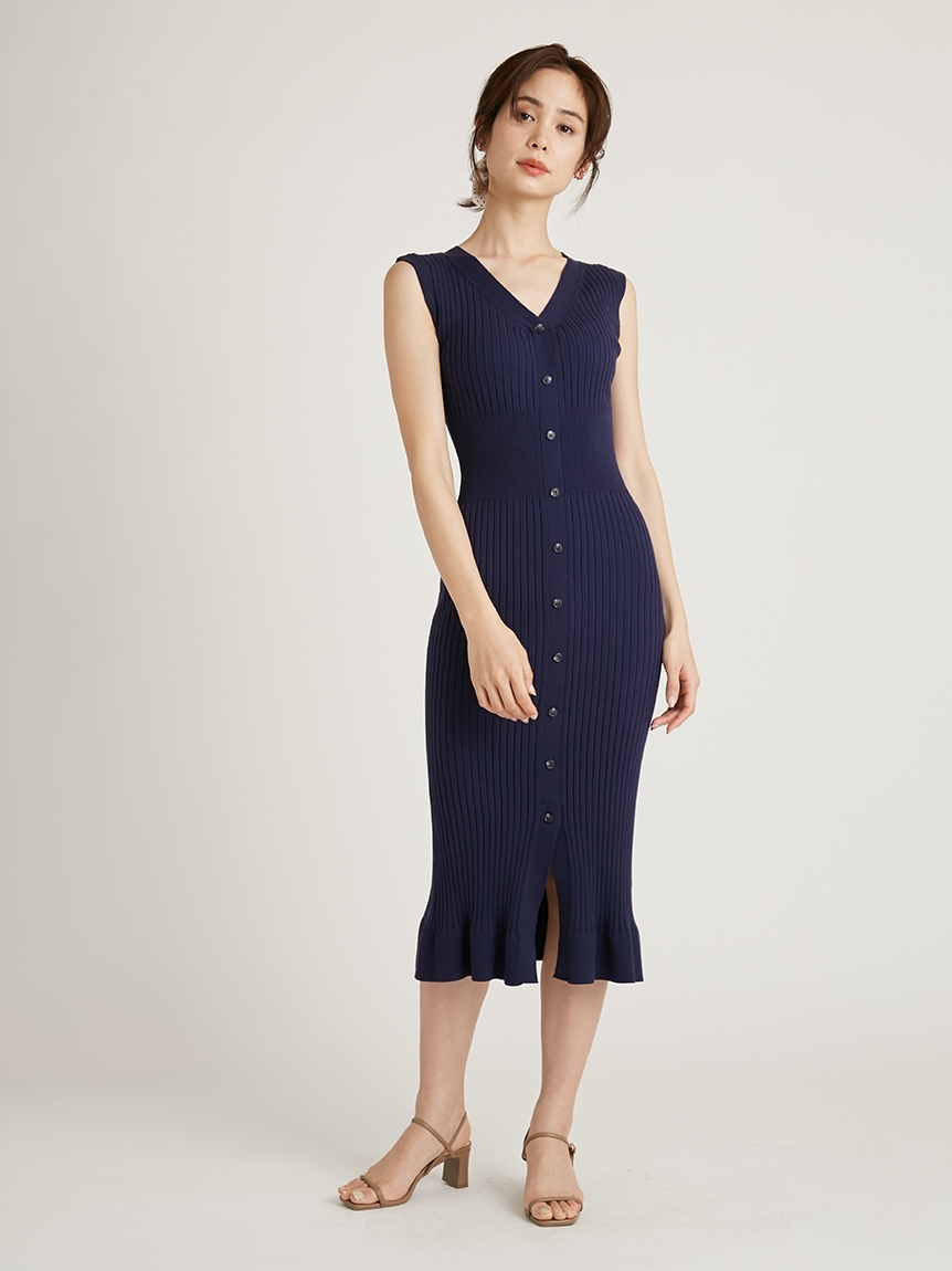 フロントボタンニットワンピース