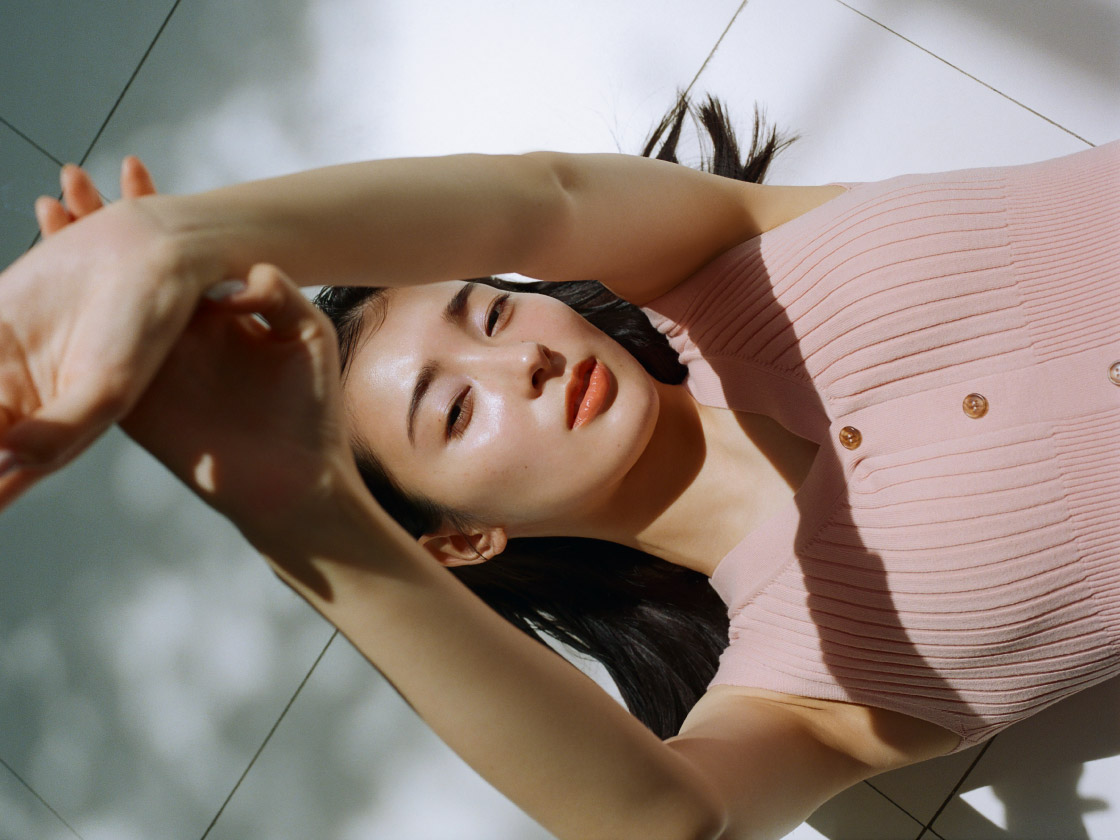 オーガニックコットンならではの柔らかさが魅力のニット素材を使用。ニュアンスのあるグレー、鮮やかな色合いのレッド、女性らしい雰囲気のピンク、上品なネイビーの4色の豊富なカラー展開でお届けします。