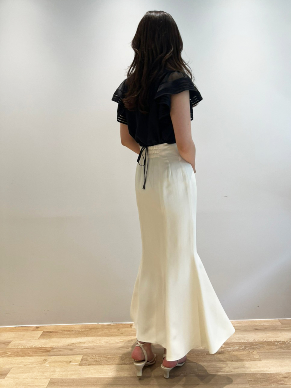 ふんわりと肌離れするシルエットはウエスト後ろの、華奢なリボン結びでフォルム調節可能。