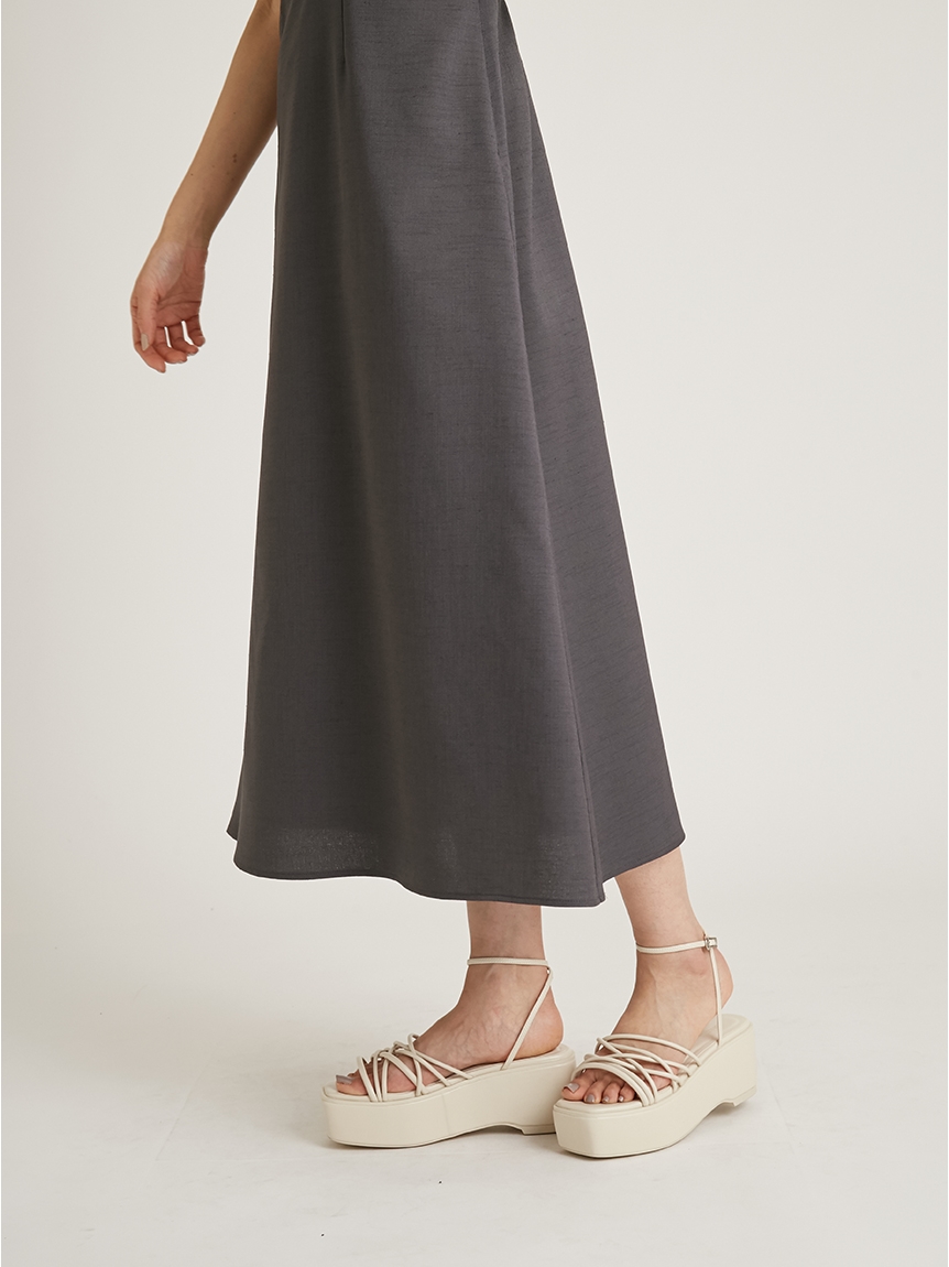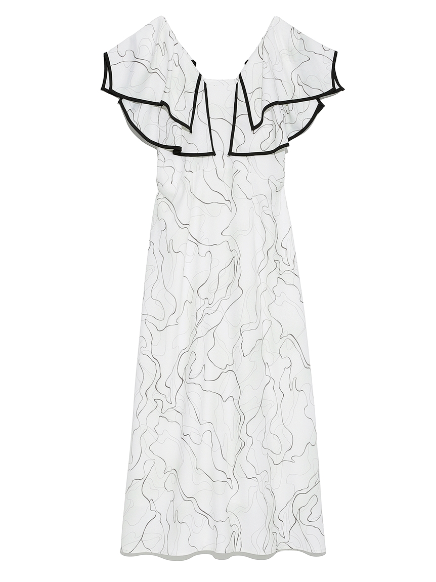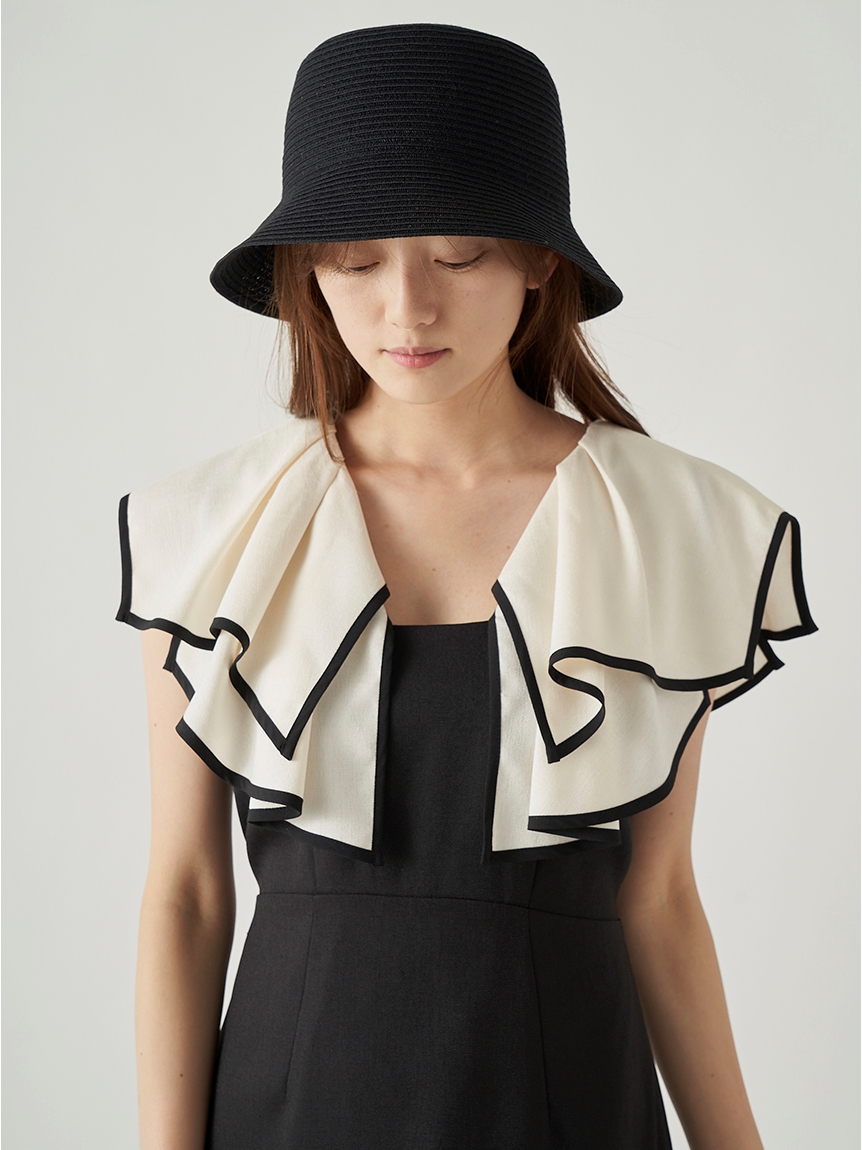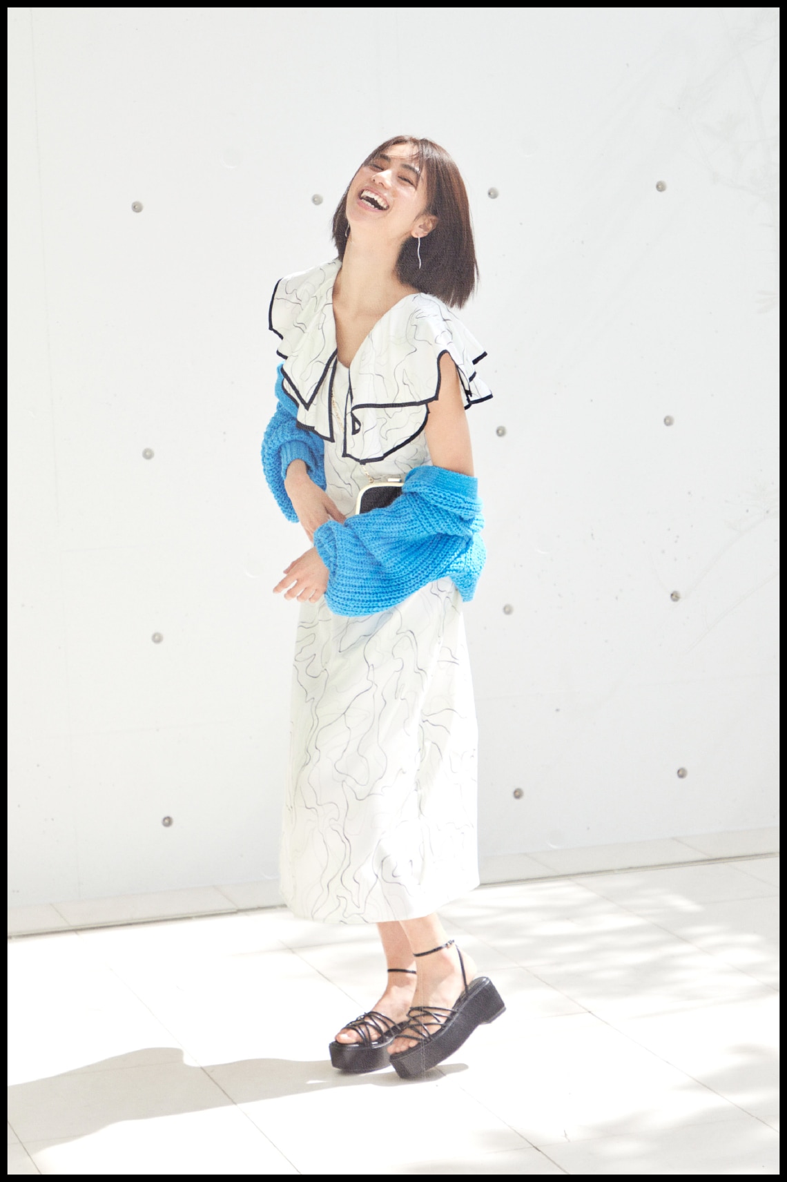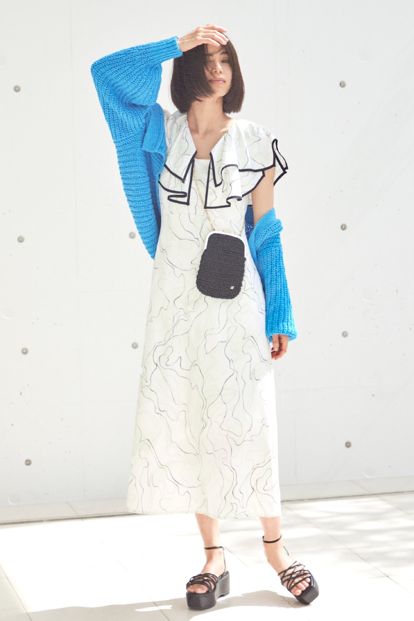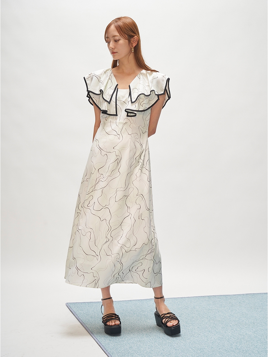 トレンドのパイピングでアクセントを付けたモードなフリルカラーが印象的。前回人気を集めたノースリーブワンピースが、新色を加えた豊富なバリエーション展開で届きました。ハイウエストの切り替えから緩やかに広がるAラインシルエットで、スタイルアップ効果は抜群。ギャザーを効かせたバックウエストには華奢なリボンをあしらい後ろ姿まで抜かりなく仕上げています。
