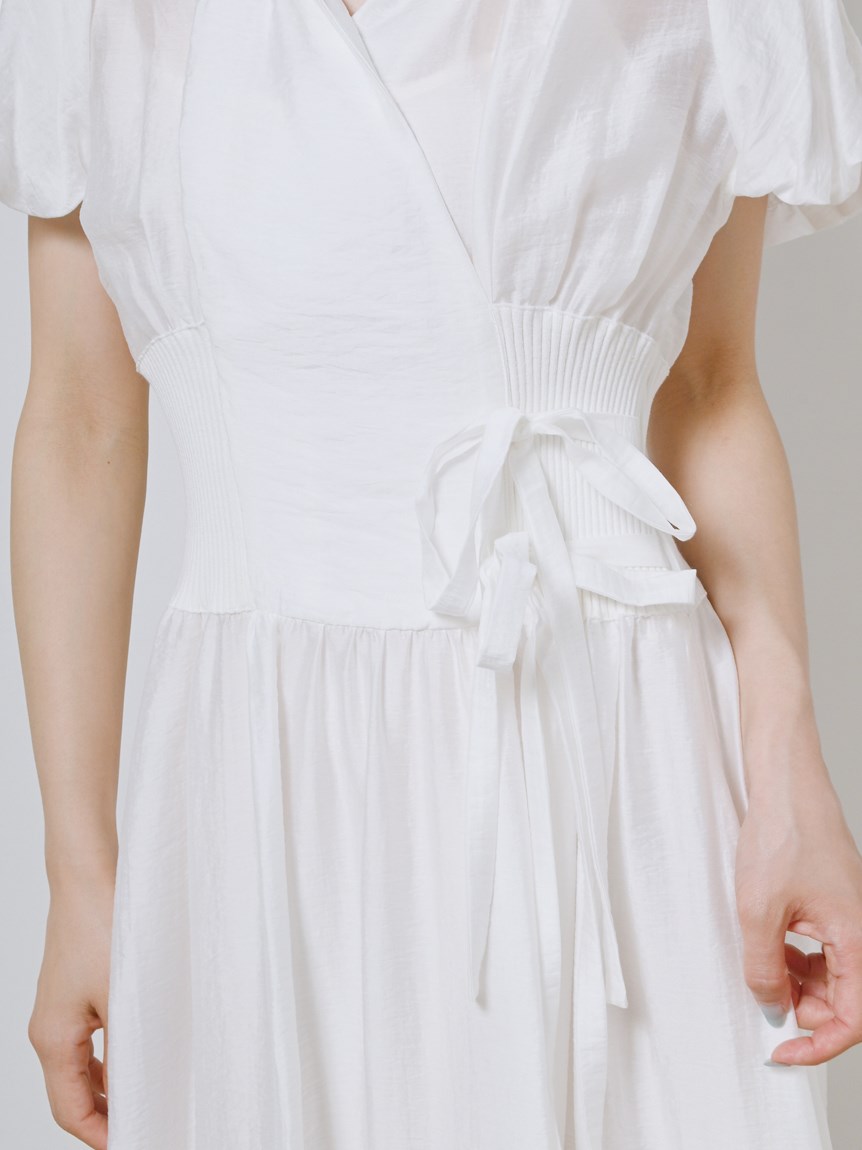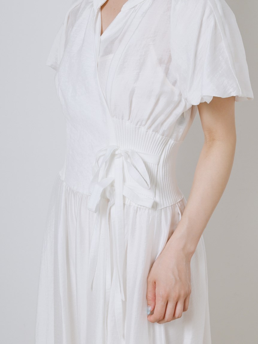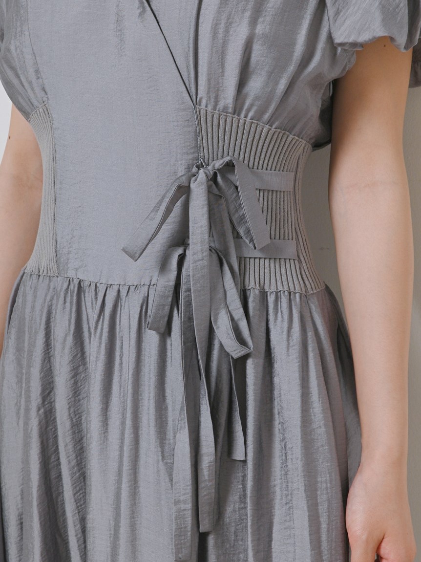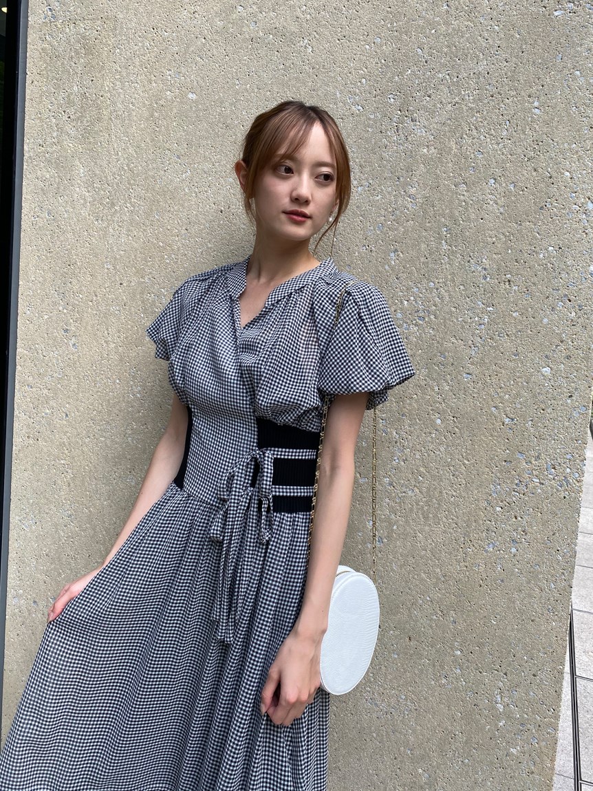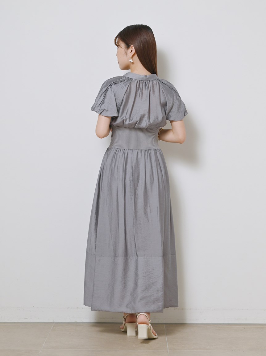 リブニットで切り替えたコルセット風のウエストデザインが特徴的な、上品な印象を与えるワンピース。上身頃はギャザーやバルーンで華やかに見せながらもサイズ感はコンパクトに。スカート部分はボリューミーなフレアラインに裾をややコクーンに仕立てることでトレンド感をプラスしています。メリハリのあるシルエットなのでスタイルアップ効果を存分に期待できます。