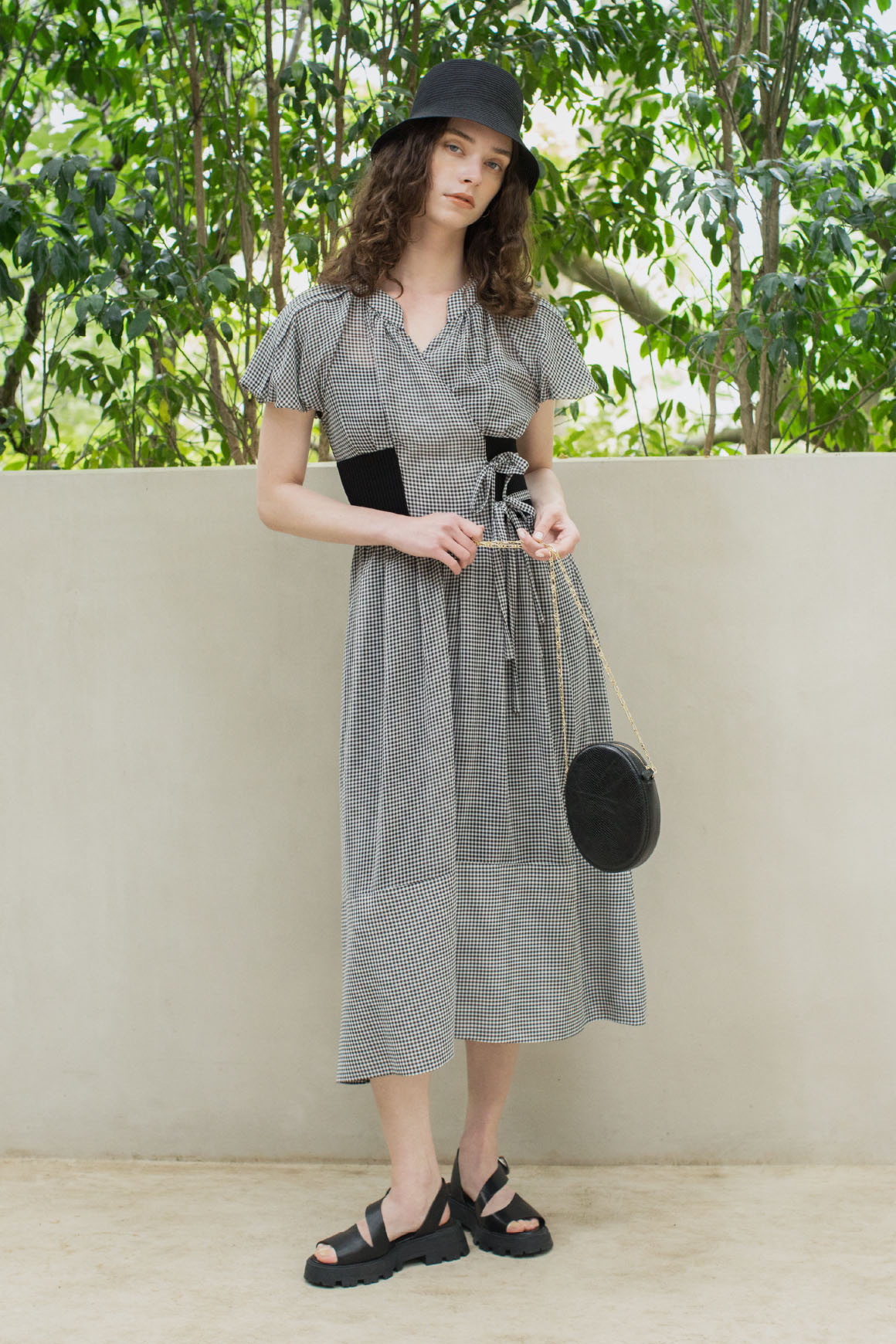シアーでシボ感のある合繊素材とリブニットを組み合わせました。着まわしやすいホワイト、グレーに、クラシカルなチェックを加えた3色をご用意。