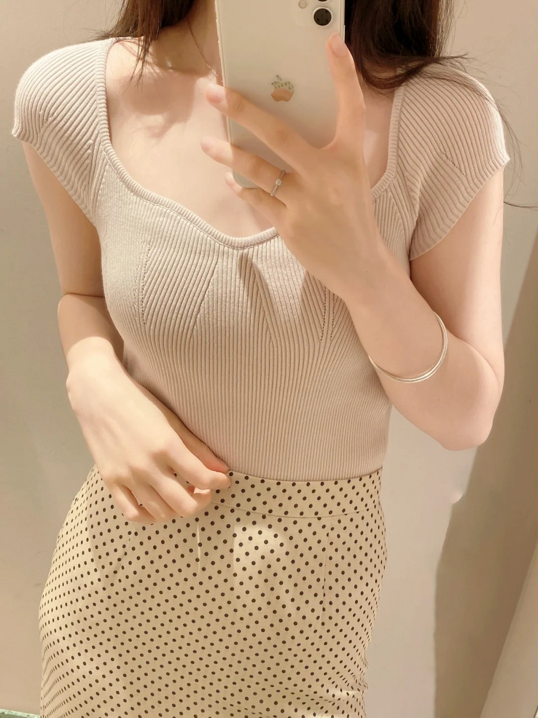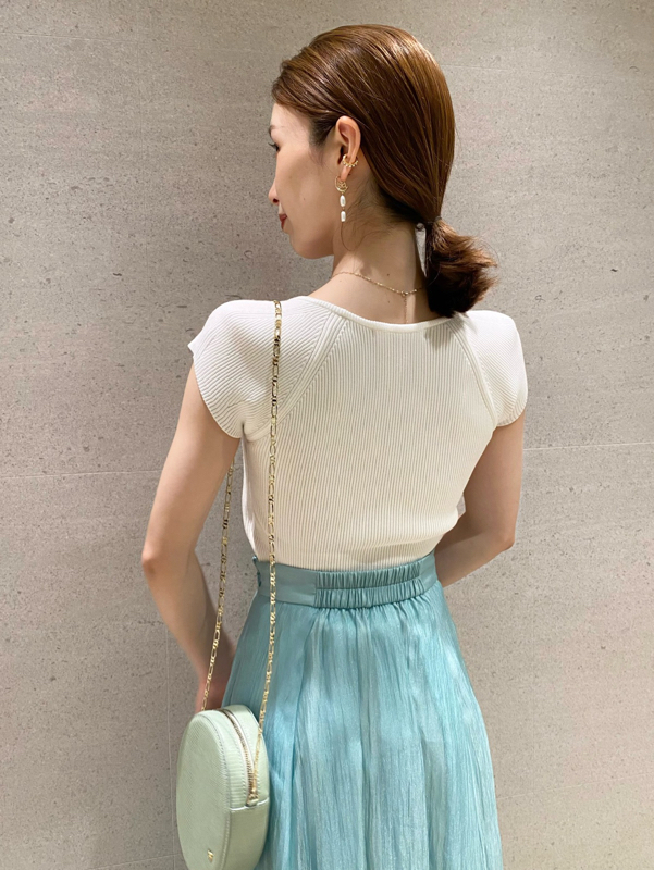 合わせる下着を気にせずさらりと着られる実用性の高さが人気のカップインニット。緩やかなカーブを描く広めのスクエアネックを採用し、女性らしく仕上げました。ショートスリーブ×タイトな身頃で全体をコンパクトなシルエットに。パンツともスカートとも合わせやすく、幅広いコーディネートに活躍してくれます。