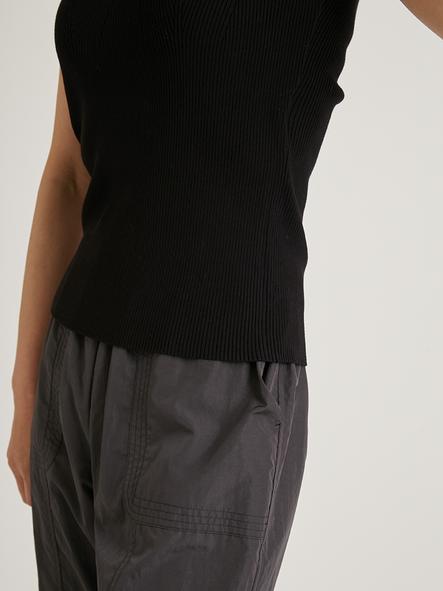 ストレッチ入りの柔らかなリブニットを使用しました。着まわし力の高いホワイト、ブラック、ベージュの3色展開でお届けします。