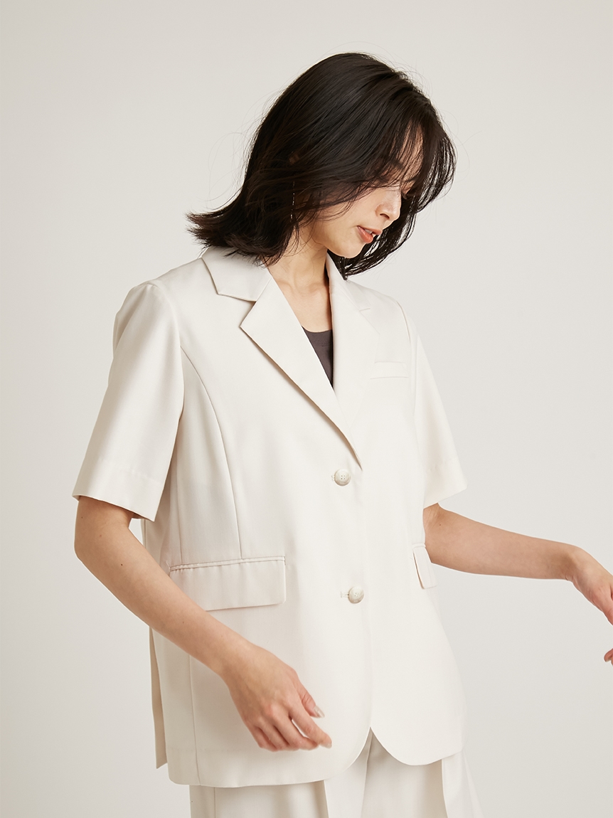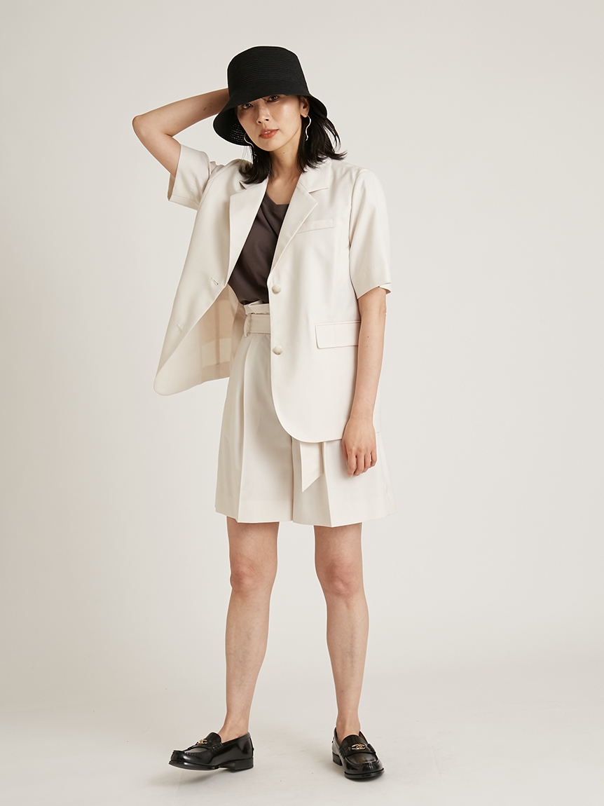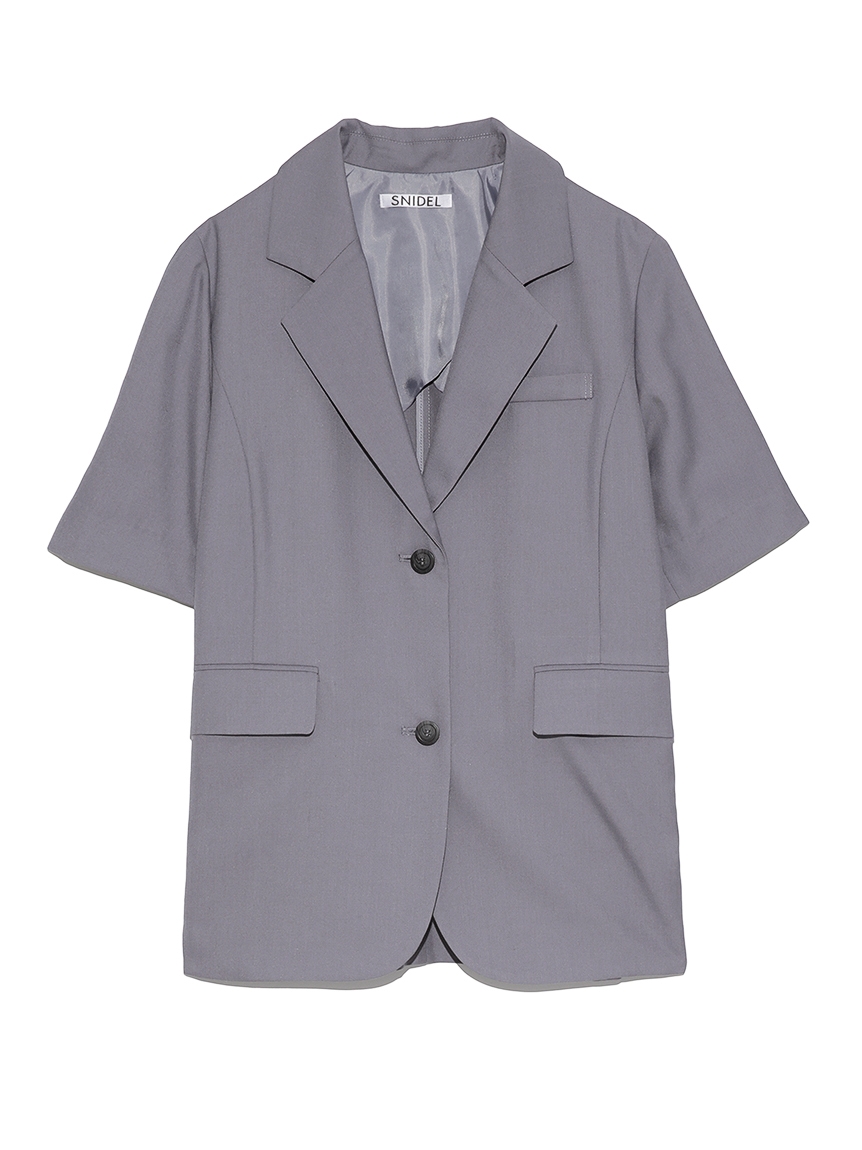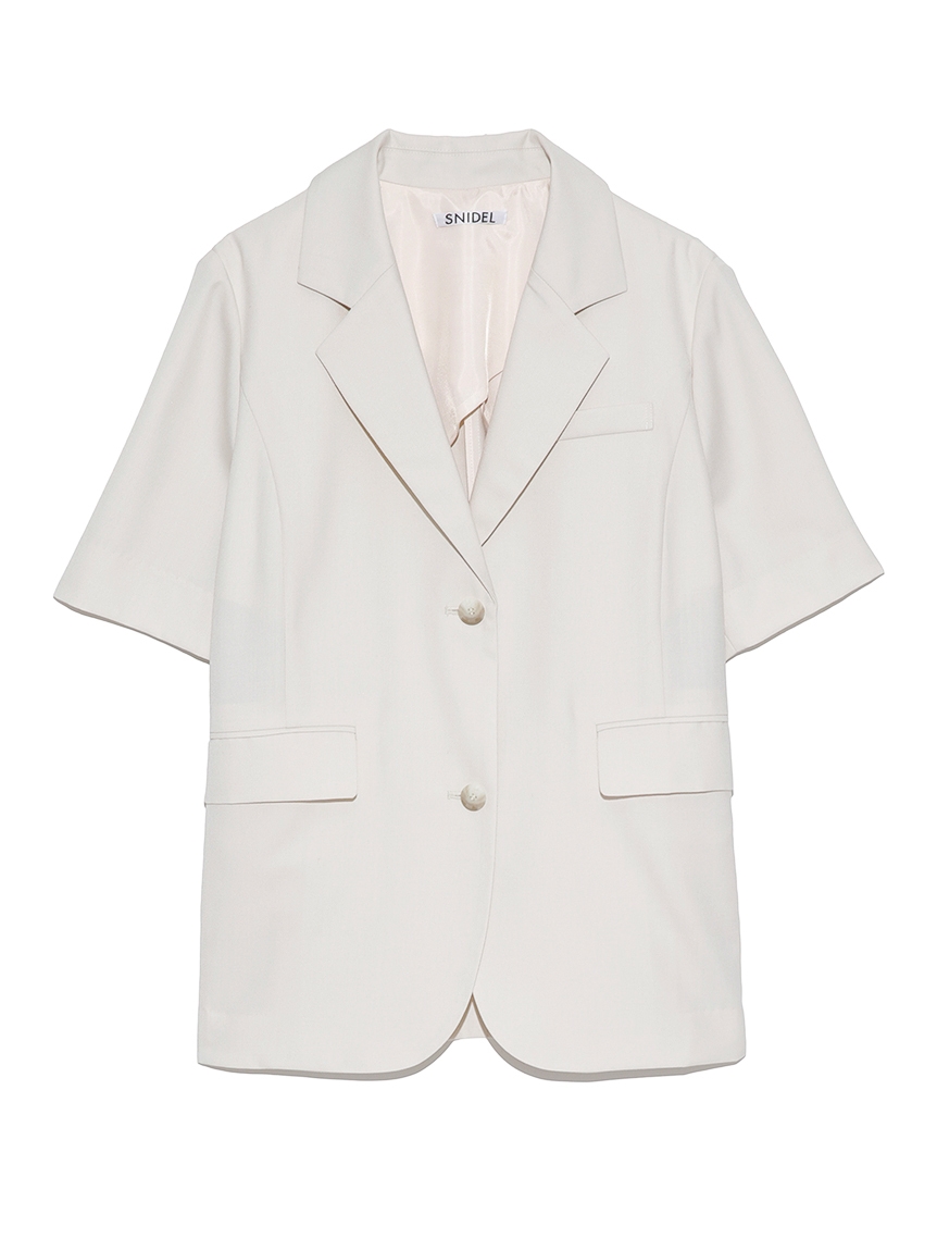 トレンド感満点のハーフスリーブジャケットをオーバーサイズ感がありながらも丸みのあるシルエットで女性らしい仕上がりに。カジュアルになりすぎず、コーディネートしやすい「SNIDEL」ならではの1着が届きました。裏地をあしらっていないのでさらりと着られ、春夏の羽織にぴったりのアイテム。様々なボトムとバランスが取りやすく、同素材のパンツ(SWFP222117)とセットアップで合わせるのもおすすめです。