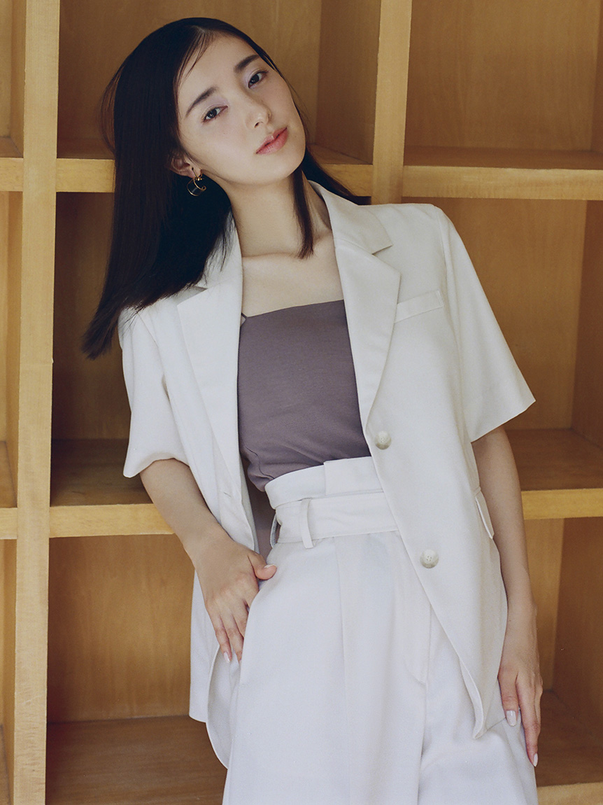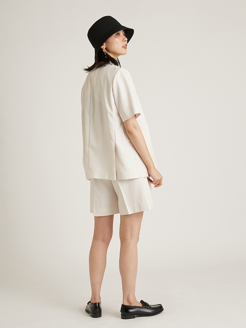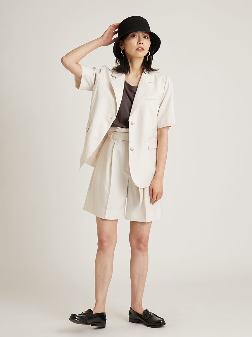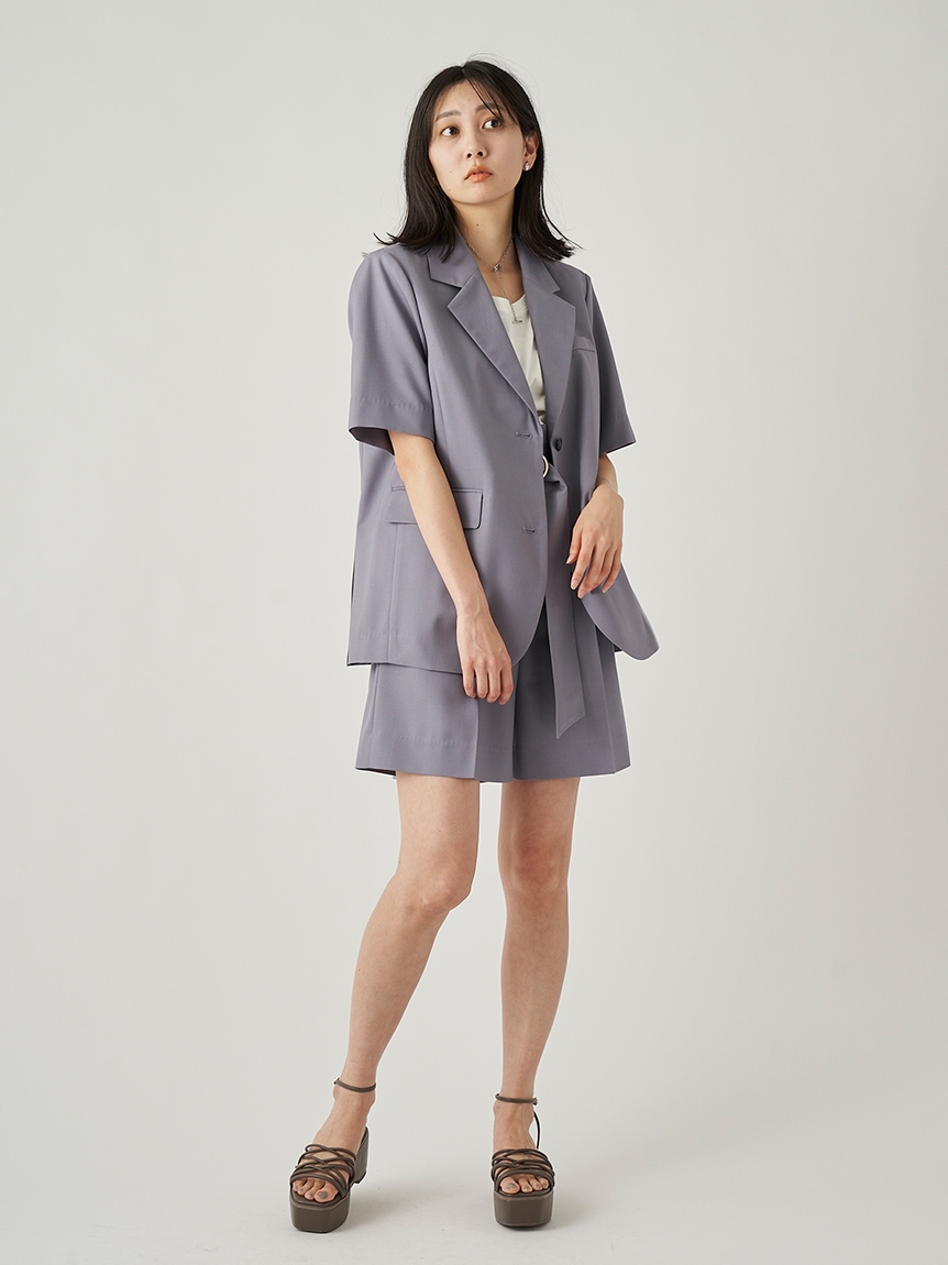 トレンド感満点のハーフスリーブジャケットをオーバーサイズ感がありながらも丸みのあるシルエットで女性らしい仕上がりに。カジュアルになりすぎず、コーディネートしやすい「SNIDEL」ならではの1着が届きました。裏地をあしらっていないのでさらりと着られ、春夏の羽織にぴったりのアイテム。様々なボトムとバランスが取りやすく、同素材のパンツ(SWFP222117)とセットアップで合わせるのもおすすめです。