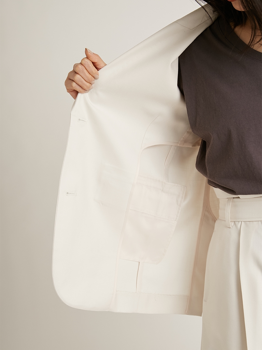 品の良い光沢があり軽やかなサステナブル素材を使用しました。合わせやすく定番のアイボリー、ブラックに加え、ニュアンスのある色合いのライラックをご用意。