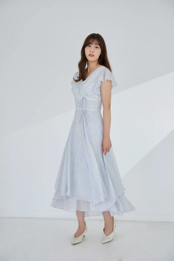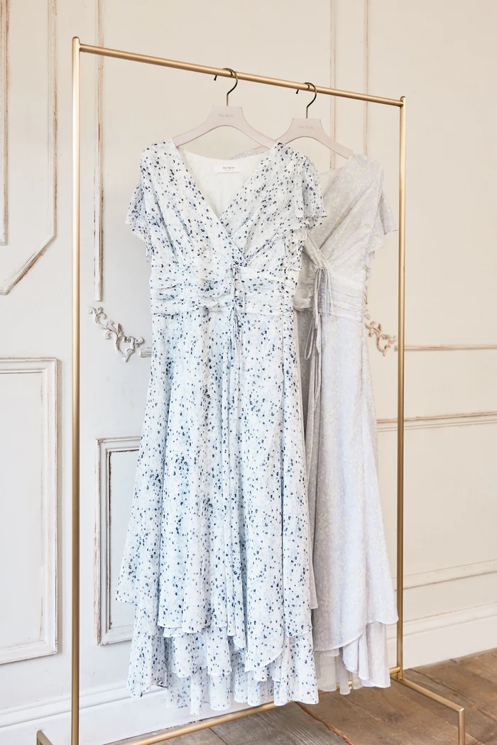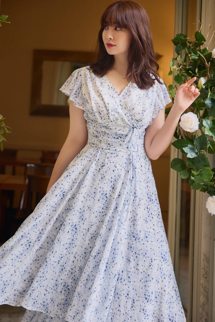 肩のギャザーも美しく、一枚で上品で華やかなドレスです。