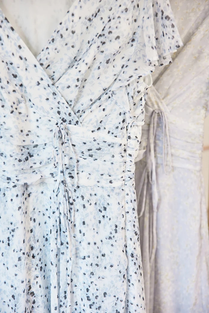 また、ウエスト部分の高い位置にリボンをつけているので、目線が上に上がり、ウエストラインを綺麗に魅せてくれます。