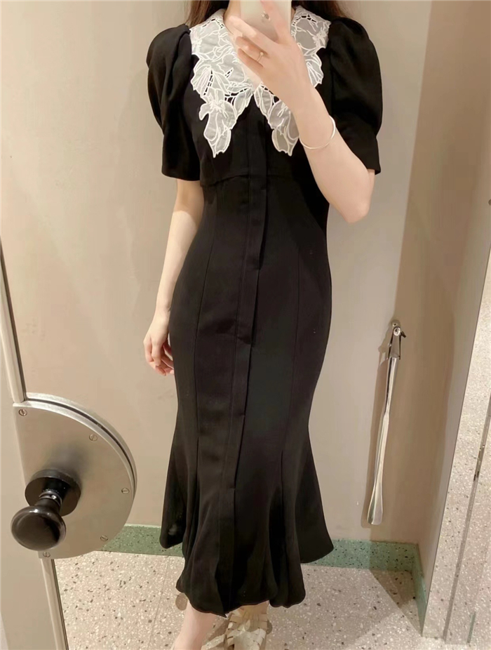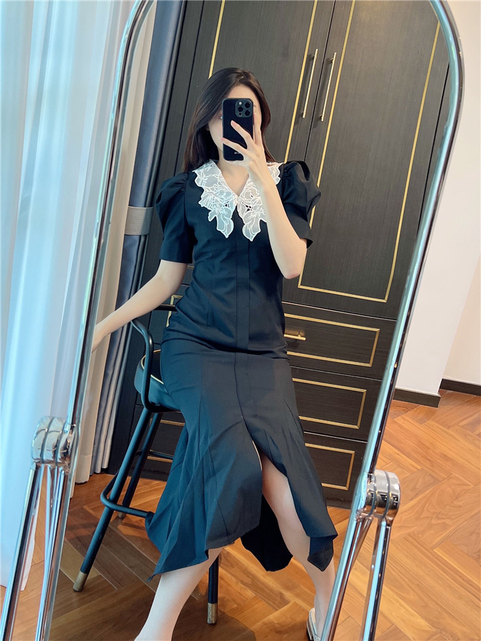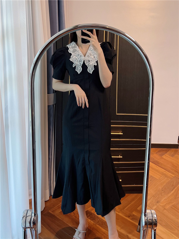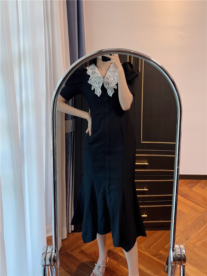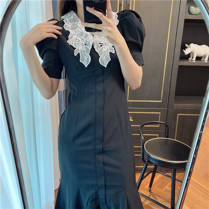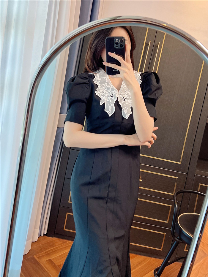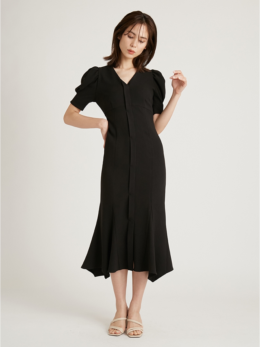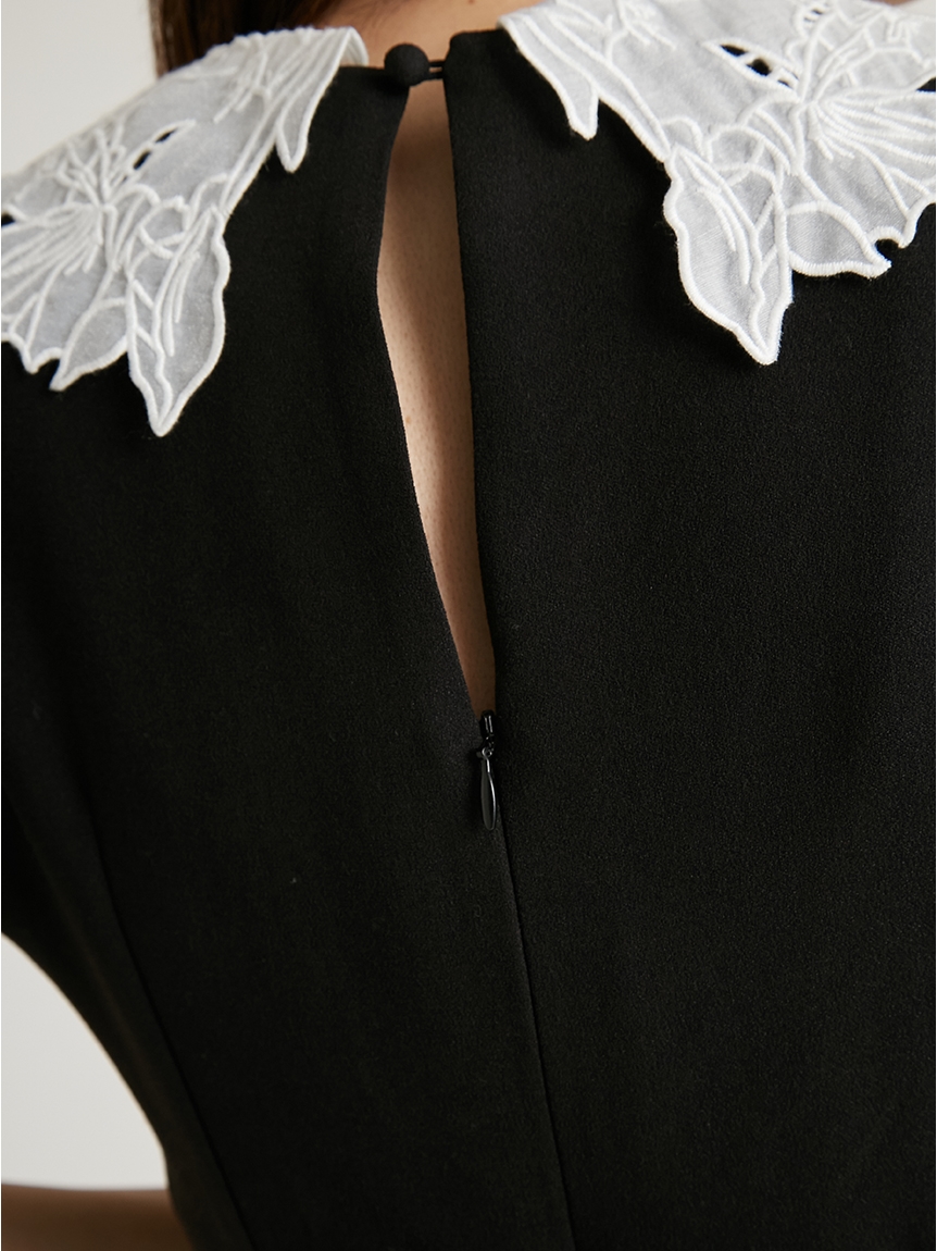 細やかな刺繍が施されたホワイトカラーが印象的な、クラシカルな雰囲気のワンピース。襟は取り外し可能な2WAYデザインなので、様々なオケージョンシーンからオフィスなどのデイリーにも、幅広いコーディネートに活躍してくれます。巧みな切り替えで仕立てられた美しいマーメイドシルエットで、女性らしさは一気に加速。イレギュラーなヘムラインがさり気なくモードなアクセントを添えています。