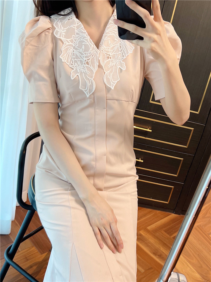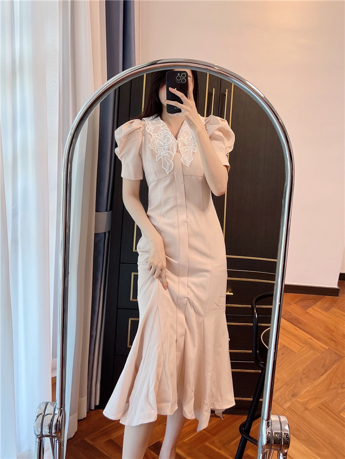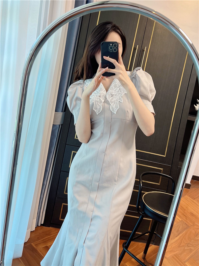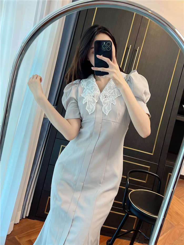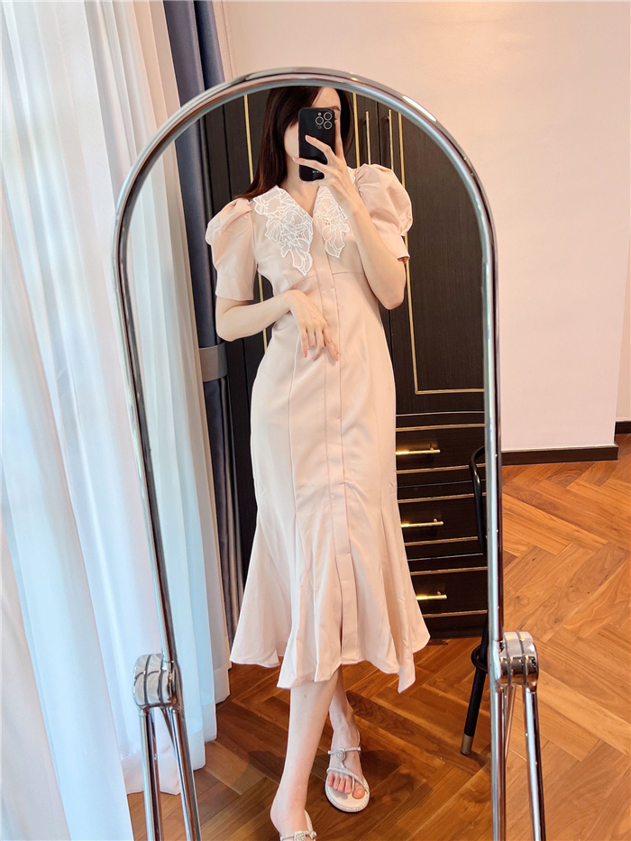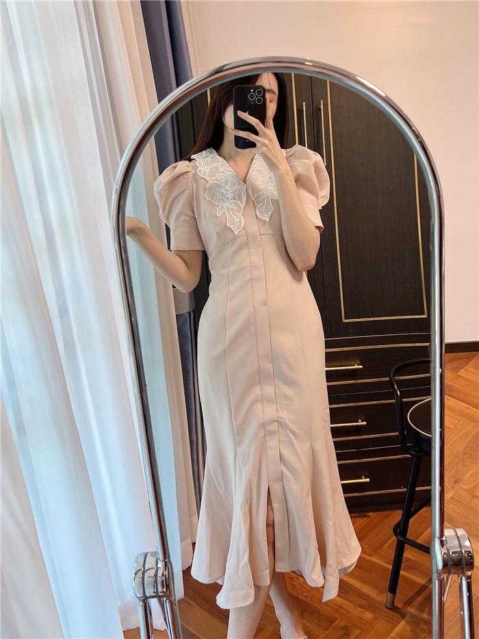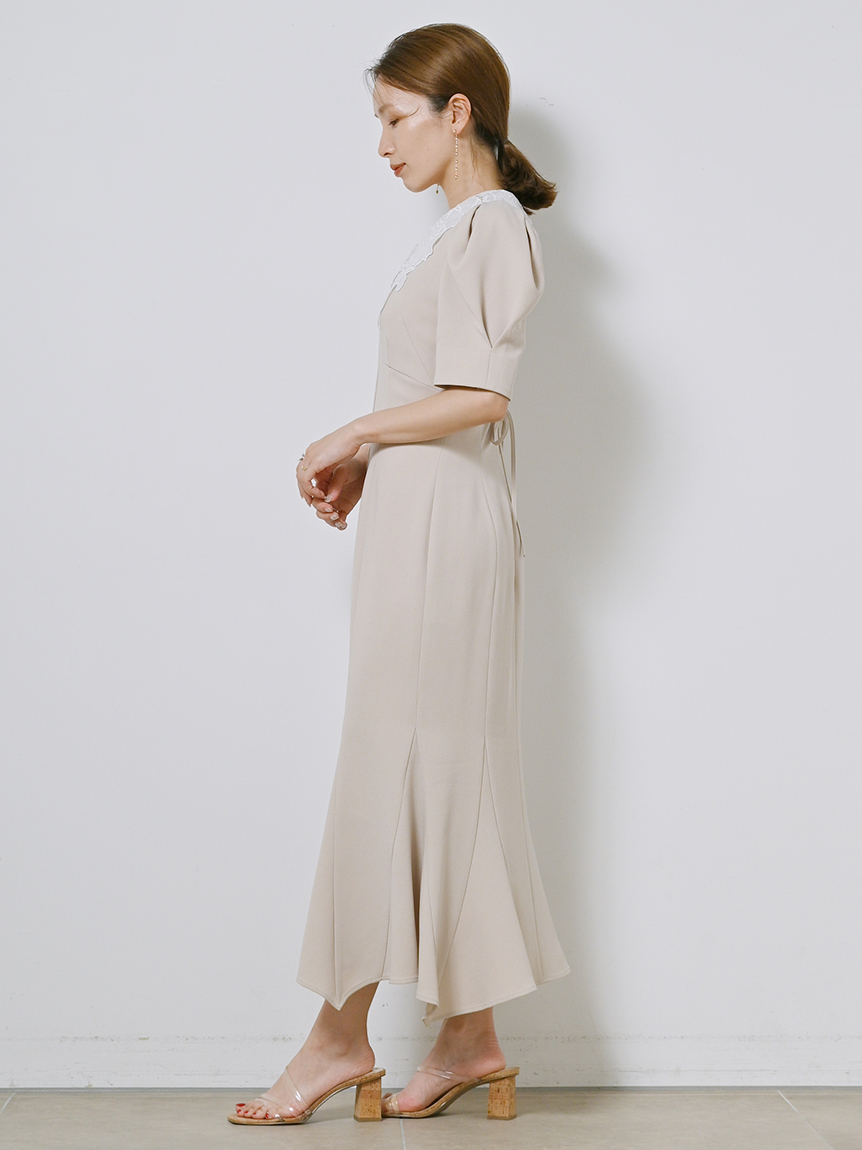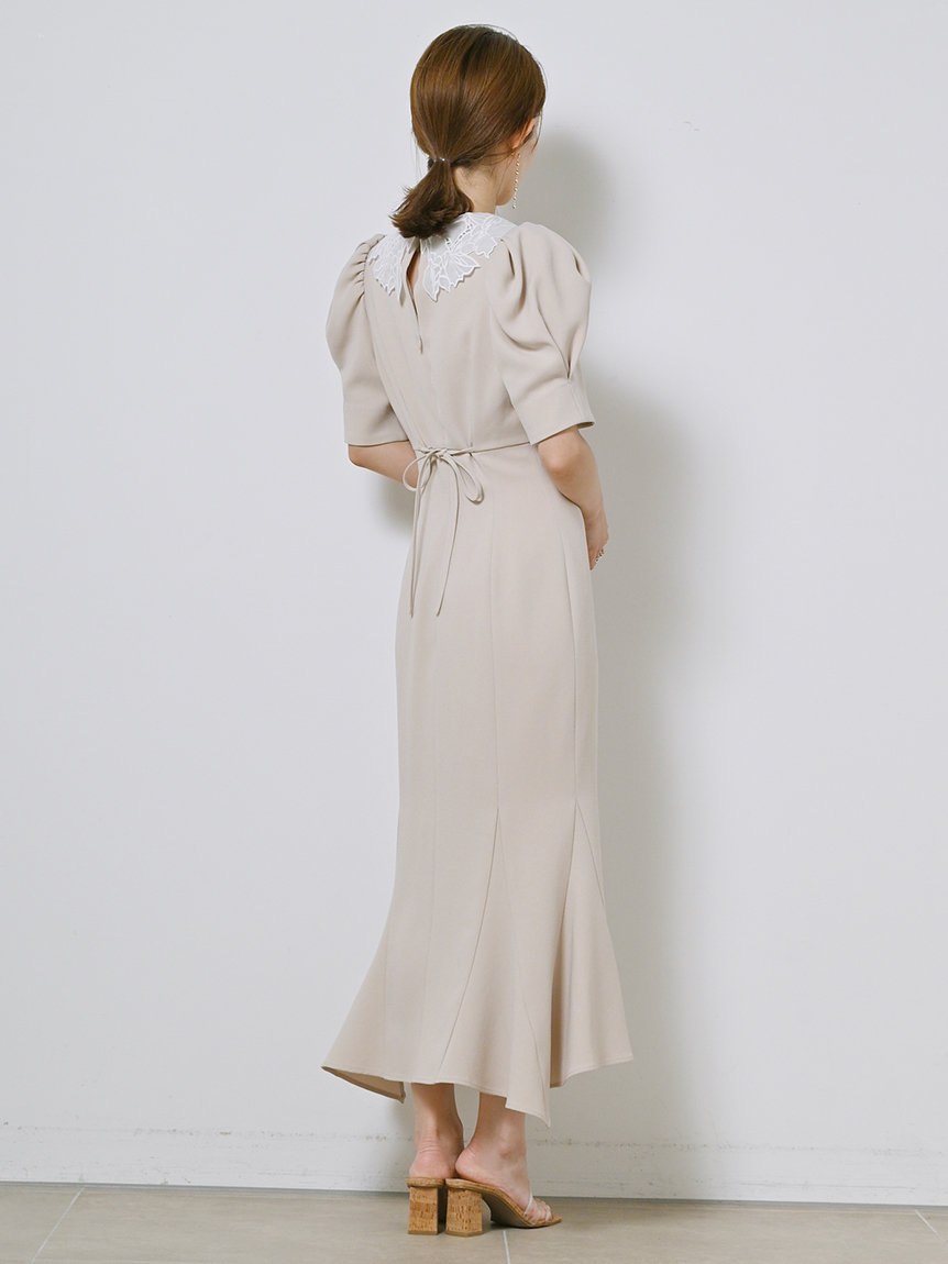 エンブロイダリーホワイトカラーマーメイドワンピース