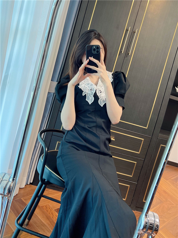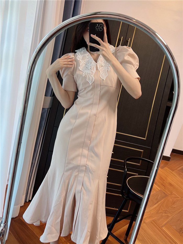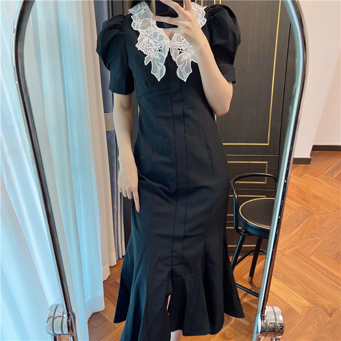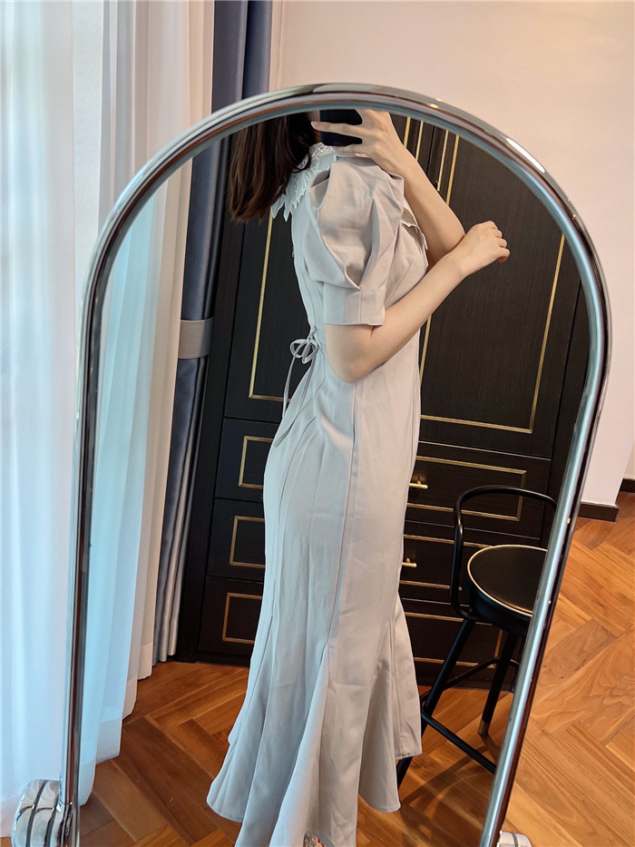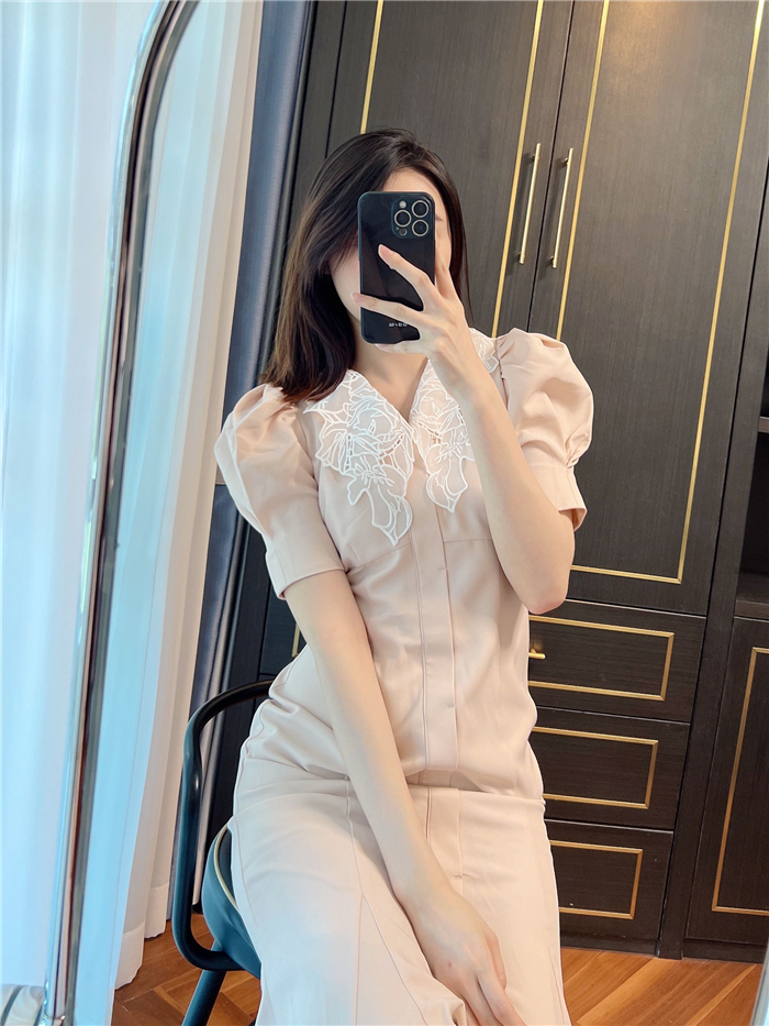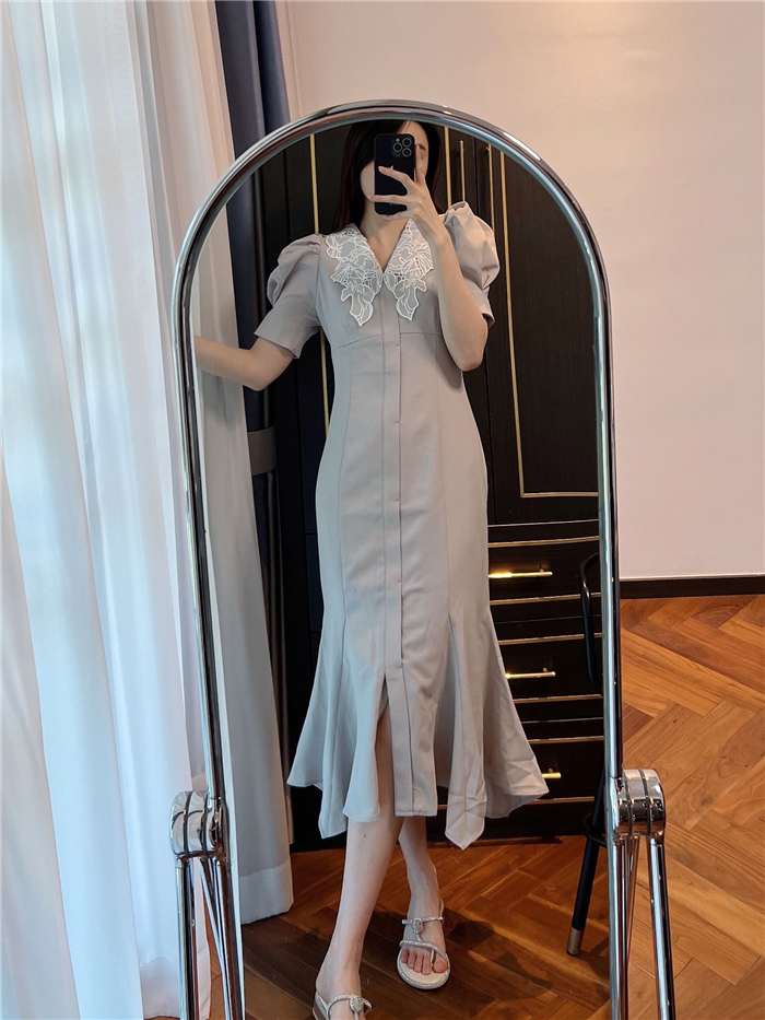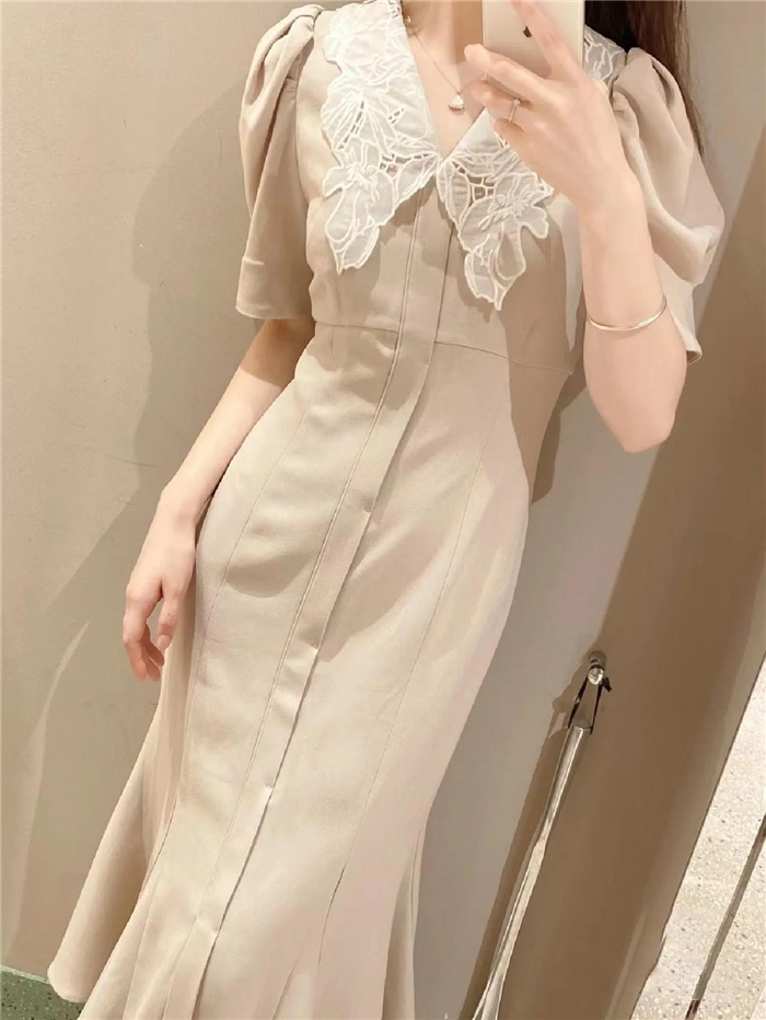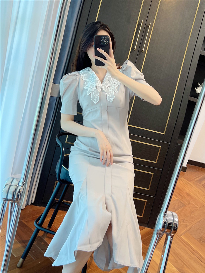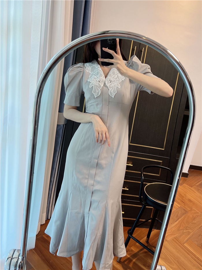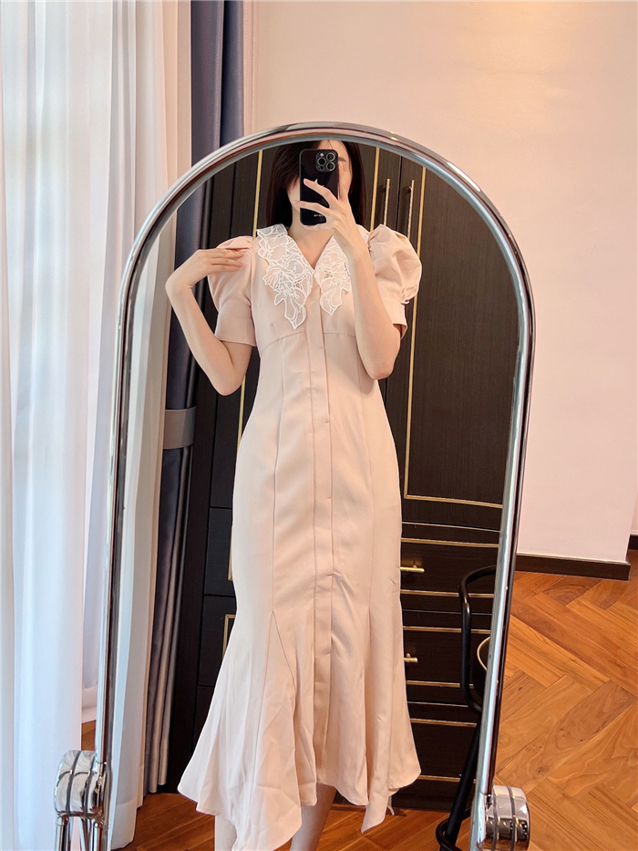 エンブロイダリーホワイトカラーマーメイドワンピース