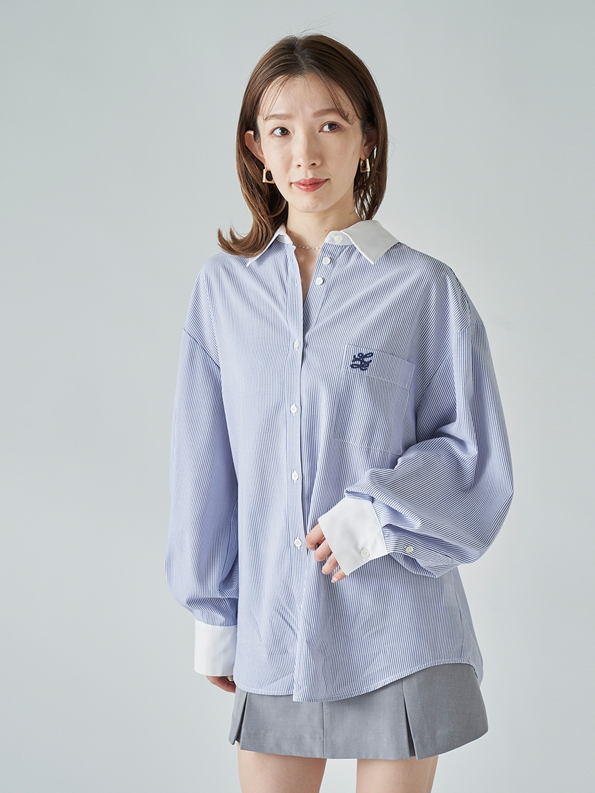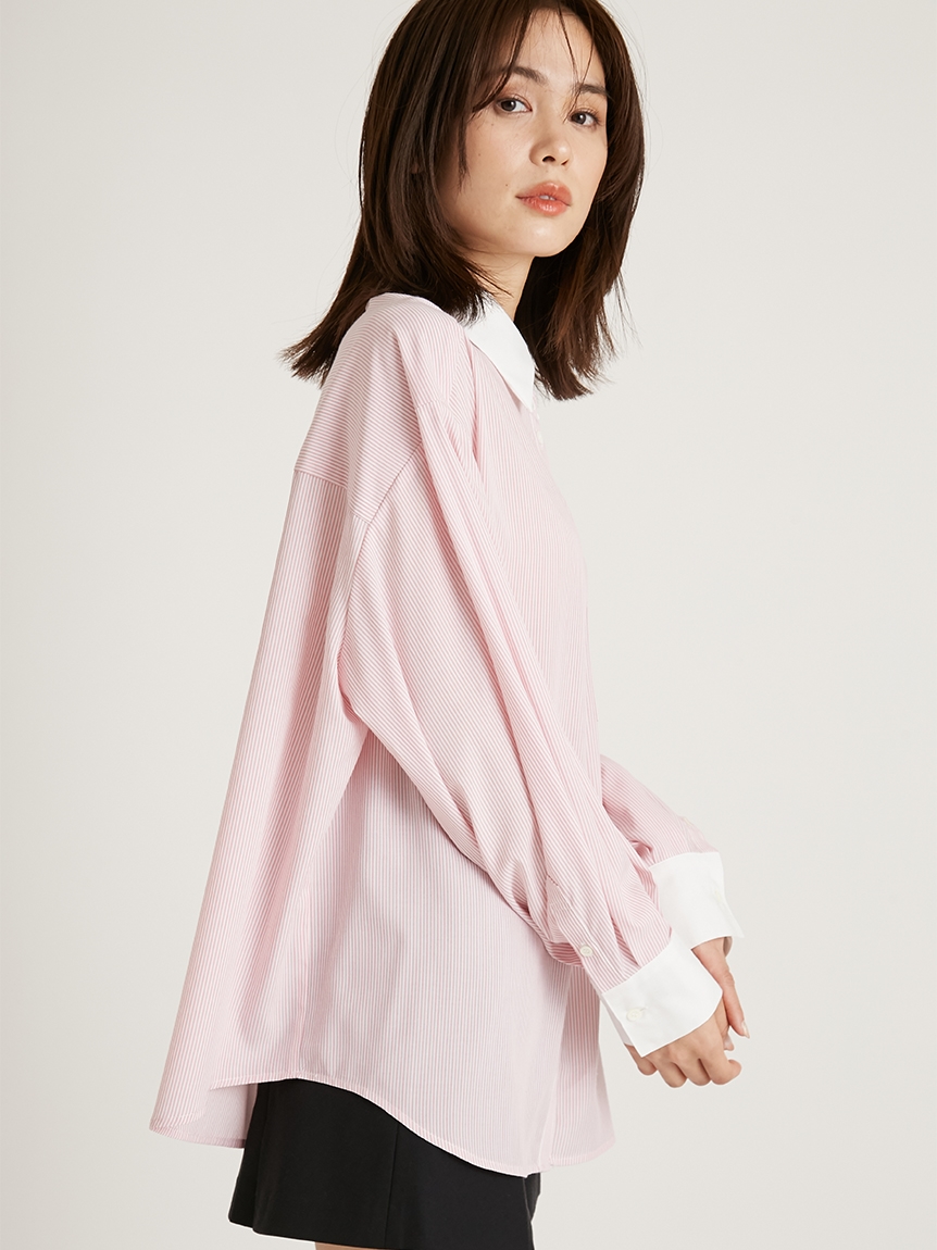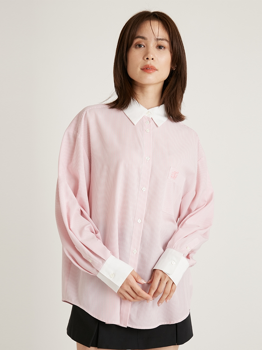 ドロップショルダーのオーバーサイズシルエットが特徴的な、スタイリングに抜け感を与えるロングスリーブシャツ。落ち感のある生地を使用することで、メンズライクなシルエットでも女性らしく仕上げています。シャツはカジュアルで着づらいと感じていた方にも着ていただけるようにと素材選びにこだわった、大人の女性におすすめの1着です。裾はインでもアウトでもバランス良く決まるようにと計算されたデザイン。パンツともスカートとも合わせやすく、幅広いコーディネートに活躍してくれます。