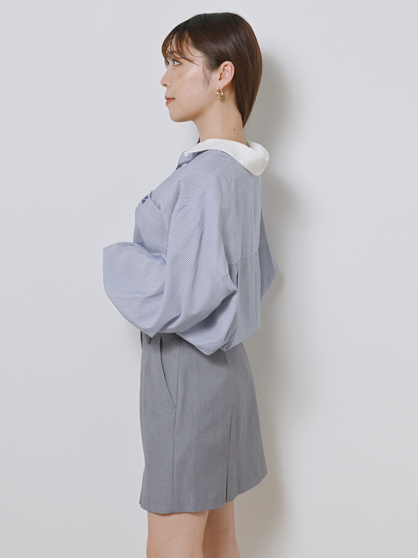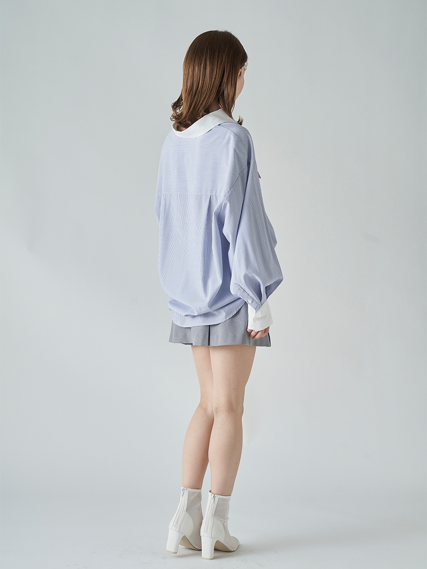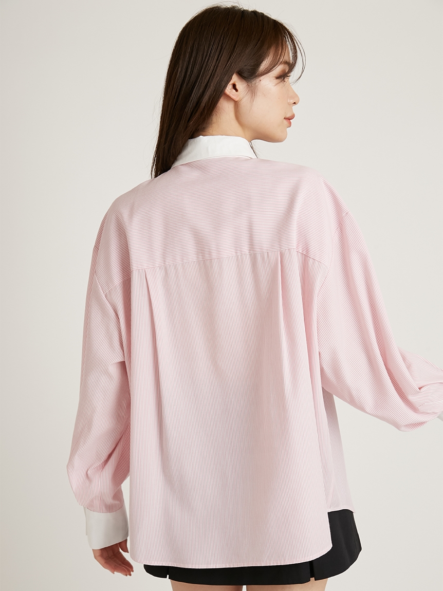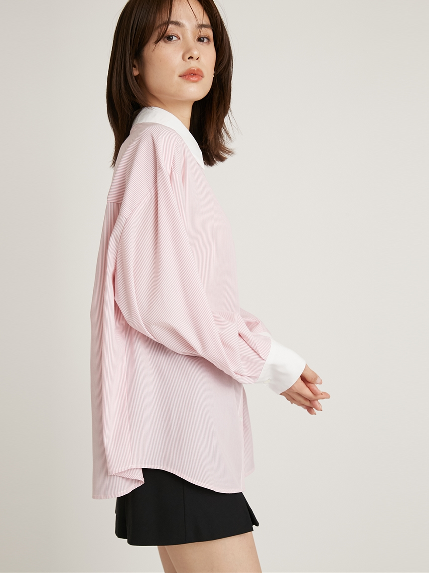 ドロップショルダーのオーバーサイズシルエットが特徴的な、スタイリングに抜け感を与えるロングスリーブシャツ。落ち感のある生地を使用することで、メンズライクなシルエットでも女性らしく仕上げています。シャツはカジュアルで着づらいと感じていた方にも着ていただけるようにと素材選びにこだわった、大人の女性におすすめの1着です。裾はインでもアウトでもバランス良く決まるようにと計算されたデザイン。パンツともスカートとも合わせやすく、幅広いコーディネートに活躍してくれます。