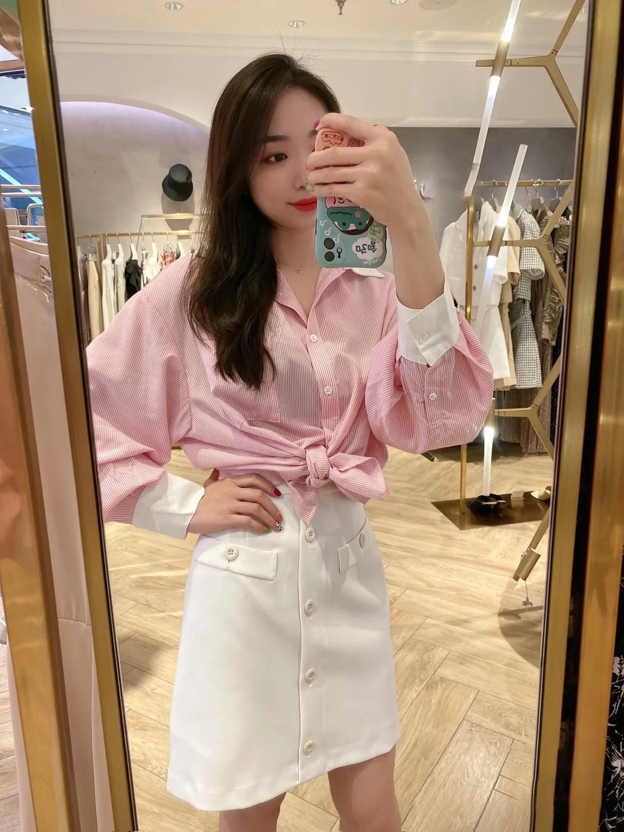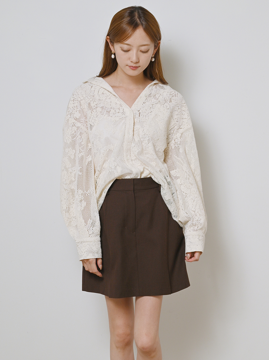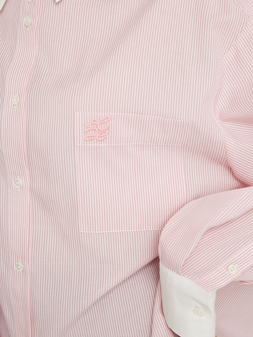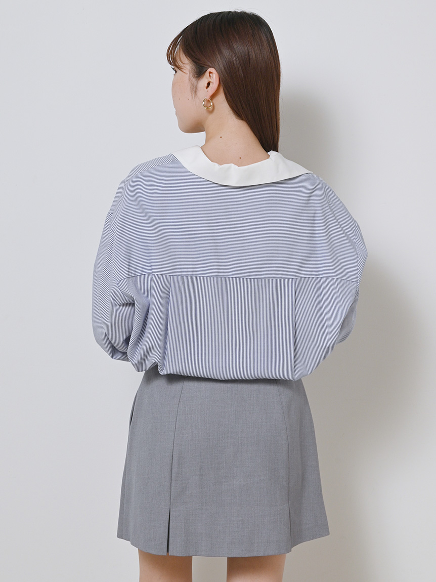 落ち感のある柔らかな生地を使用。レース素材を用いたアイボリー、定番のストライプ柄を浮かべたピンク、ブルーの3色展開です。