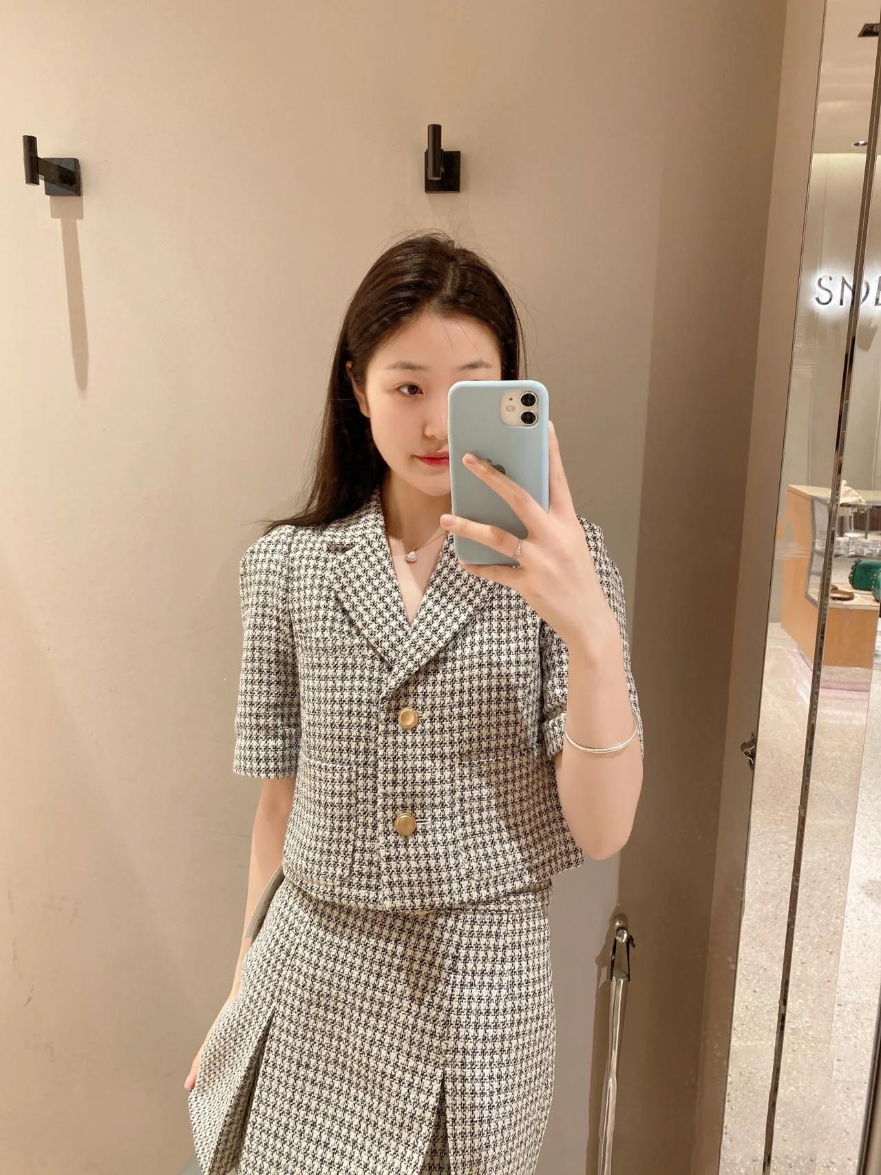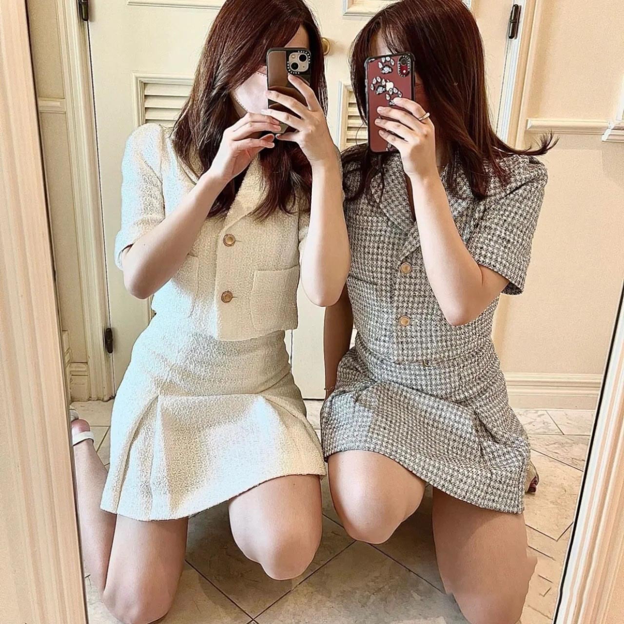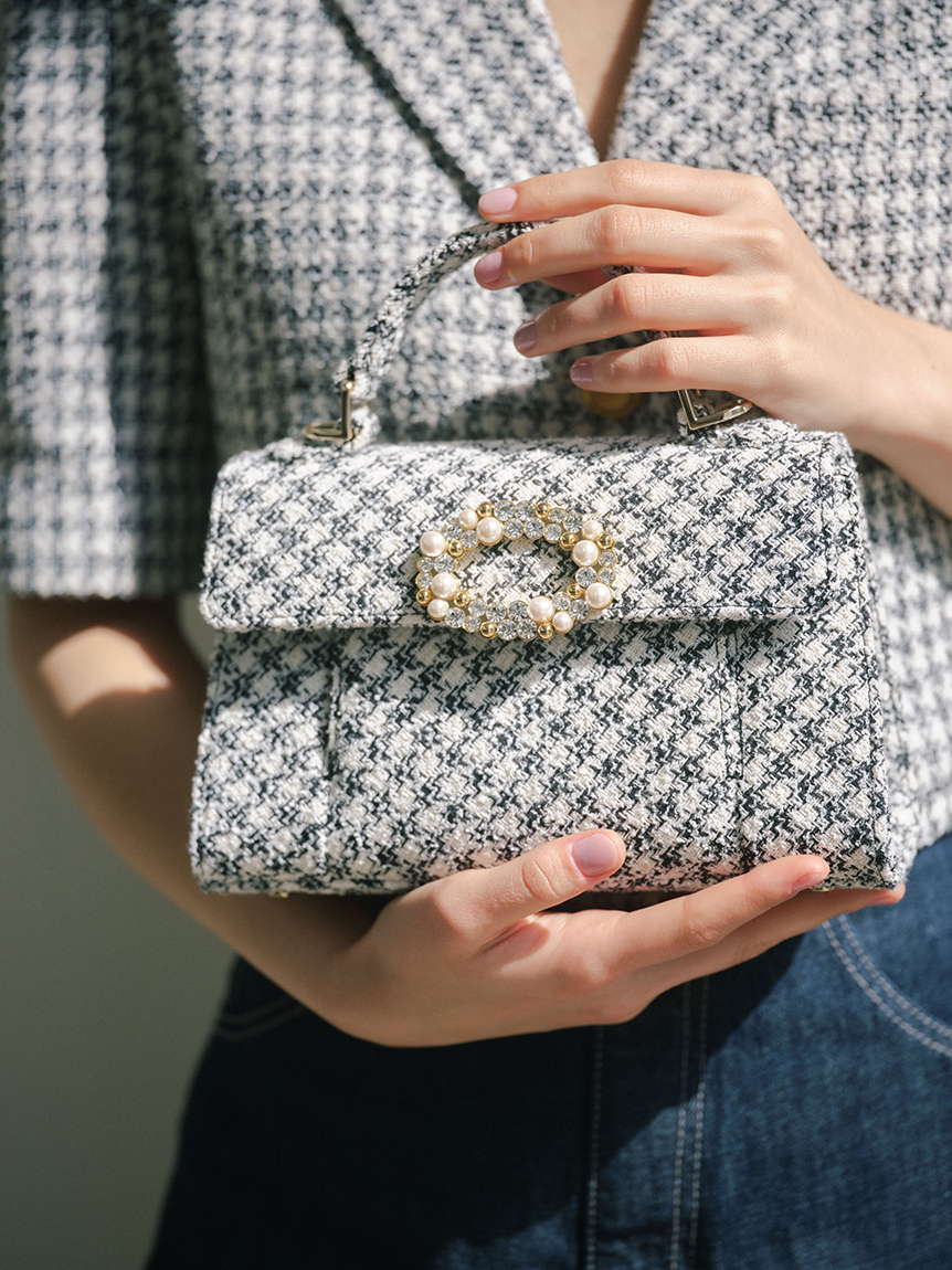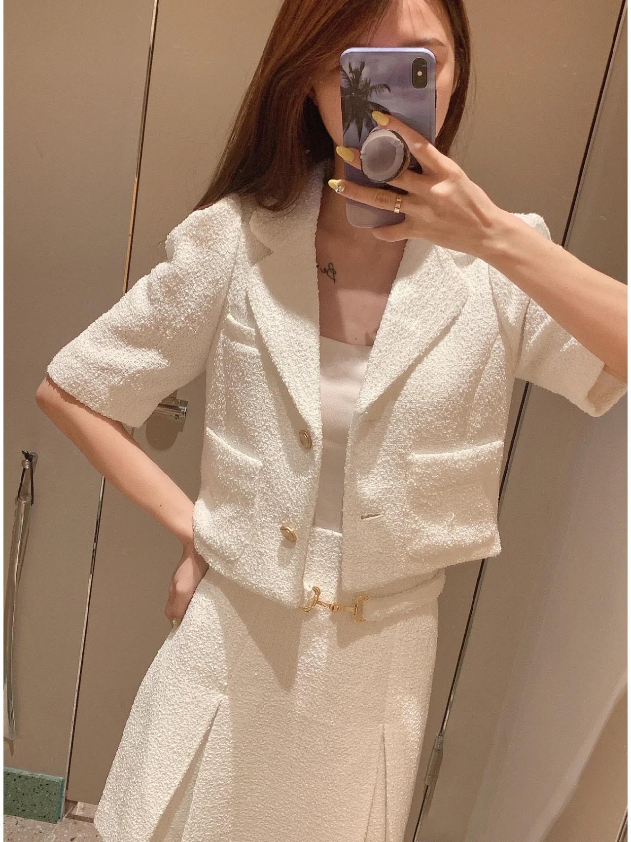 表面感のあるツイード素材を用いたホワイト、ライトな布帛のベージュ、千鳥柄ツイードを使用したミックスの豊富なバリエーション展開でお届けします。