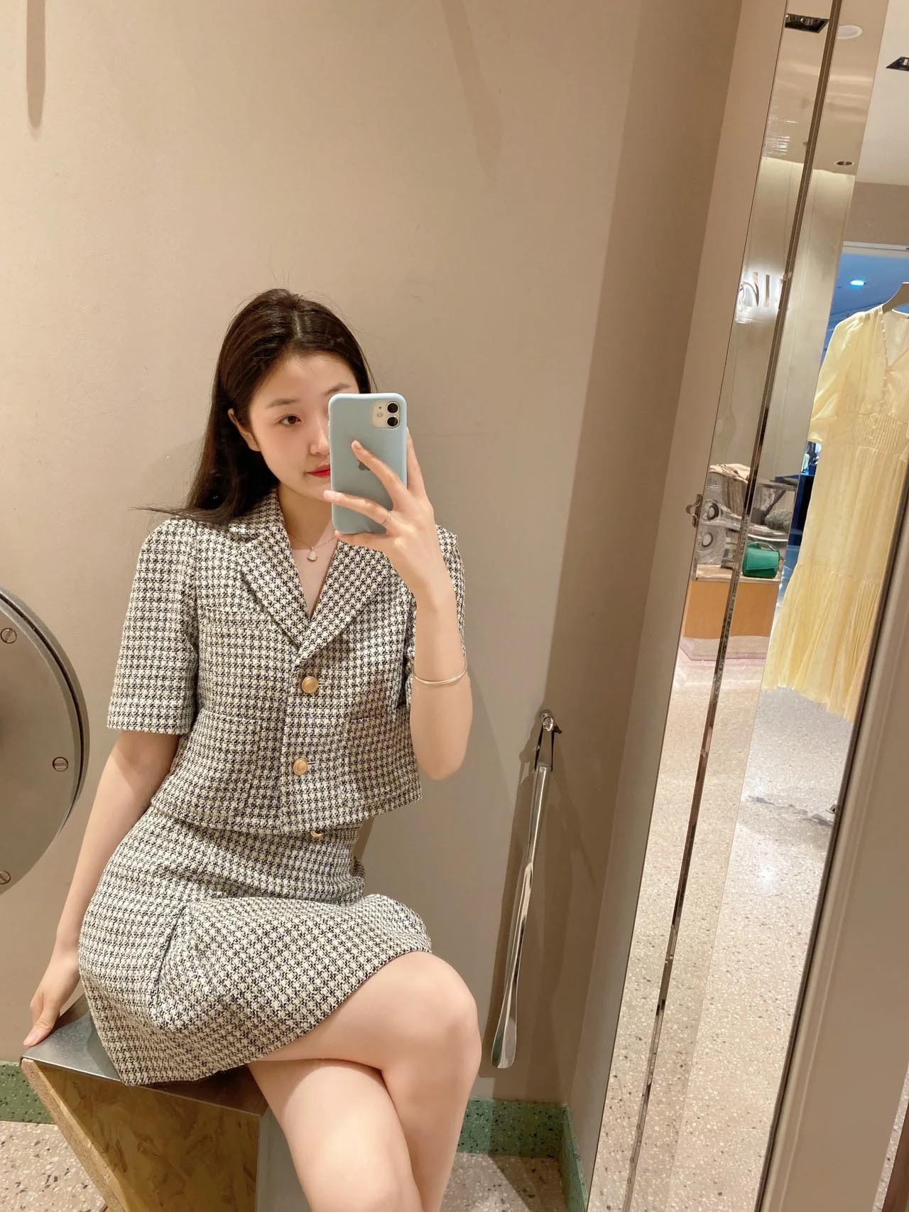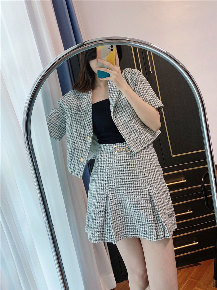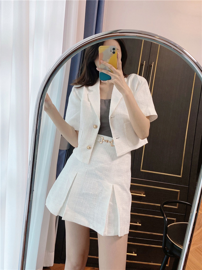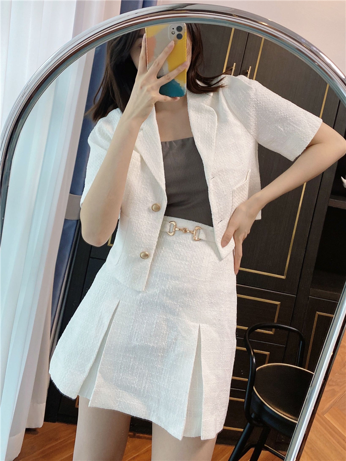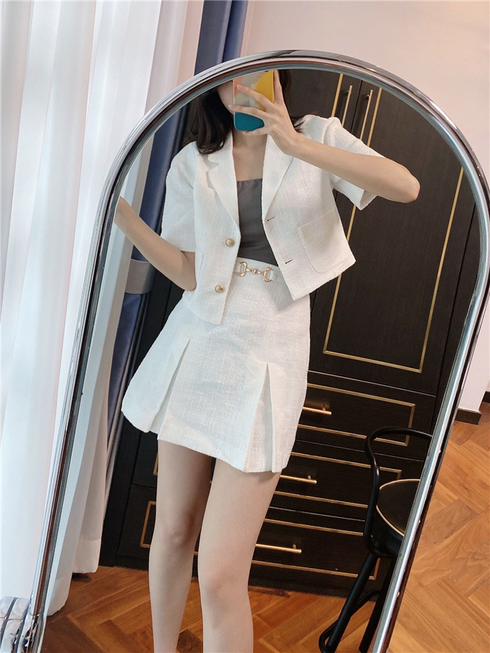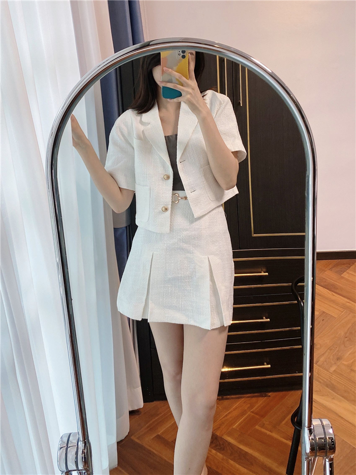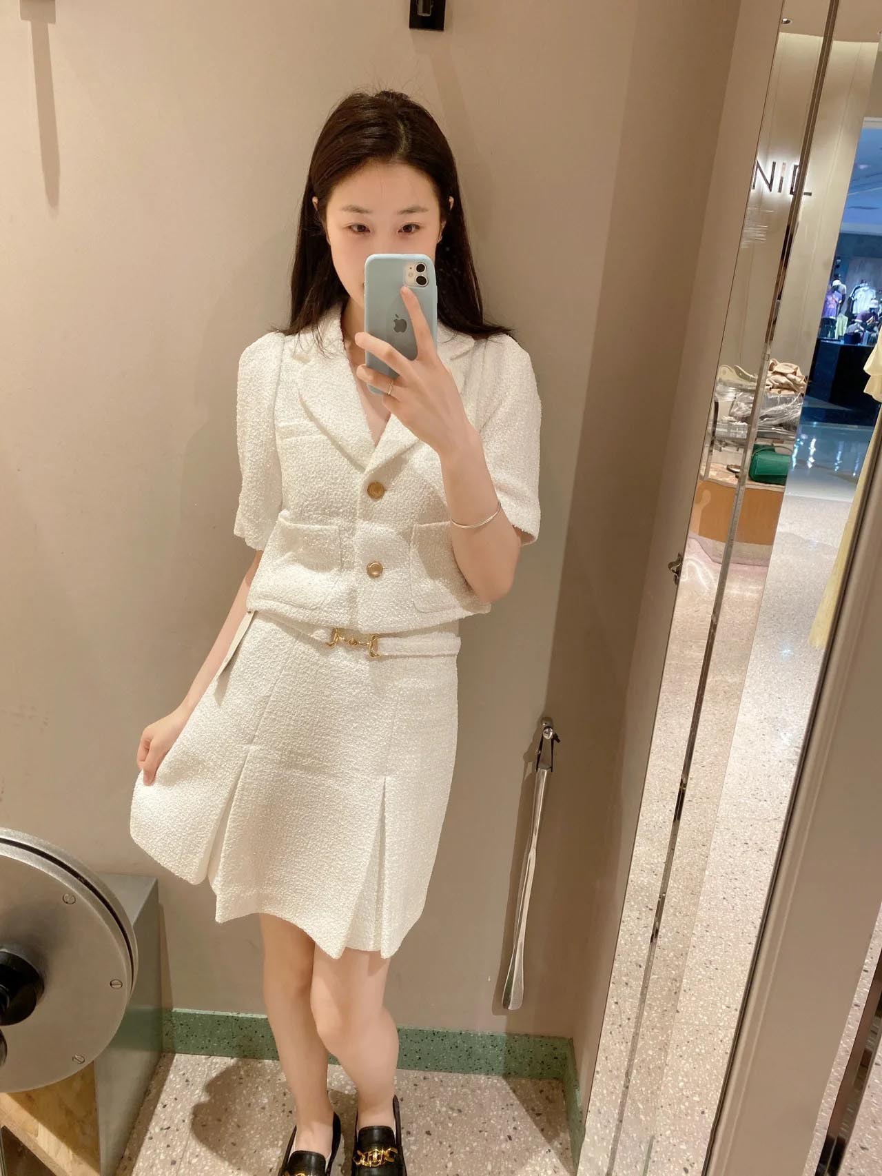 表面感のあるツイード素材を用いたホワイト、ライトな布帛のベージュ、千鳥柄ツイードを使用したミックスの豊富なバリエーション展開でお届けします。