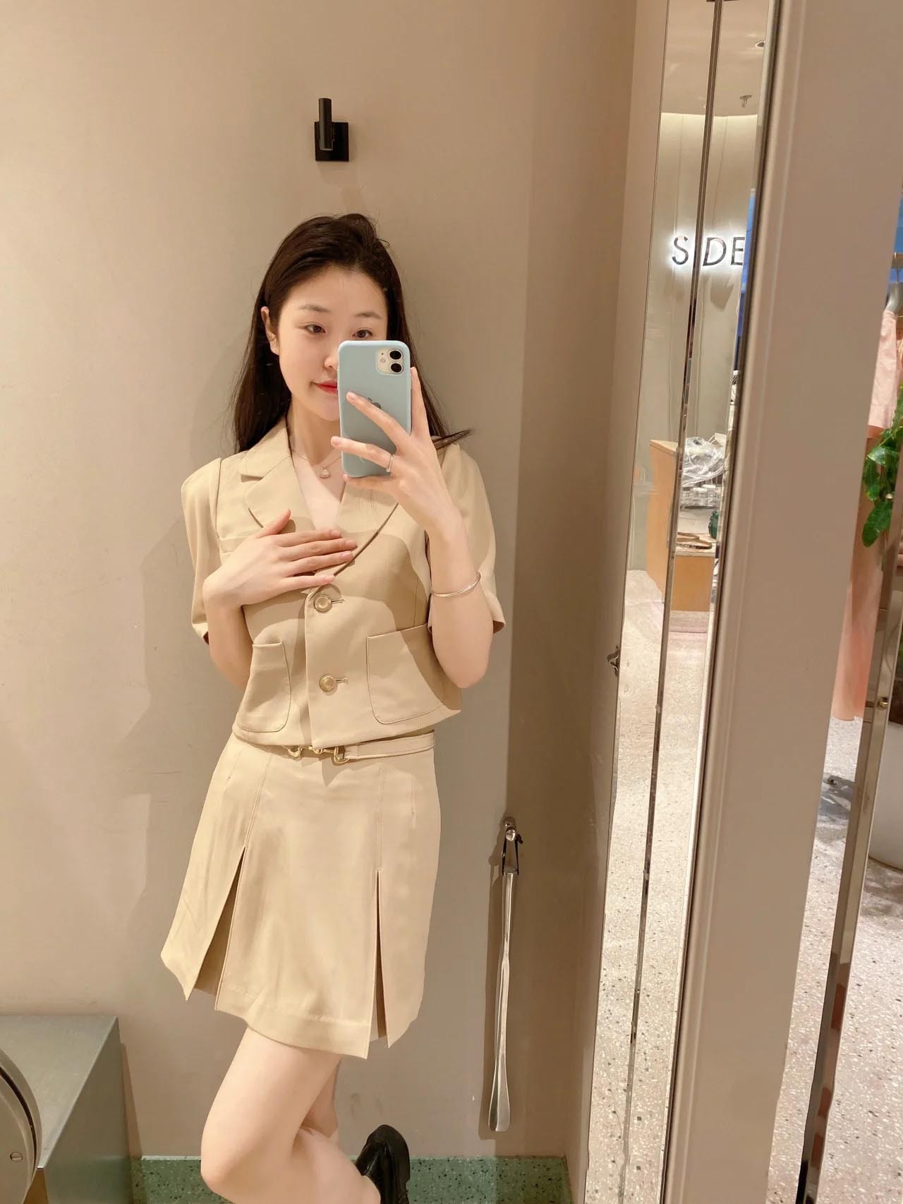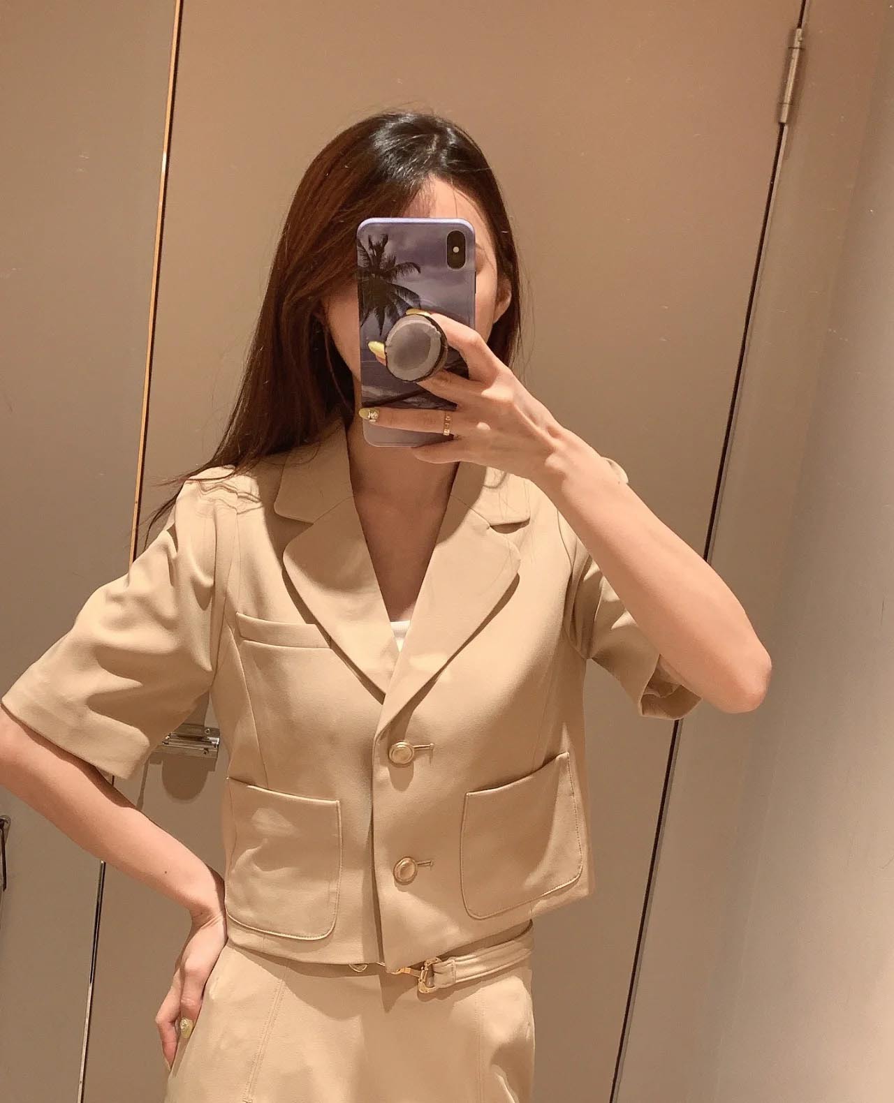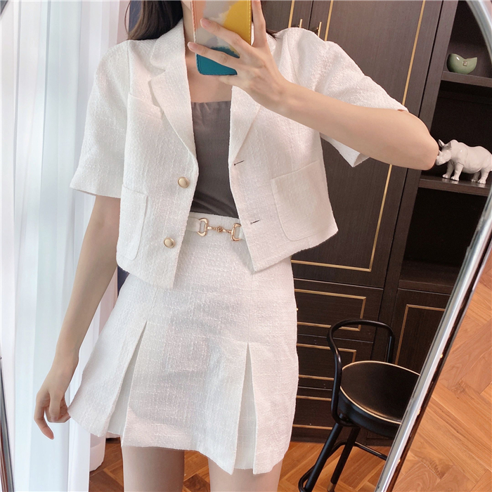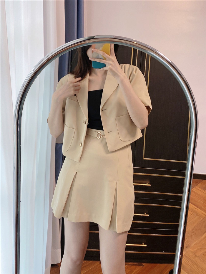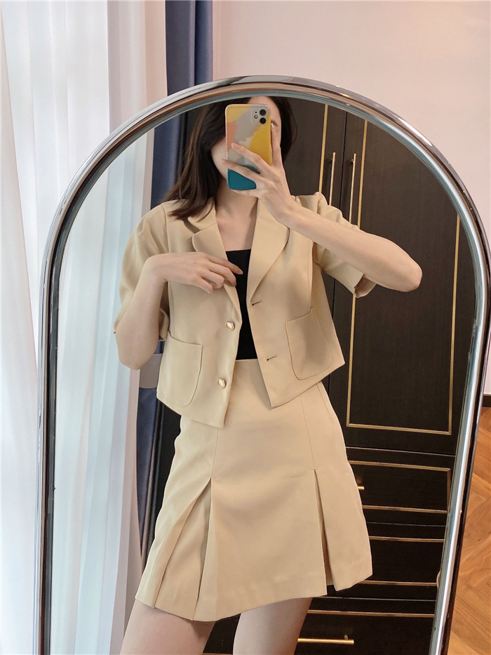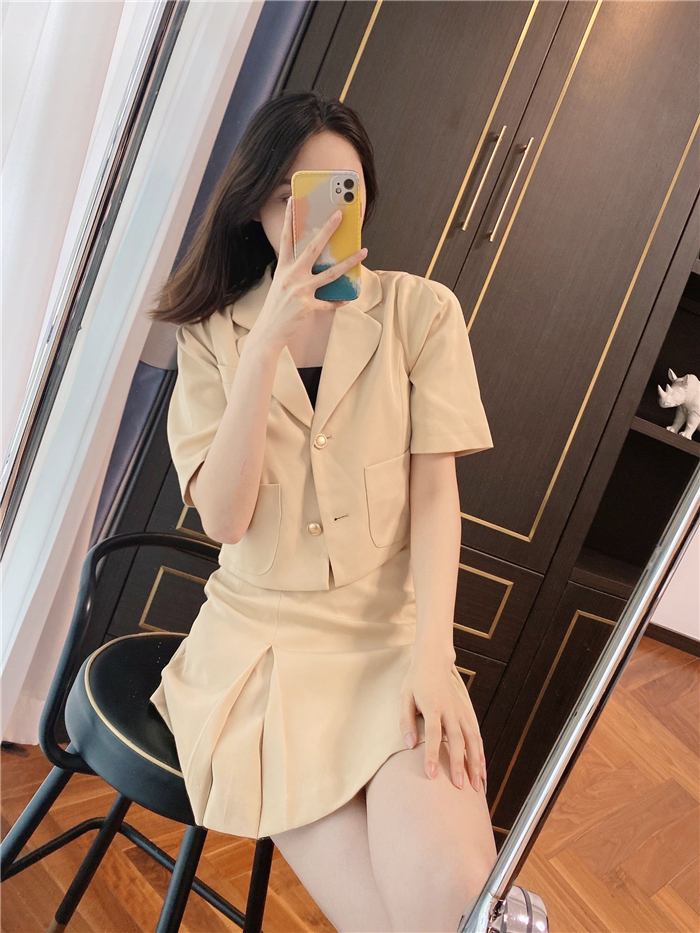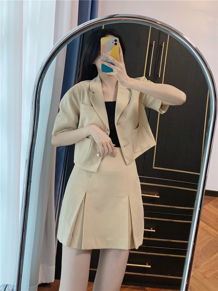 プラスワンでトレンド感がぐっと高まる、今季注目のハーフスリーブジャケット。タックを効かせ立体感を与えたスリーブ&コンパクトな身頃で女性らしく仕上げました。マットな光沢を放つフロントのボタンが上品なアクセントに。レングスをジャストに仕立てているので様々なボトムと相性が良く、同素材のスカート(SWFS222100)とセットアップでスタイリングするのもおすすめです。