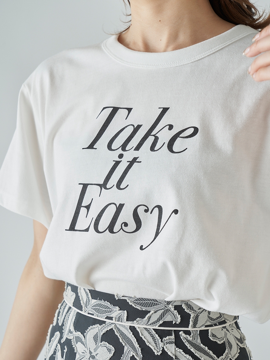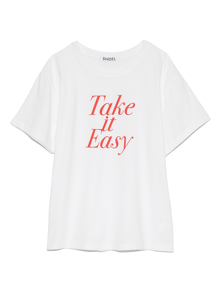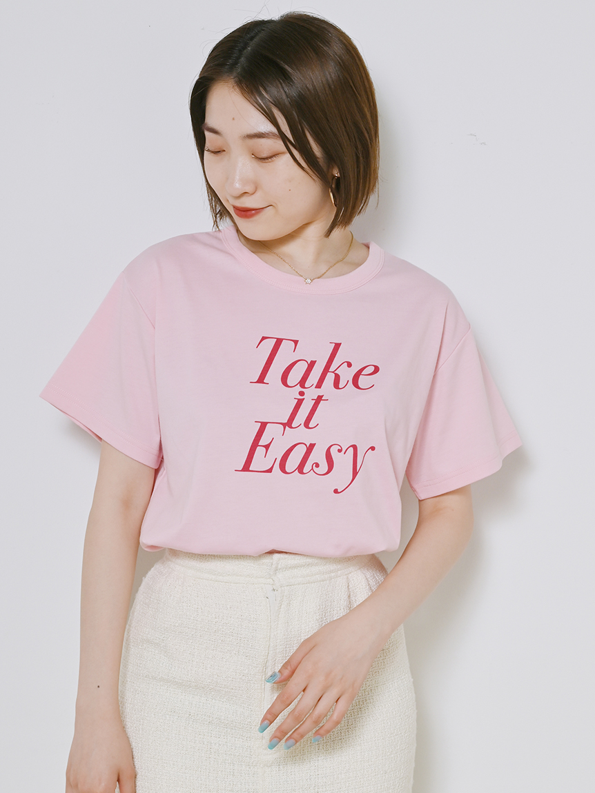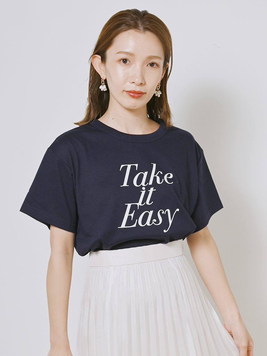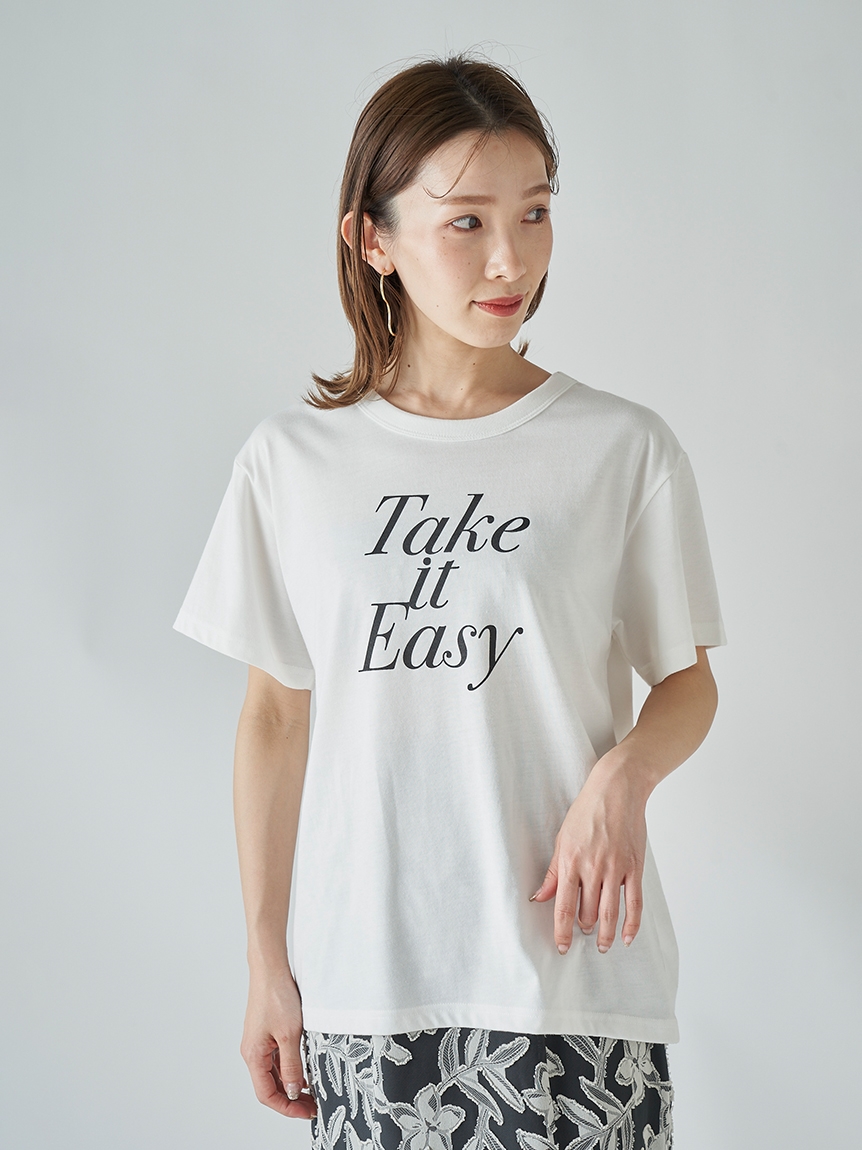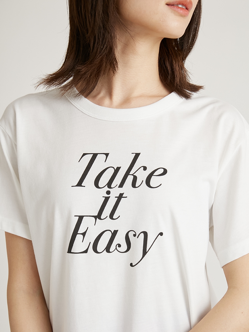 女性らしい書体で描かれた大きめのロゴプリントが印象的な定番Tシャツ。ドロップショルダーながらゆったりし過ぎず、タイト過ぎない絶妙なシルエットにこだわった1着です。裾はインでもアウトでもバランス良く決まるので様々なボトムと合わせやすく、幅広いコーディネートに活躍してくれます。