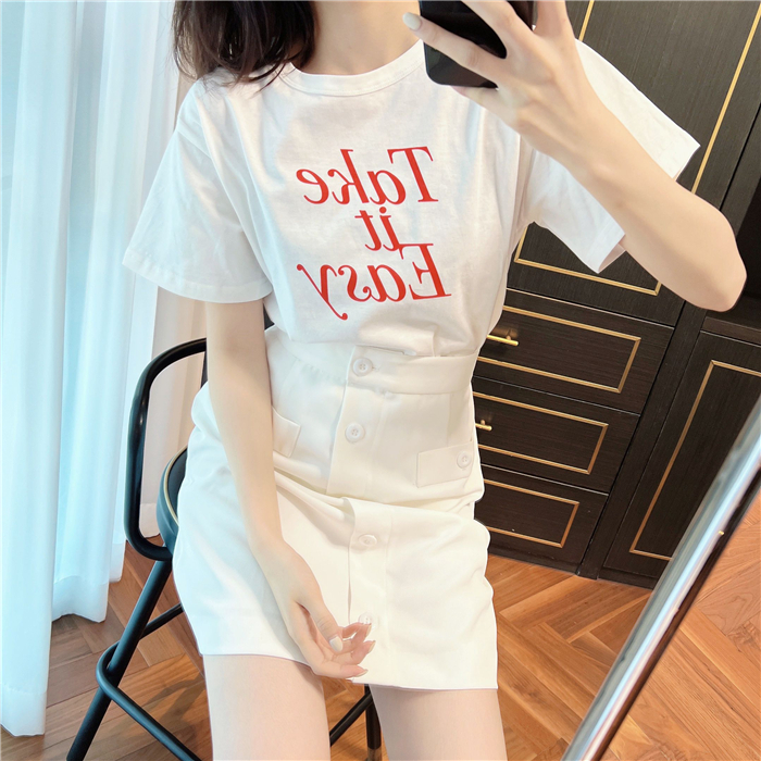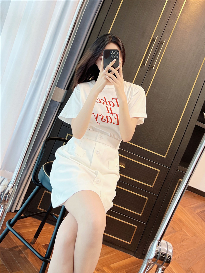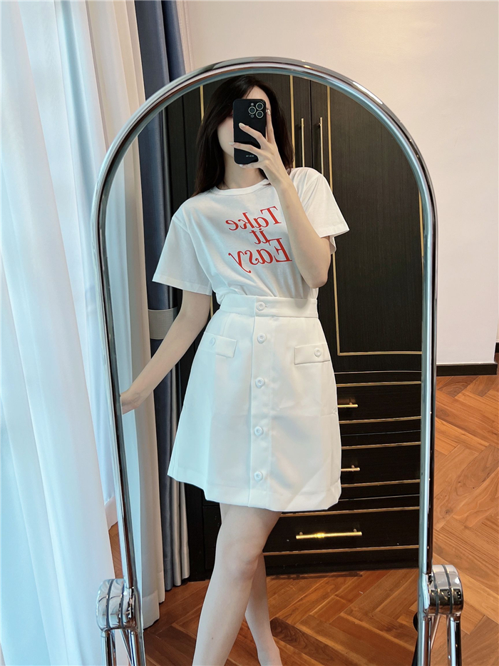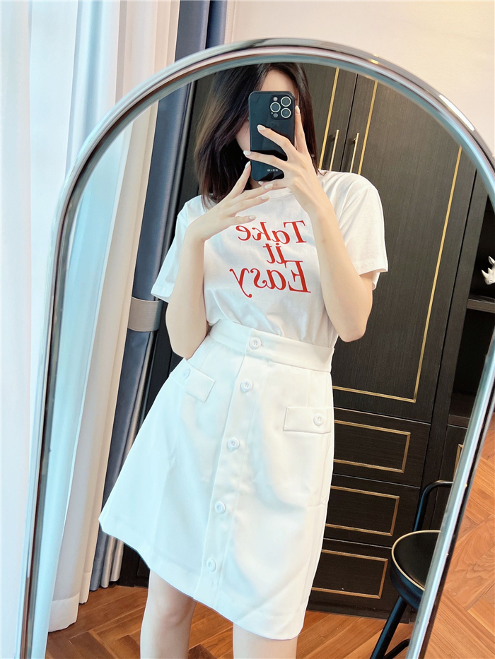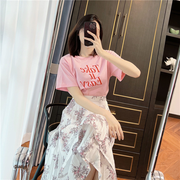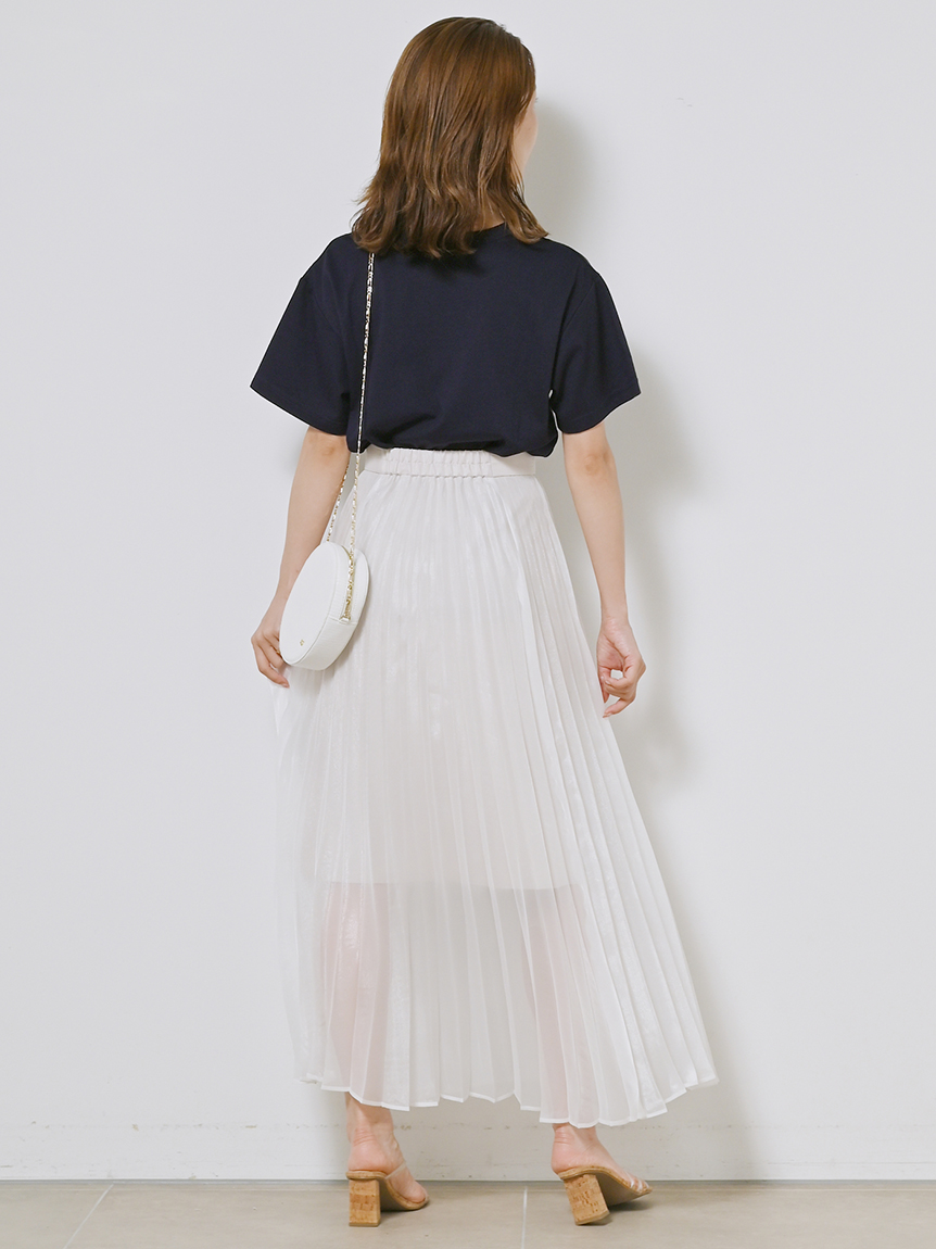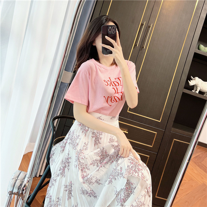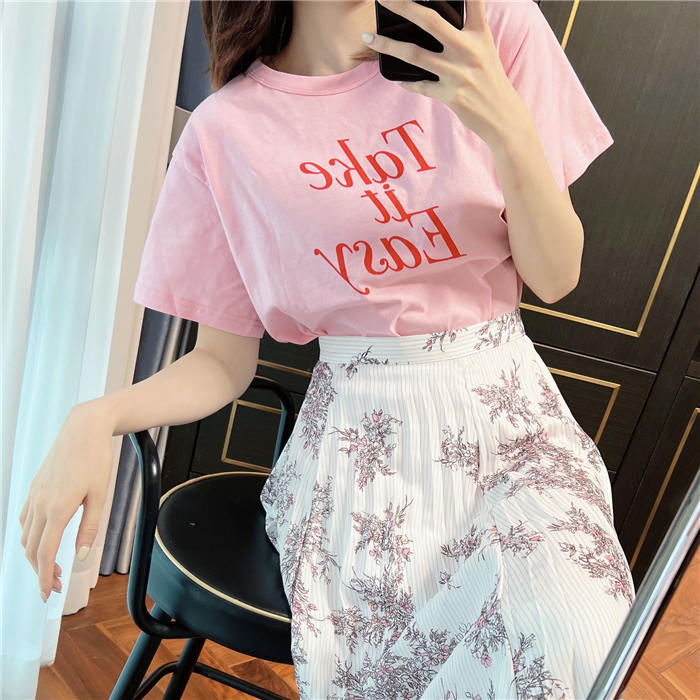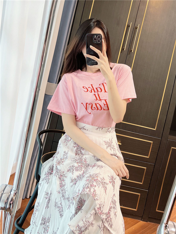 女性らしい書体で描かれた大きめのロゴプリントが印象的な定番Tシャツ。ドロップショルダーながらゆったりし過ぎず、タイト過ぎない絶妙なシルエットにこだわった1着です。裾はインでもアウトでもバランス良く決まるので様々なボトムと合わせやすく、幅広いコーディネートに活躍してくれます。
