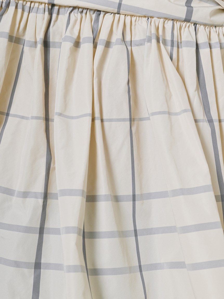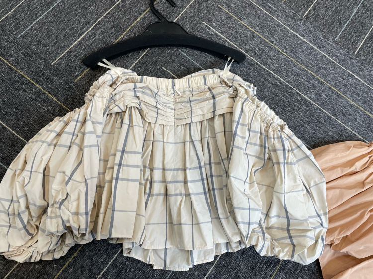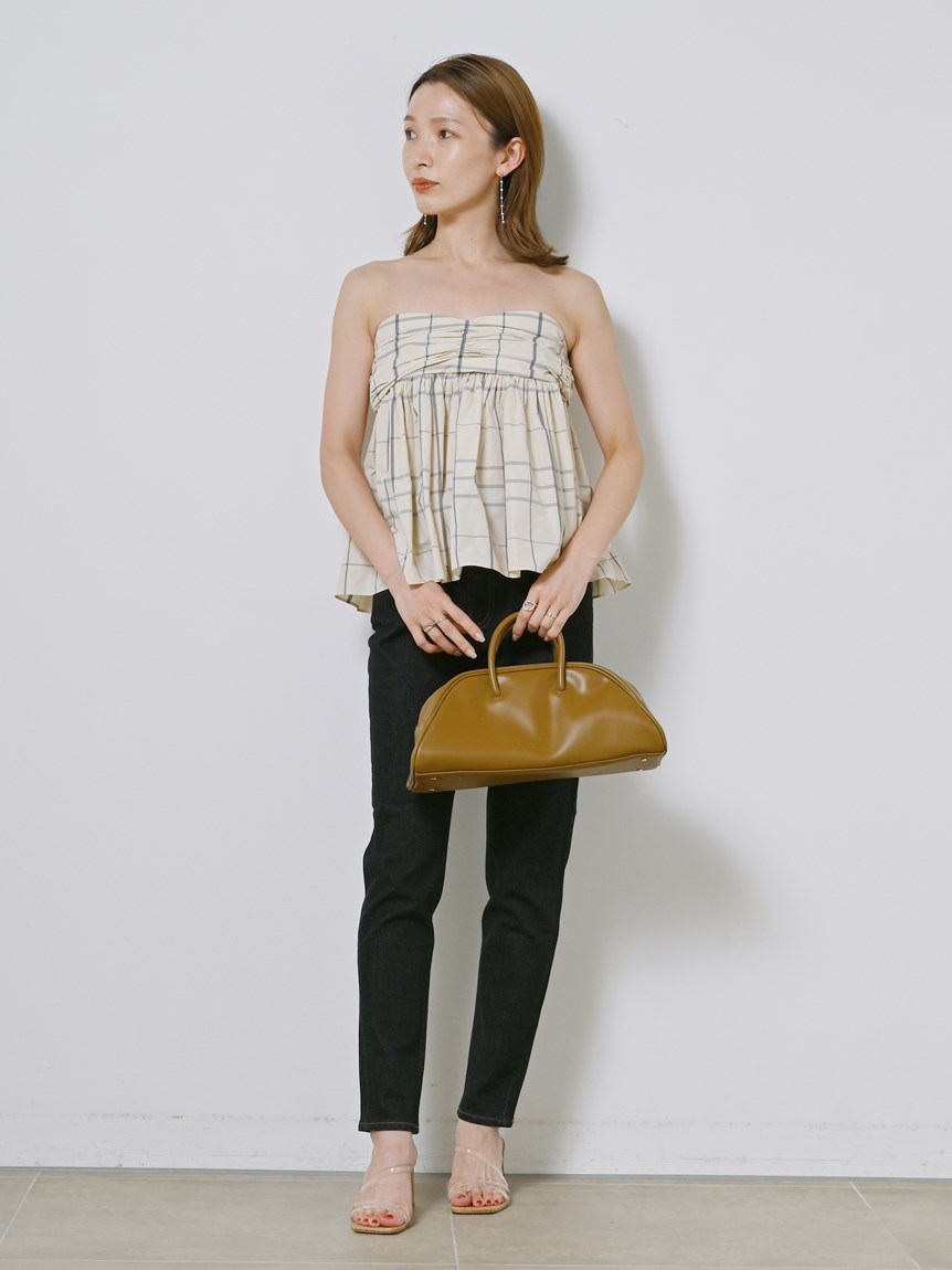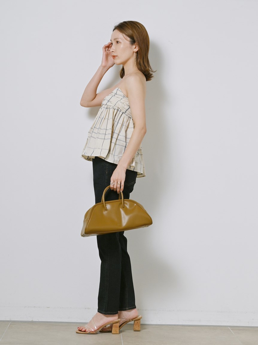程よいハリをもつ生地を使用することでボリューム感のあるシルエットをメイク。大人なっぽい印象のブラック、トレンド感のあるオレンジ、クラシカルな雰囲気のチェックの3色展開でお届けします。