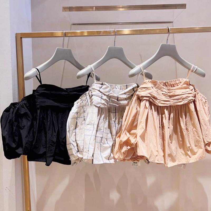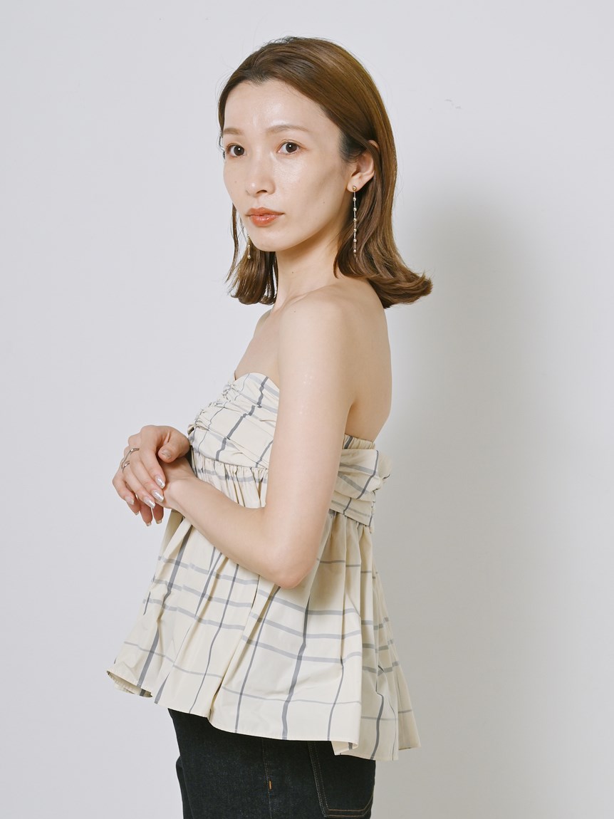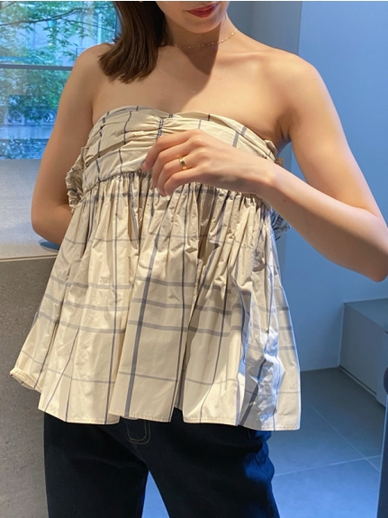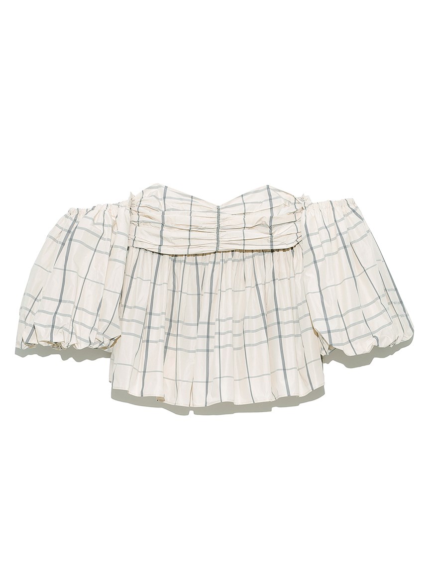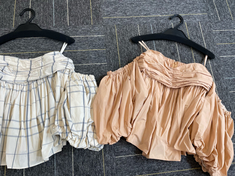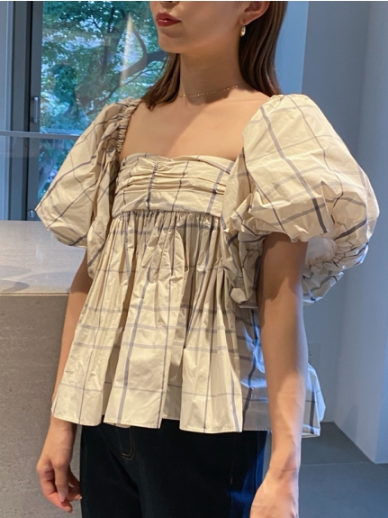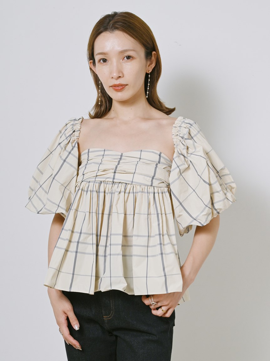 今年らしいヘルシーな肌見せで、女性らしさを存分にアピールできるオフショルブラウス。ふんわりとしたボリュームスリーブは肩に掛けたり取り外したりと自由にアレンジ可能。身頃部分にはたっぷりとギャザーを寄せ、分量感のあるフレアシルエットに仕上げています。ボトムはすっきりとしたパンツを合わせてメリハリのあるスタイリングがオススメ。
