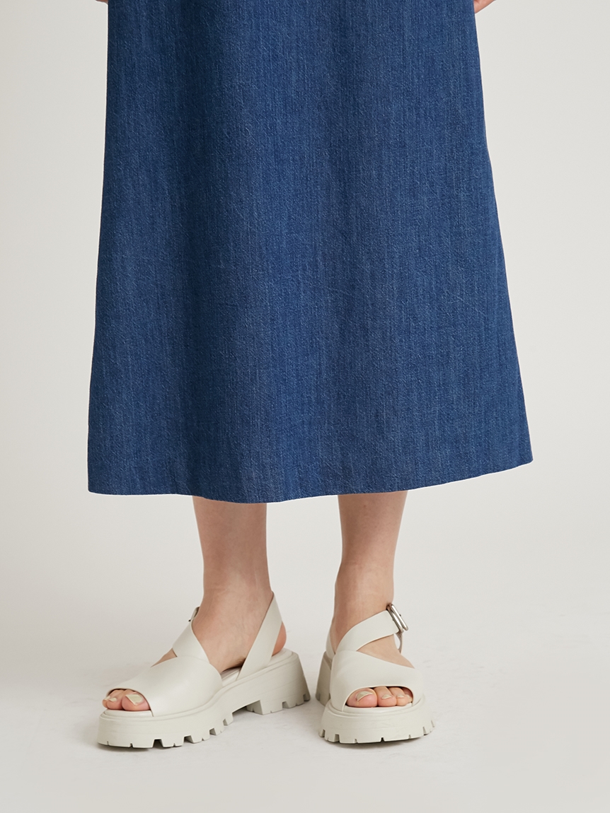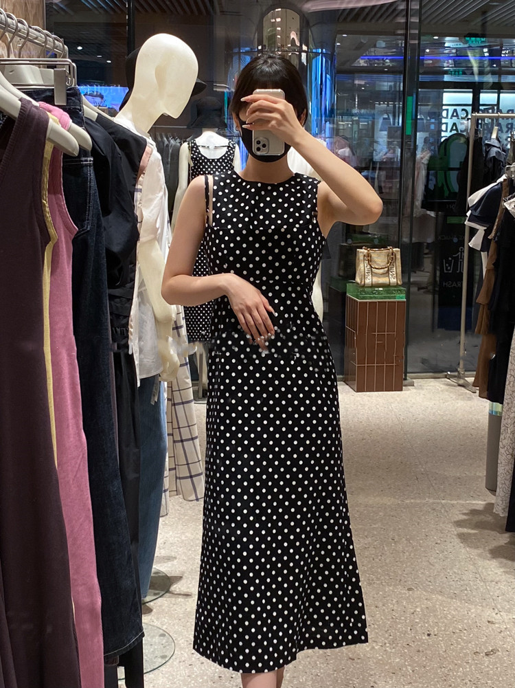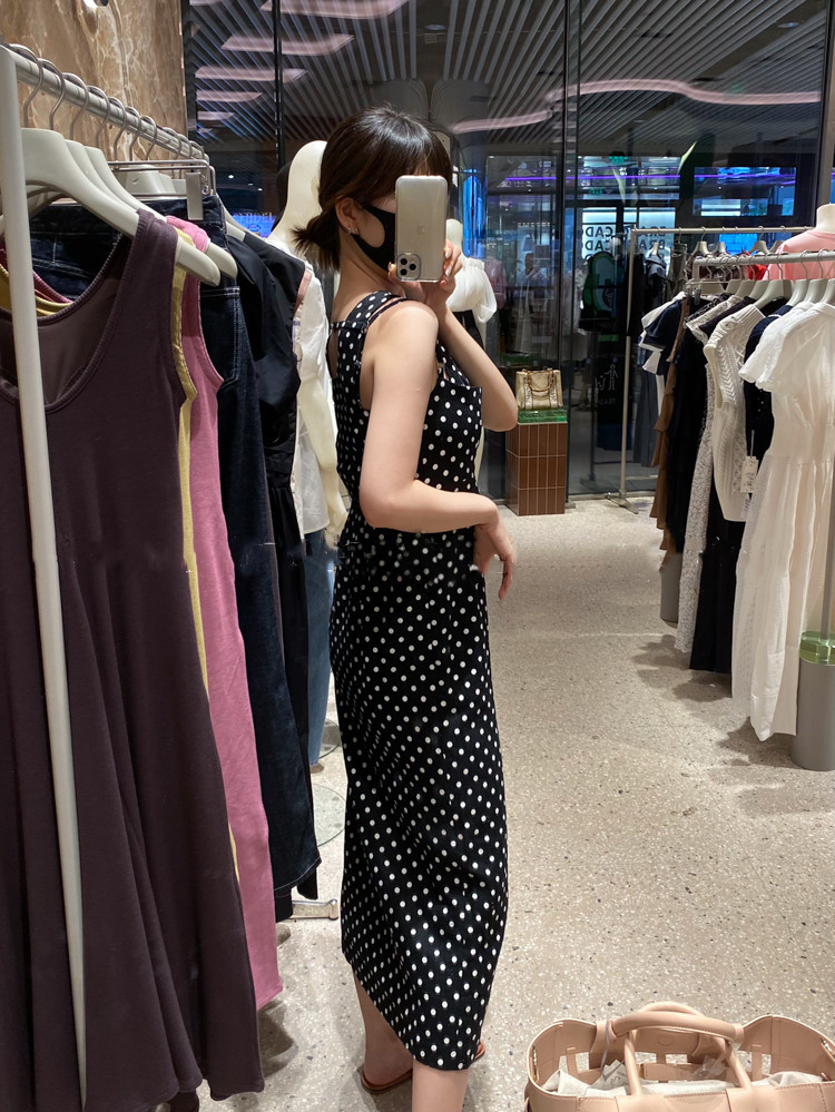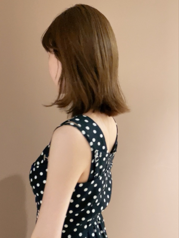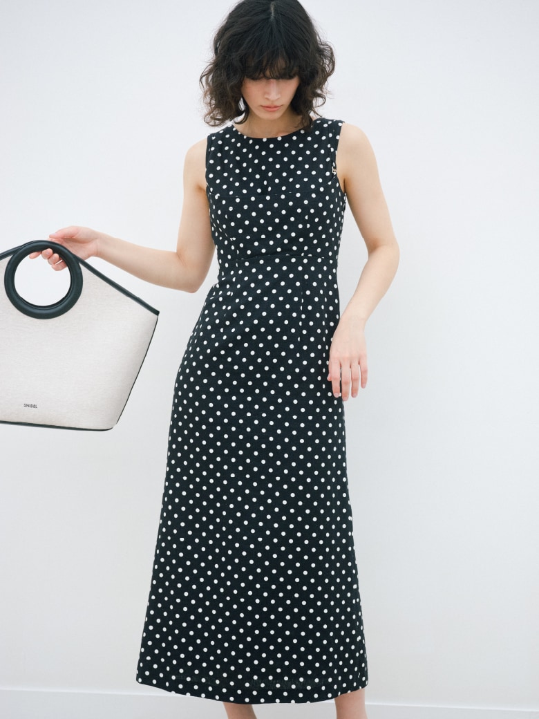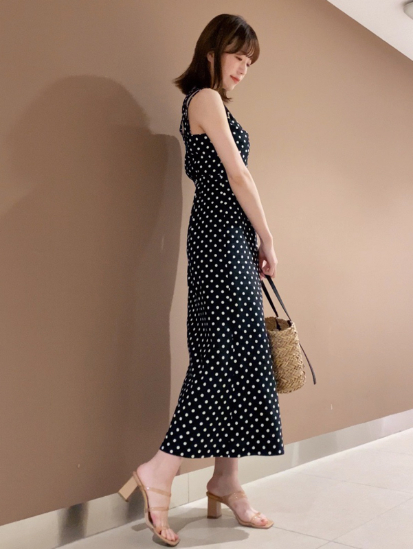 身体のラインを拾いにくい程よい厚みのレーヨンリネン生地を使用したブラックとドット、デニム素材を用いたブルーの3色をご用意しました。