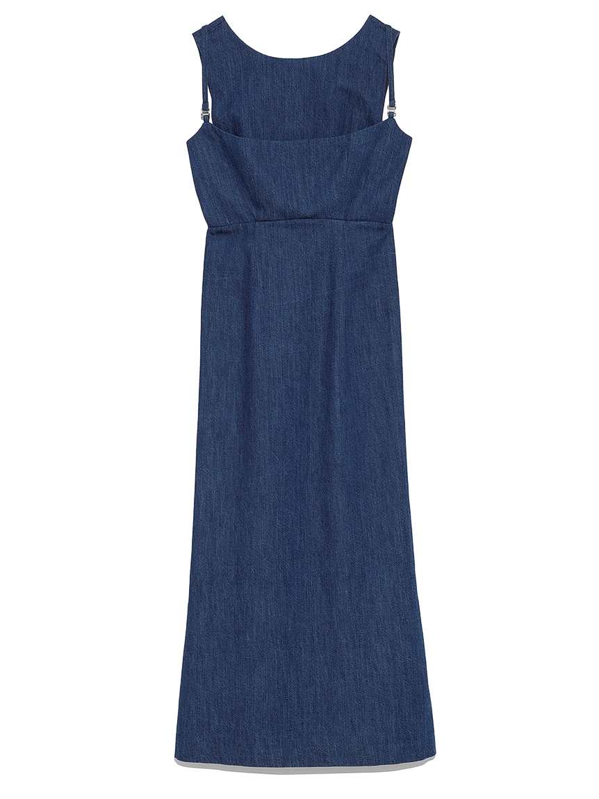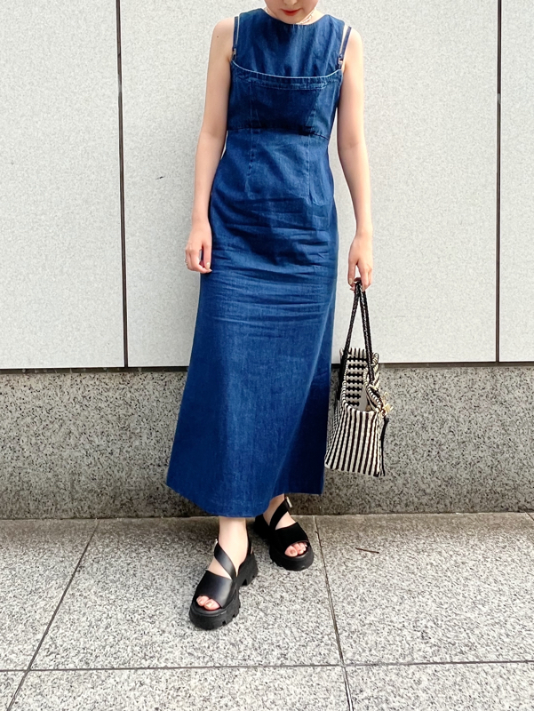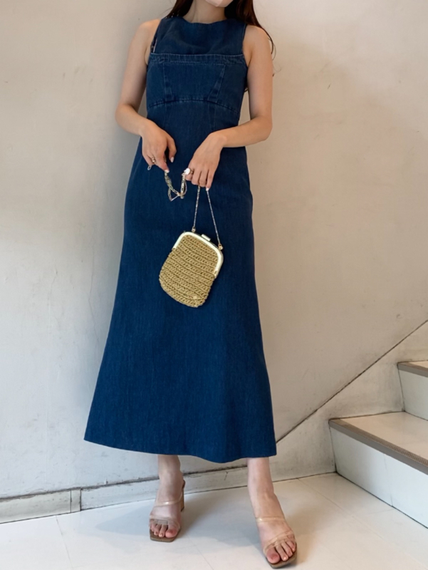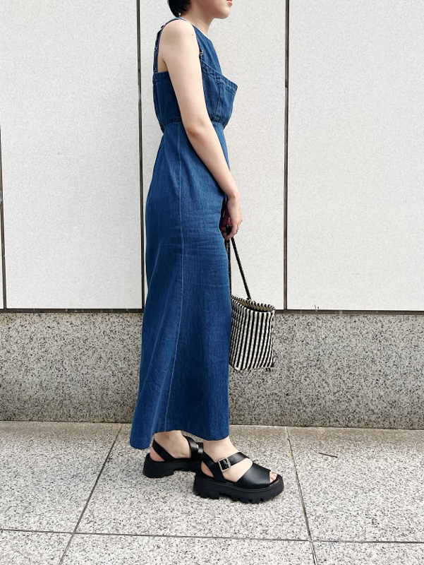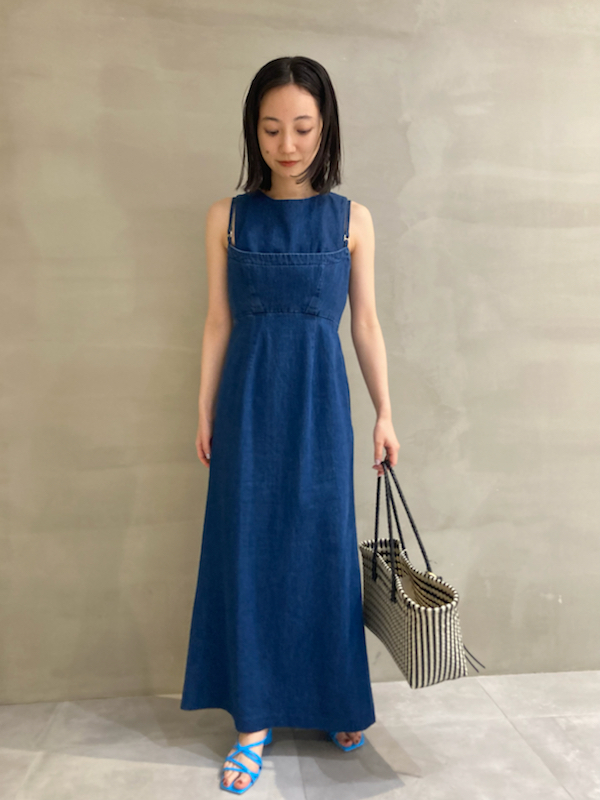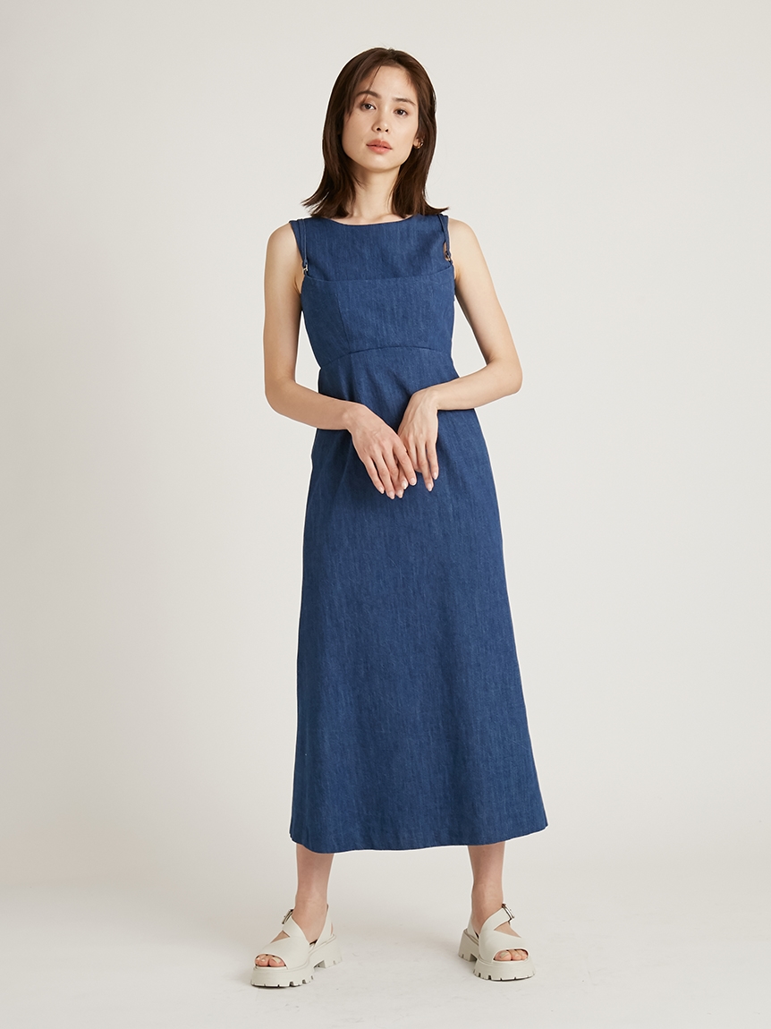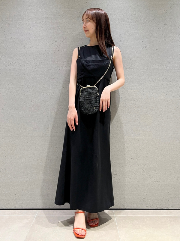 身頃部分のレイヤード風デザインがポイントになった、1枚でもお洒落度の高い着こなしを叶えるワンピース。ハイウエストの切り替えから裾に向かってゆるやかに広がるややマーメイドなラインが品の良さを感じさせる秘訣。バックネックにはビット付きのストラップをあしらい、後ろ姿まで抜かりなく仕上げています。バックウエストにはゴムを効かせているので程よい伸縮性があり、着心地も快適です。