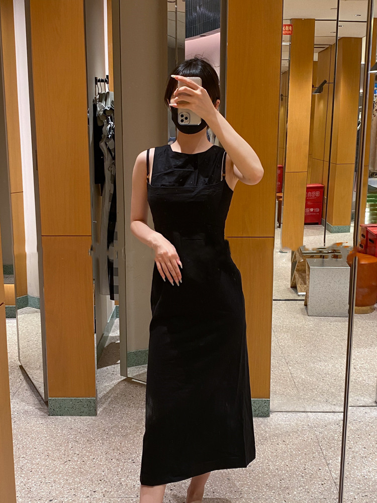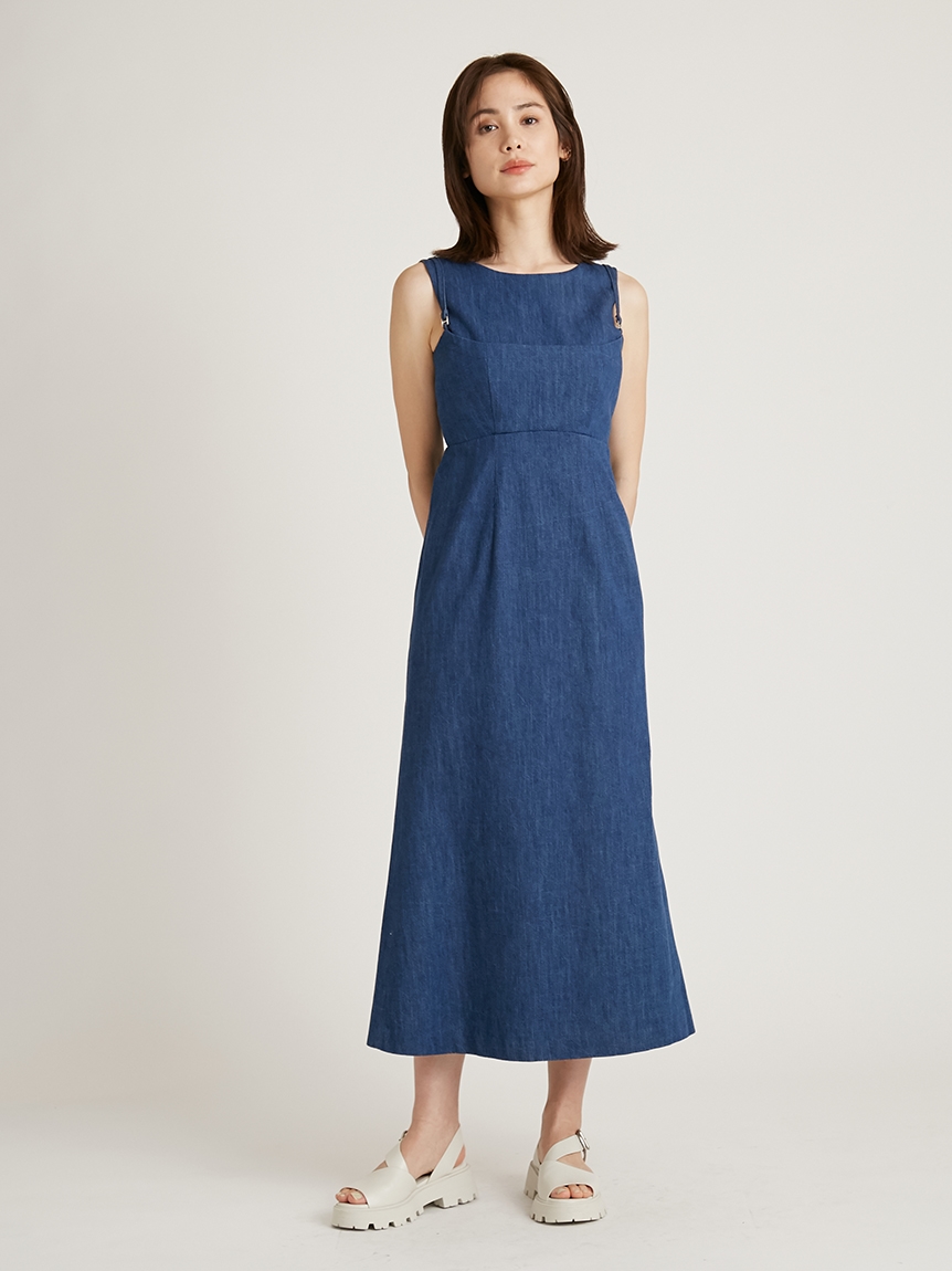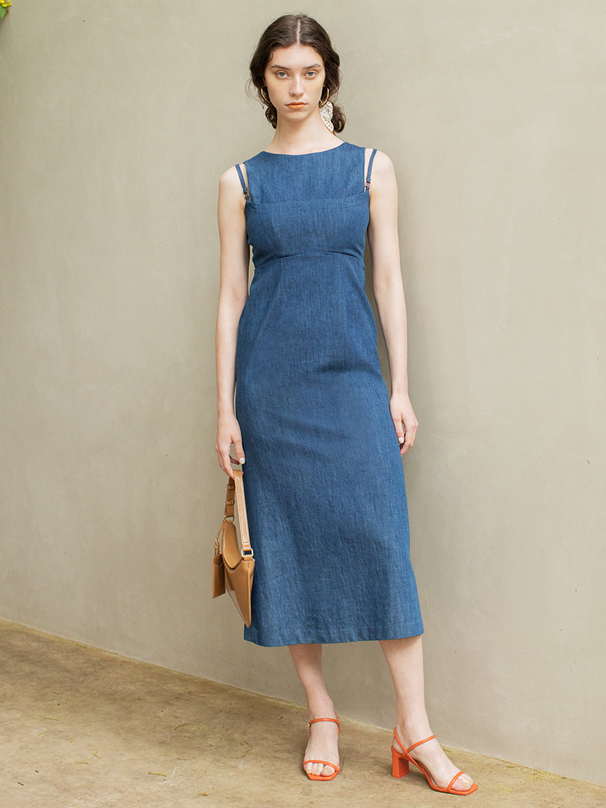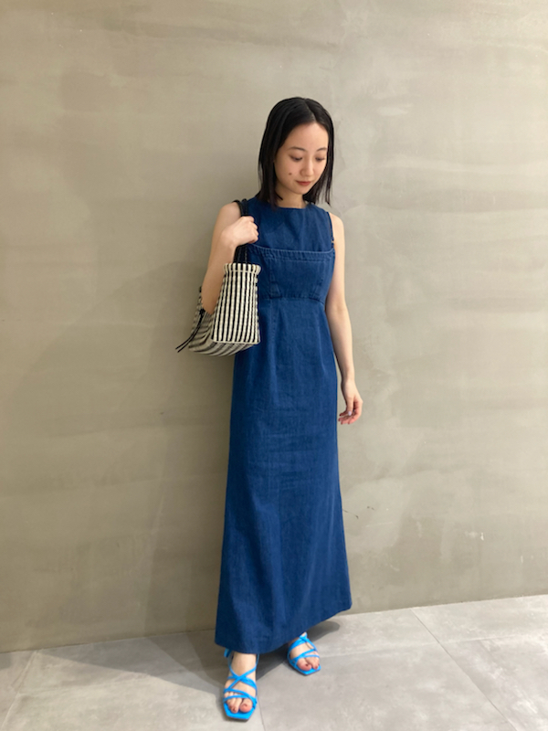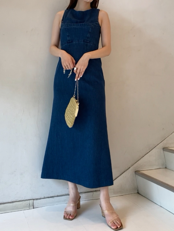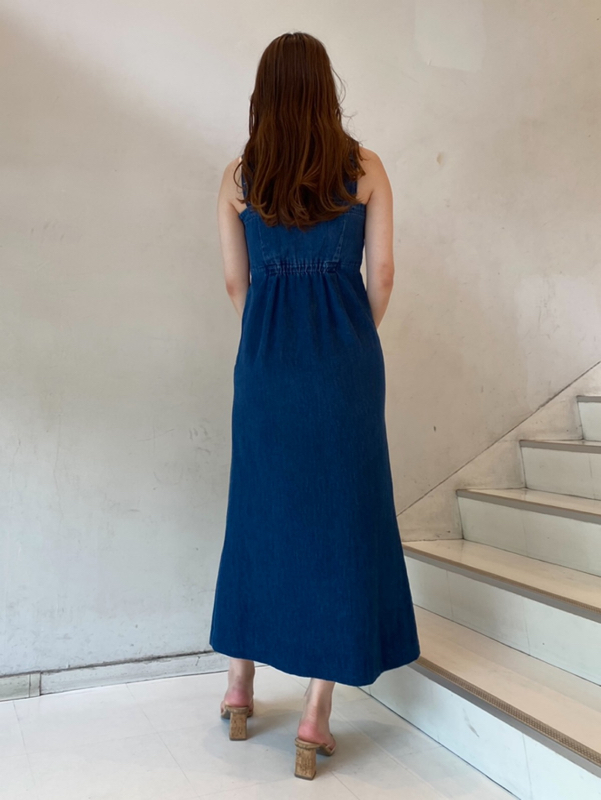 身頃部分のレイヤード風デザインがポイントになった、1枚でもお洒落度の高い着こなしを叶えるワンピース。ハイウエストの切り替えから裾に向かってゆるやかに広がるややマーメイドなラインが品の良さを感じさせる秘訣。バックネックにはビット付きのストラップをあしらい、後ろ姿まで抜かりなく仕上げています。バックウエストにはゴムを効かせているので程よい伸縮性があり、着心地も快適です。