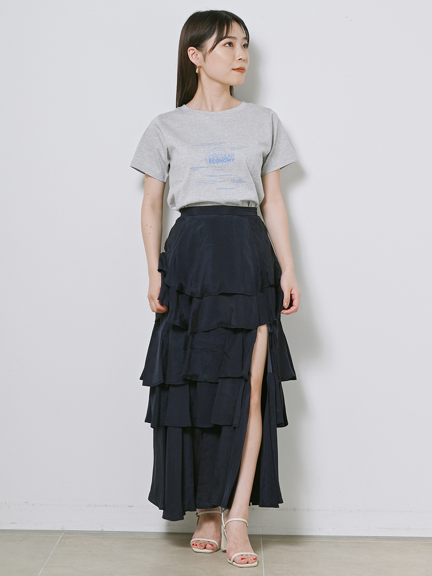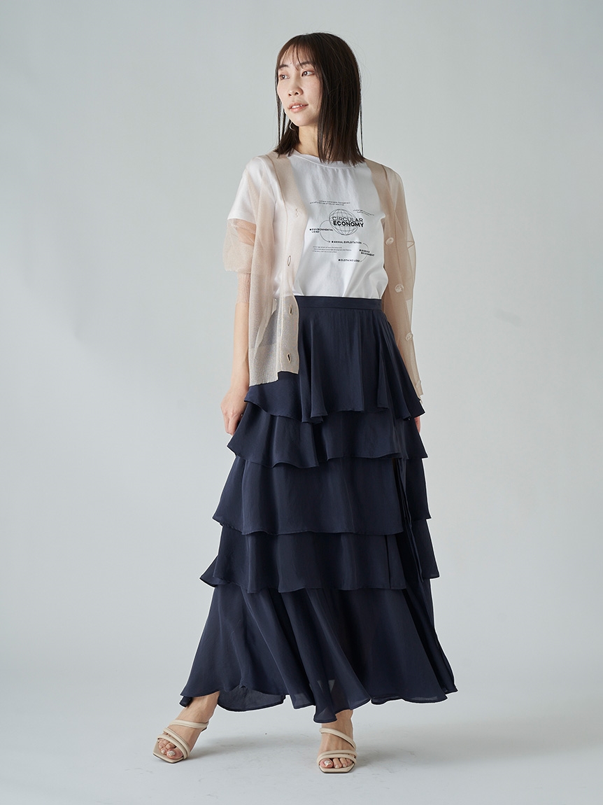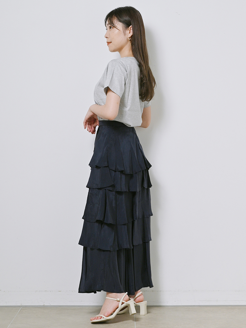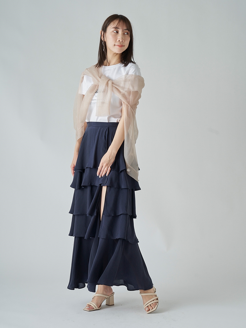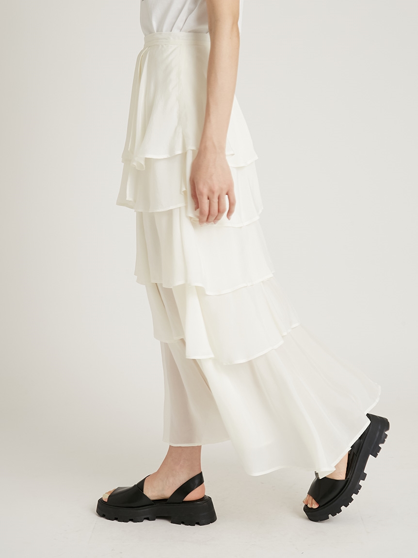 ひらひらとエレガントに波打つティアードフリルが印象的。女性らしさ溢れるルックスで、スタイリングを華やかに彩るスカショが届きました。一見ティアードスカートながらインにショートパンツを備えた技ありのデザインで、実用性も抑えた他にはない1着です。フロントに深めのスリットをあしらうことでトレンド感溢れる仕上がりに。歩くたびに覗く足元は合わせるシューズ次第でがらりと表情が変わり、様々なスタイリングが楽しめます。