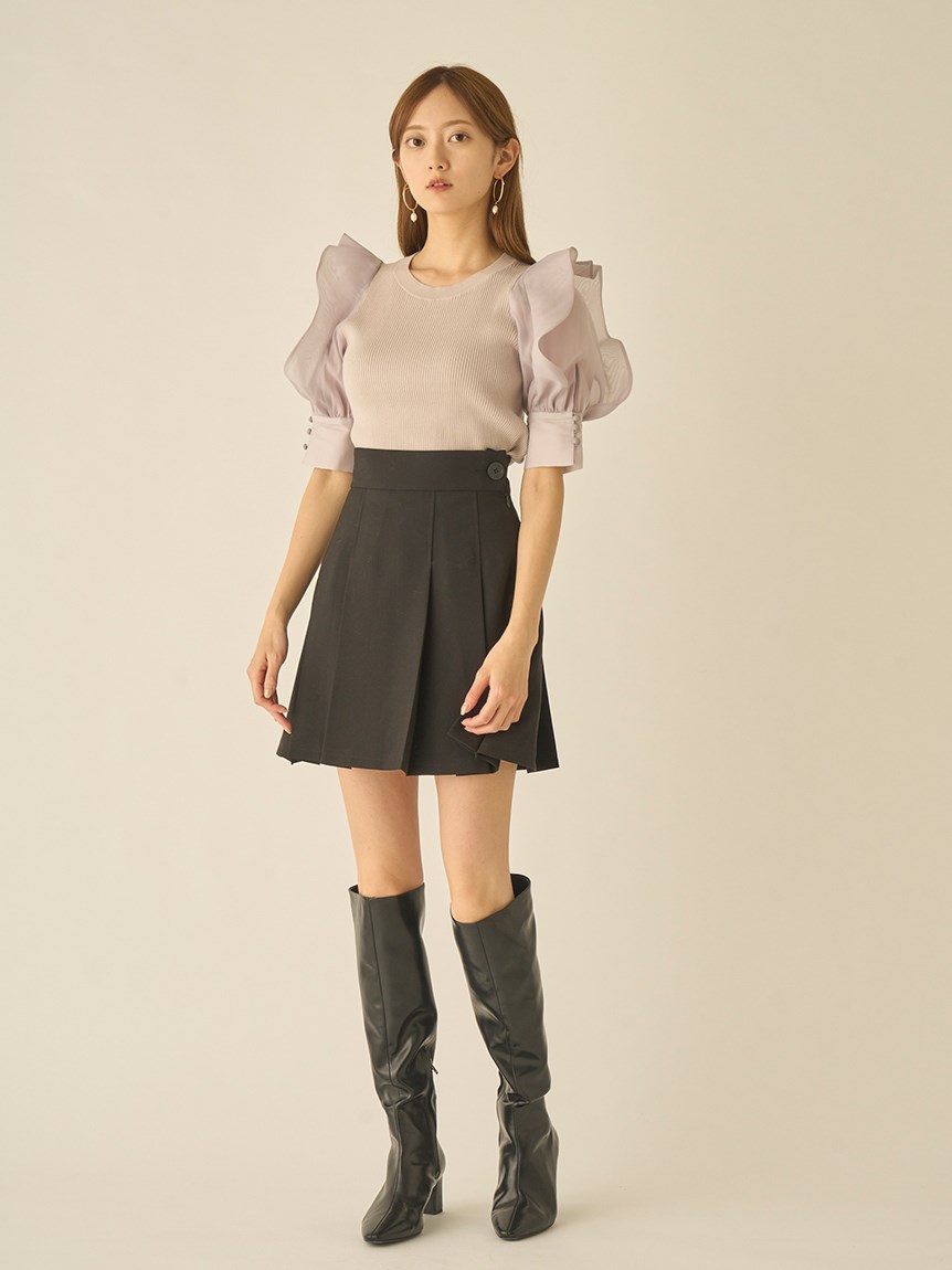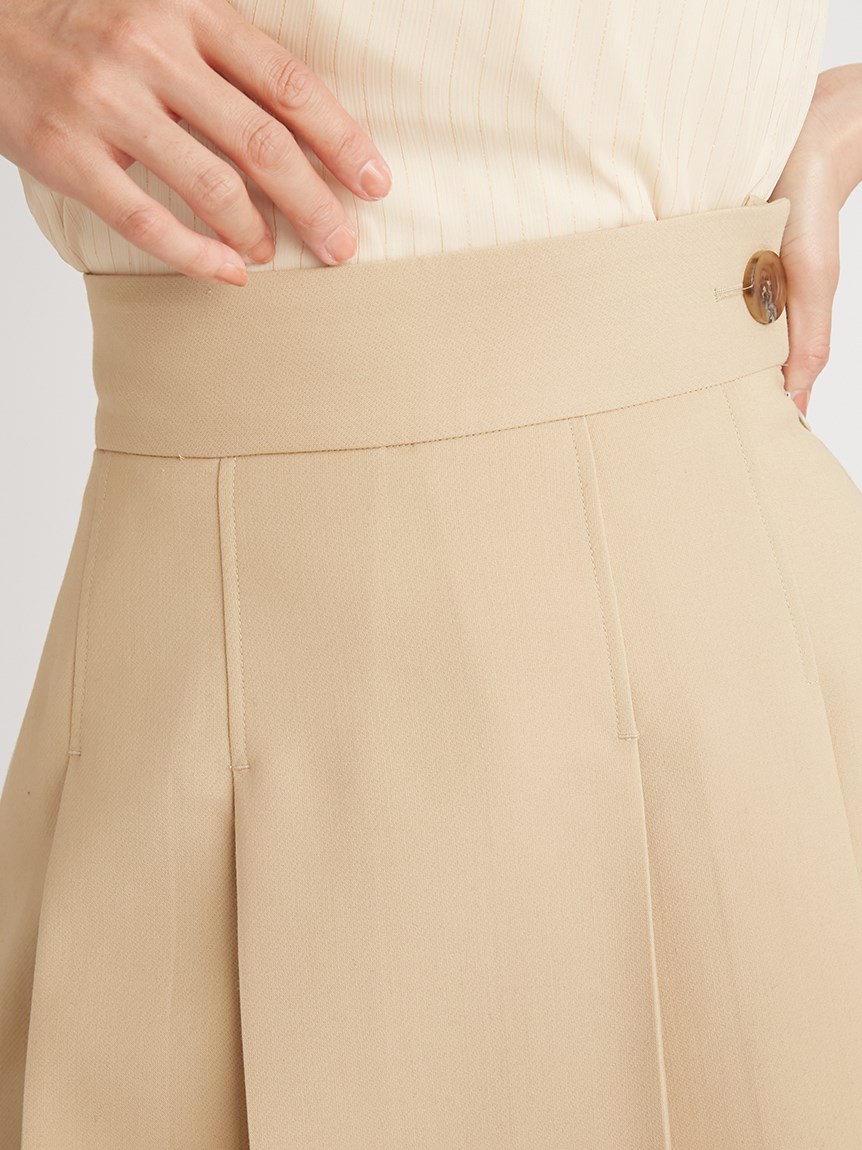 形が崩れないように計算された太めのプリーツが印象的な、きちんと感のある上品なルックスのスカショーパン。「SNIDEL」定番の人気アイテムを秋冬らしいデザインで仕上げました。左ウエストにあしらわれた大きめのボタンが、シンプルな中に映えるさり気ないアクセントに。幅広い年代の方に似合うようにとこだわった絶妙な丈感で、品の良いスタイリングを叶えてくれます。