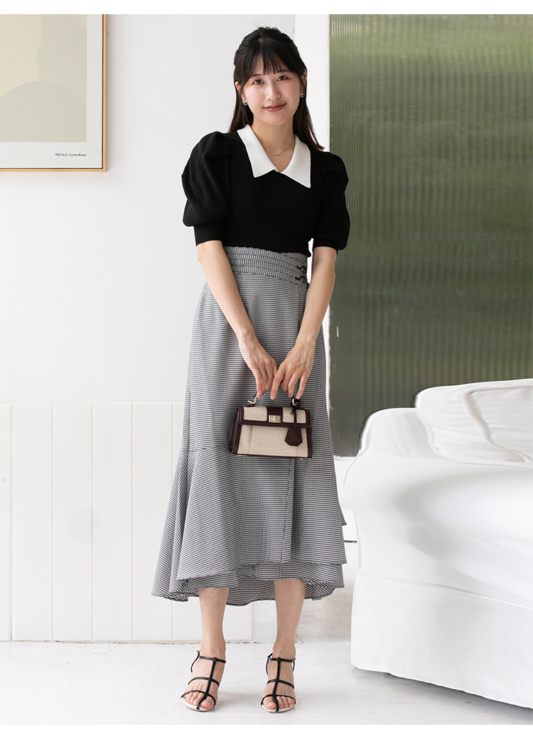 しなやかに揺れる品の良い質感の生地を使用しました。合わせやすいブラック、シーズンムード薫るバーガンディ、シックな色合いのダークブルー、クラシカルなミックスの4色展開でお届けします。