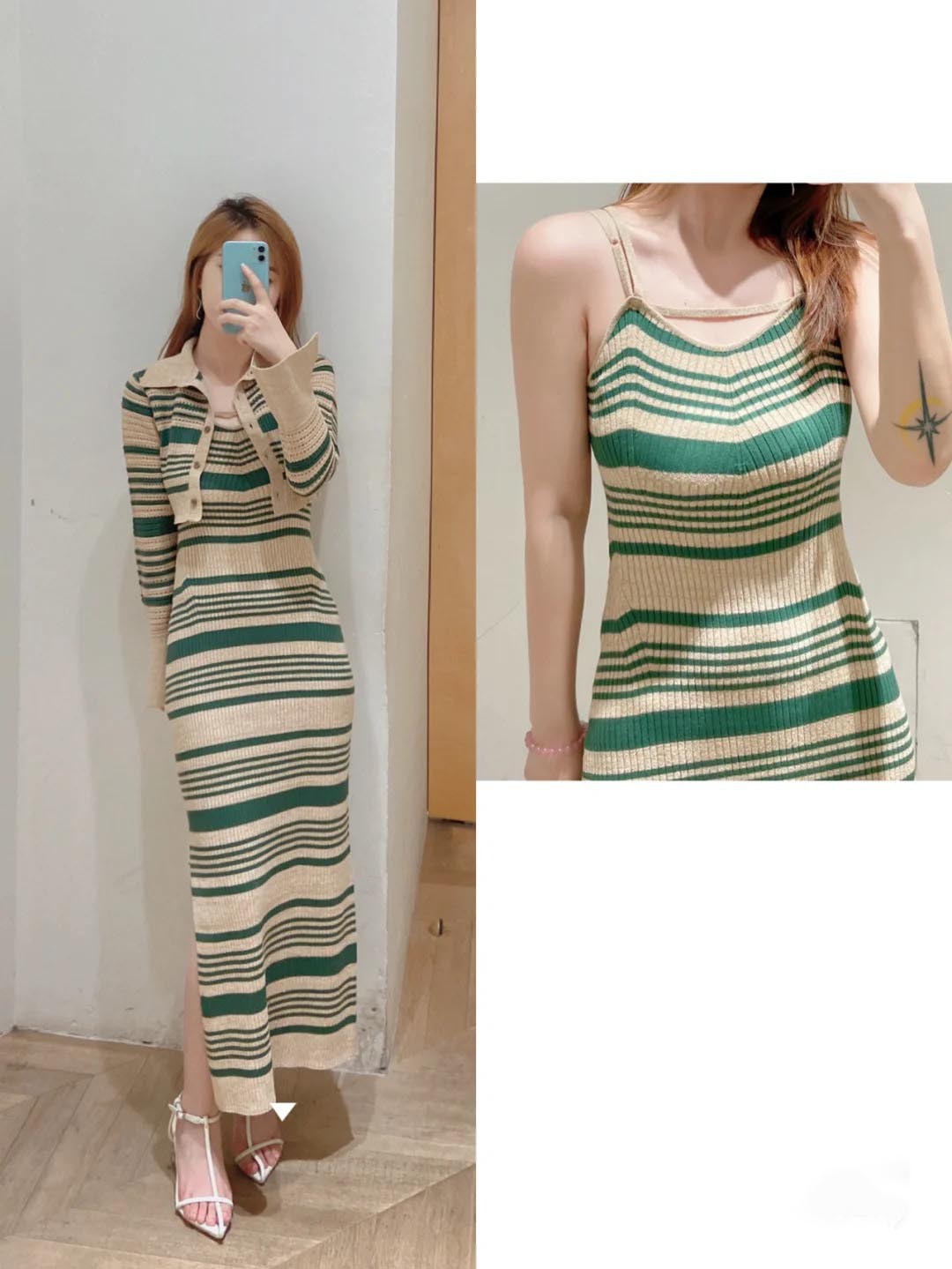 ストレッチ入りの柔らかなリブニットを使用しました。メランジ編みで仕立てたピンク、シンプルな無地のブラック、ベージュ×グリーンのヴィンテージ感の漂う色合いを採用したボーダーの3色展開です。