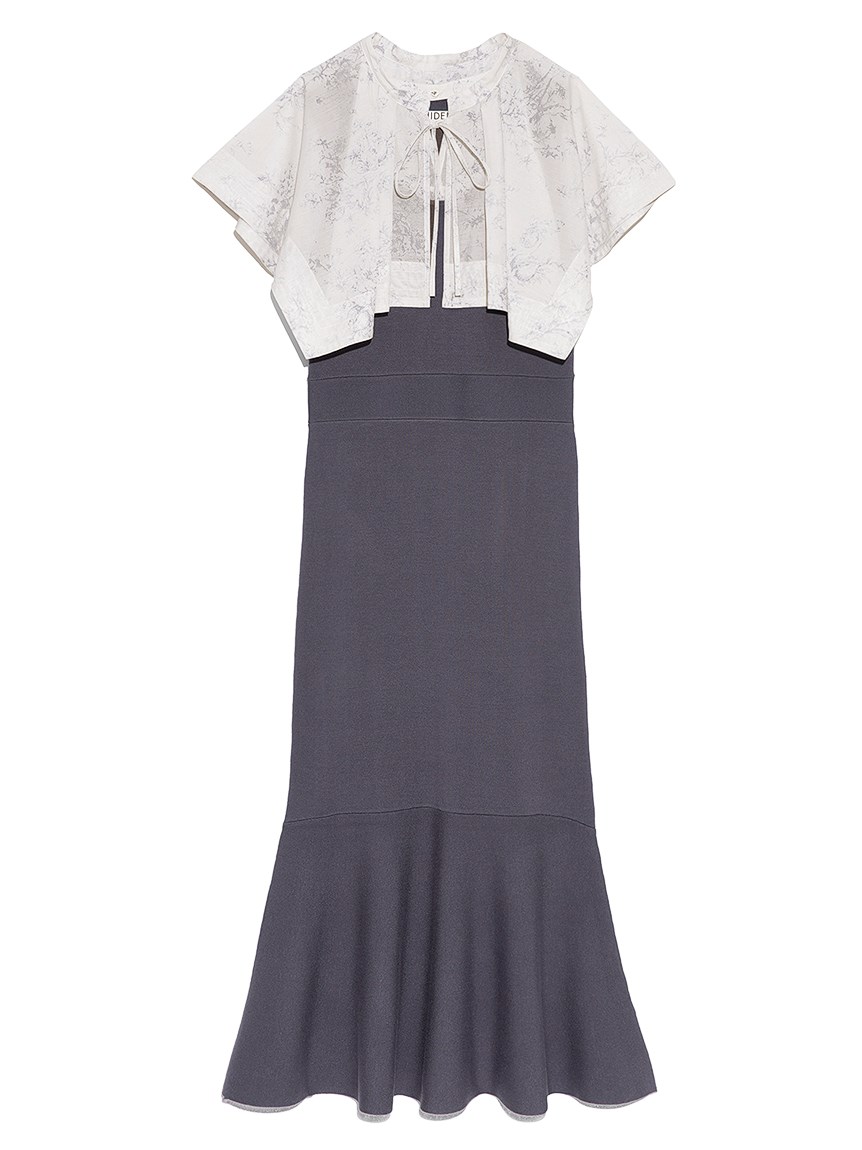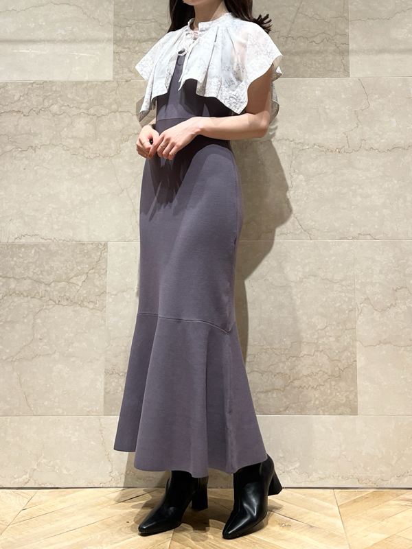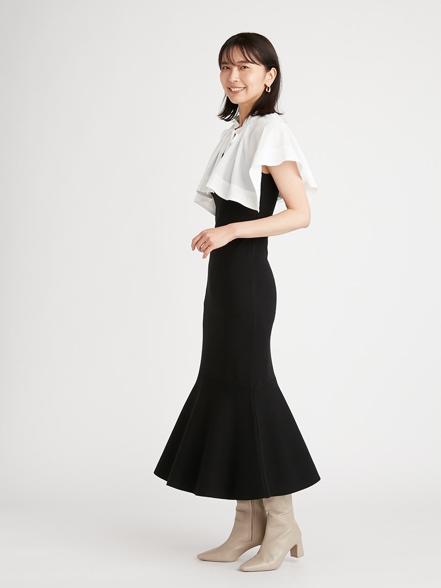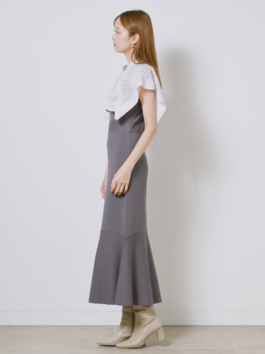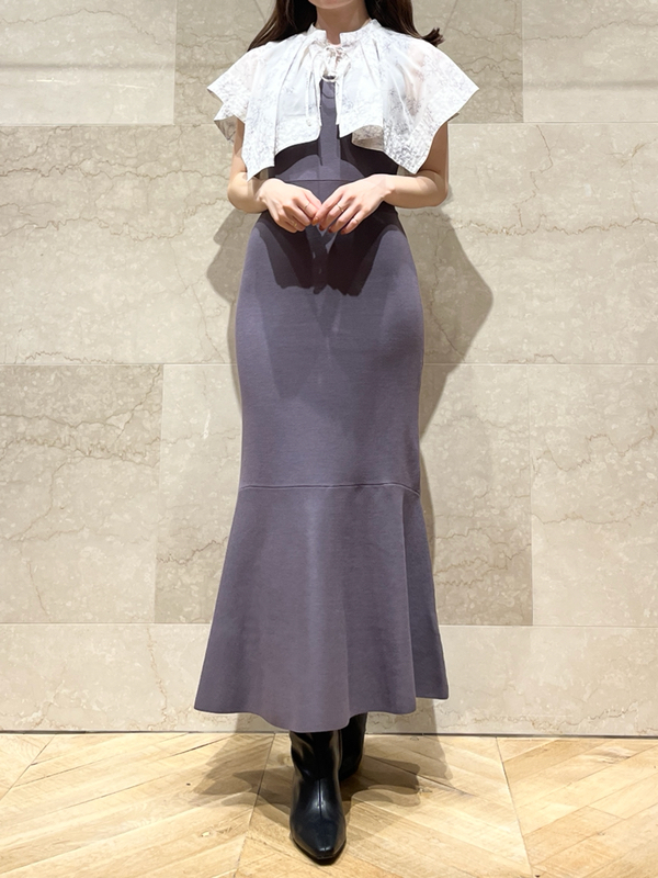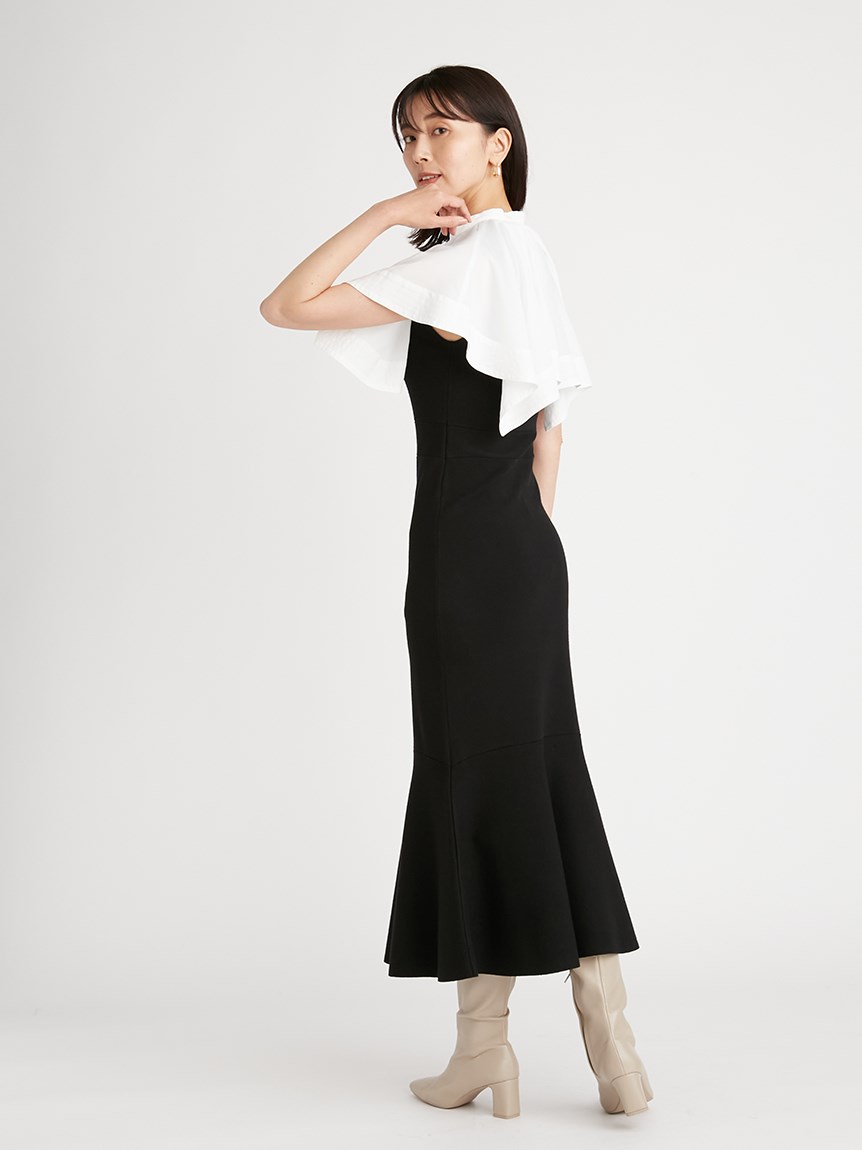 「SNIDEL」で先シーズン人気を集めたニットワンピースが登場。今季トレンドのケープカラーを組み合わせアップデートしました。タックやステッチなど細部にまでこだわったデザインはそのままに、今シーズンは柄の要素も加え鮮度たっぷりに仕上げています。セットで着こなせばこれだけで華やかに決まり、それぞれ別々でも活躍してくれるので、コーディネートの幅は一気に広がります。衿の布帛は取り外し可能で、ノースリーブのニットマーメイドワンピースとしても着用可能です。