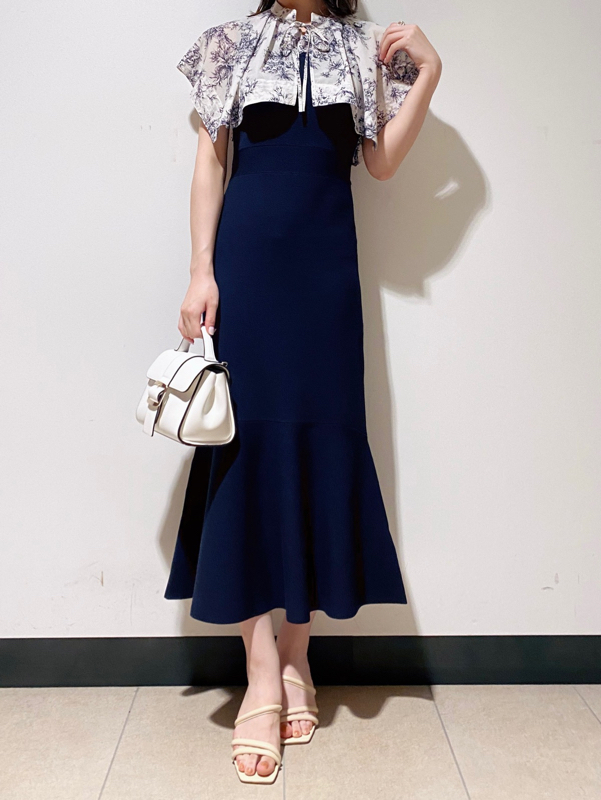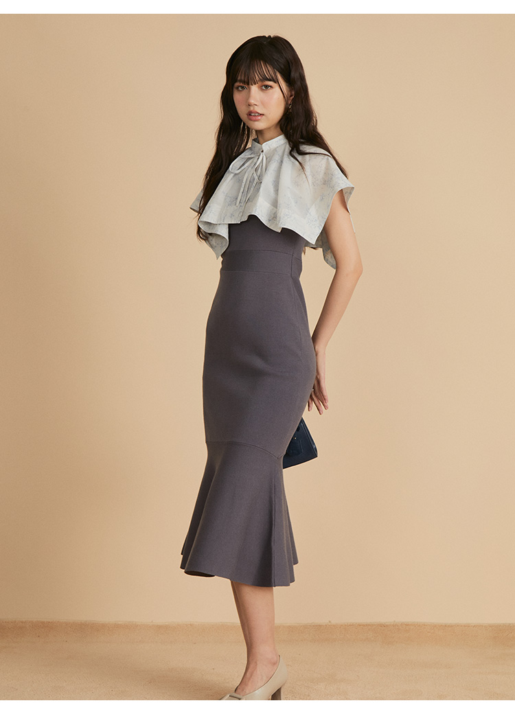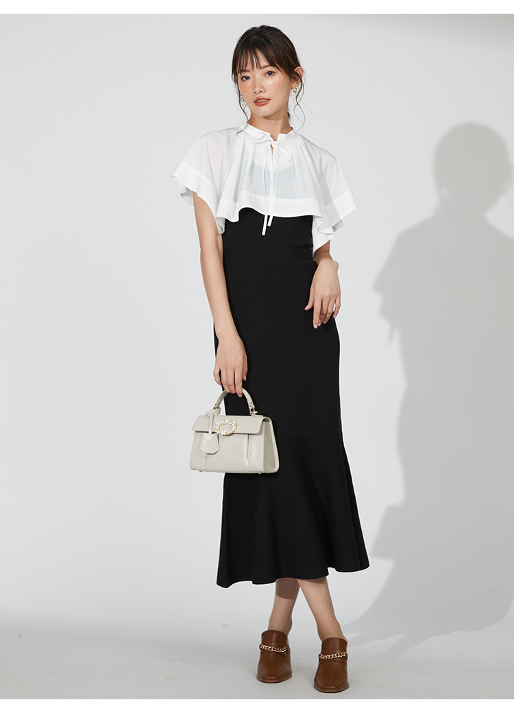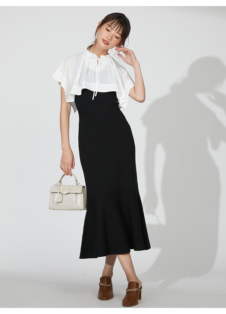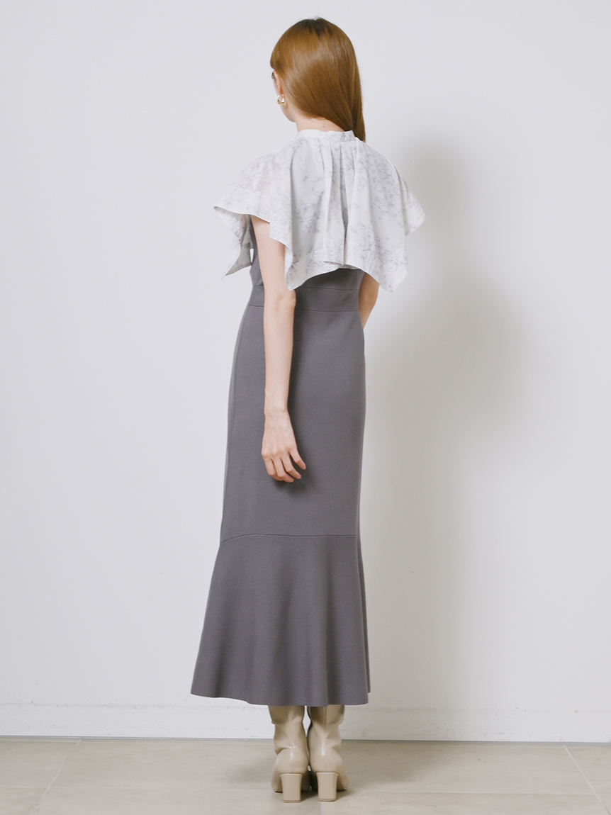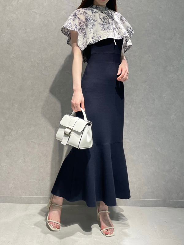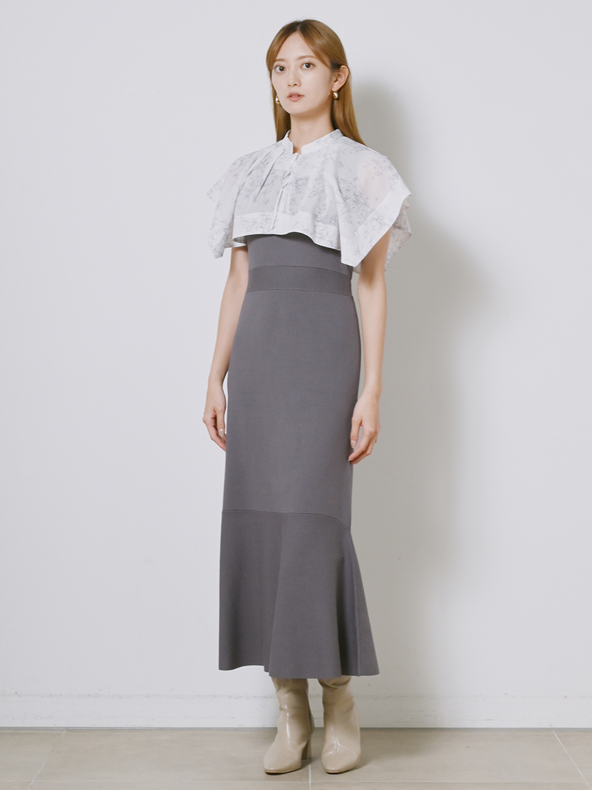 「SNIDEL」で先シーズン人気を集めたニットワンピースが登場。今季トレンドのケープカラーを組み合わせアップデートしました。タックやステッチなど細部にまでこだわったデザインはそのままに、今シーズンは柄の要素も加え鮮度たっぷりに仕上げています。セットで着こなせばこれだけで華やかに決まり、それぞれ別々でも活躍してくれるので、コーディネートの幅は一気に広がります。衿の布帛は取り外し可能で、ノースリーブのニットマーメイドワンピースとしても着用可能です。