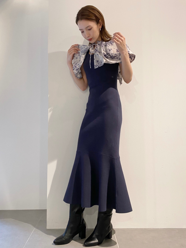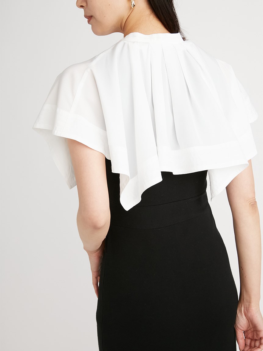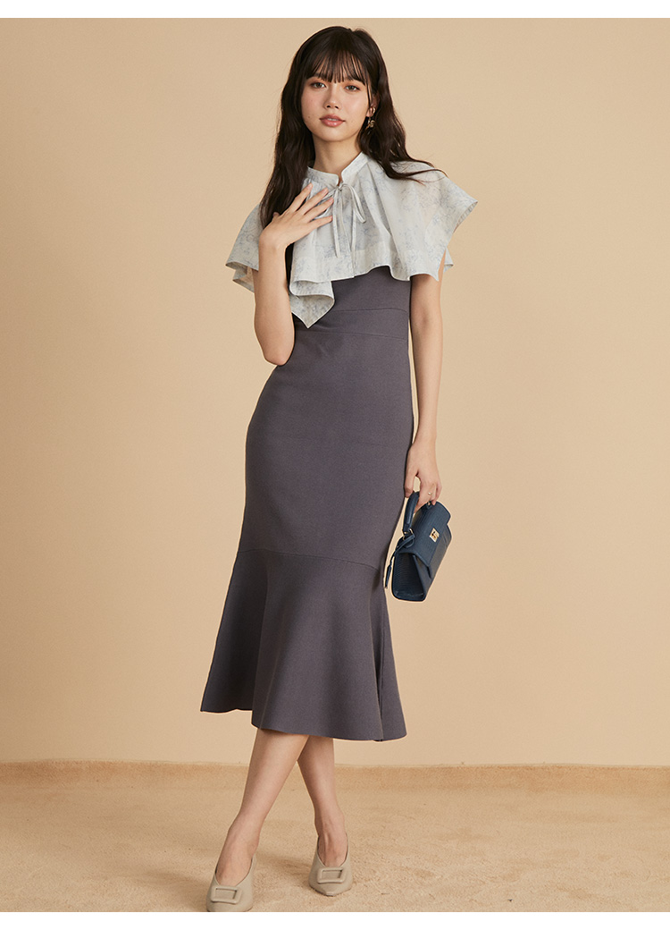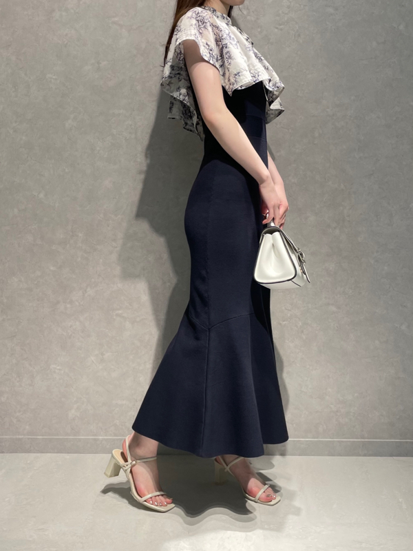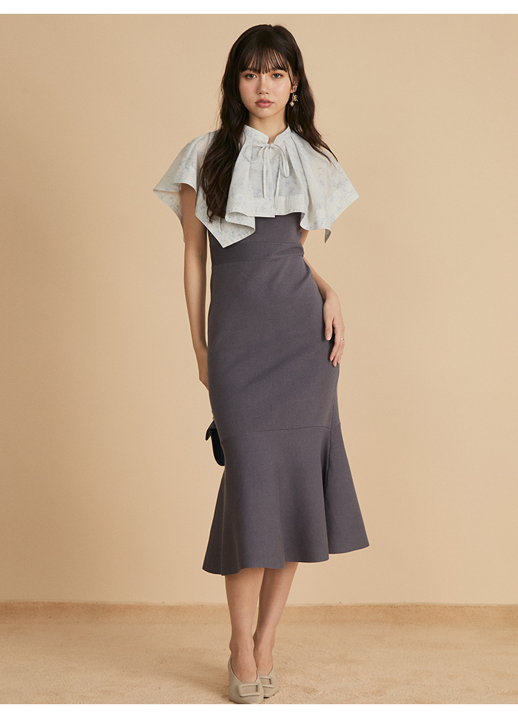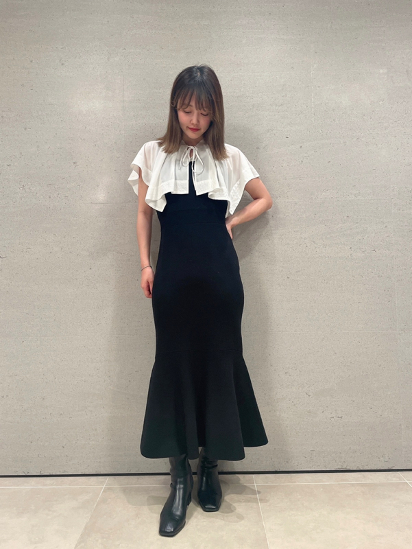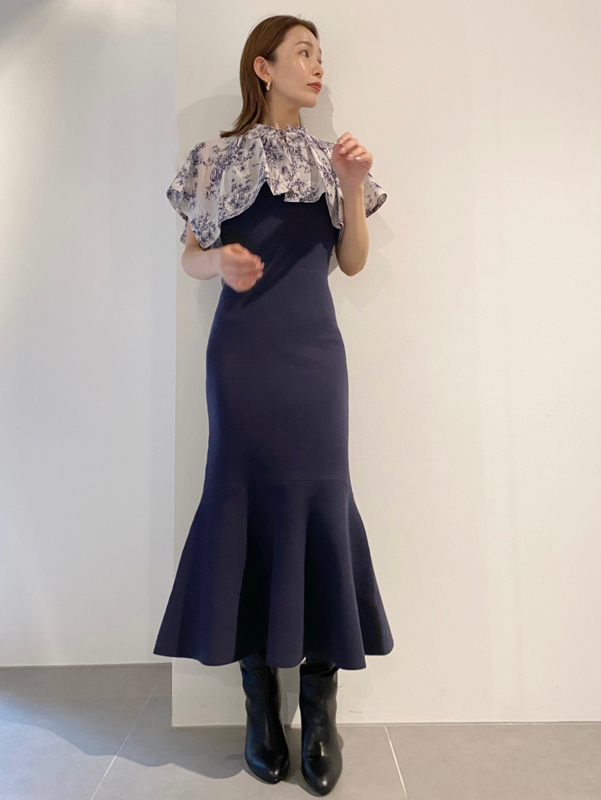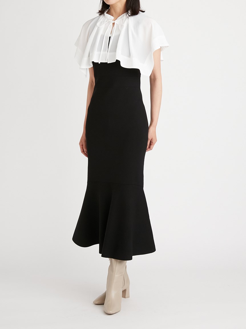 「SNIDEL」で先シーズン人気を集めたニットワンピースが登場。今季トレンドのケープカラーを組み合わせアップデートしました。タックやステッチなど細部にまでこだわったデザインはそのままに、今シーズンは柄の要素も加え鮮度たっぷりに仕上げています。セットで着こなせばこれだけで華やかに決まり、それぞれ別々でも活躍してくれるので、コーディネートの幅は一気に広がります。衿の布帛は取り外し可能で、ノースリーブのニットマーメイドワンピースとしても着用可能です。