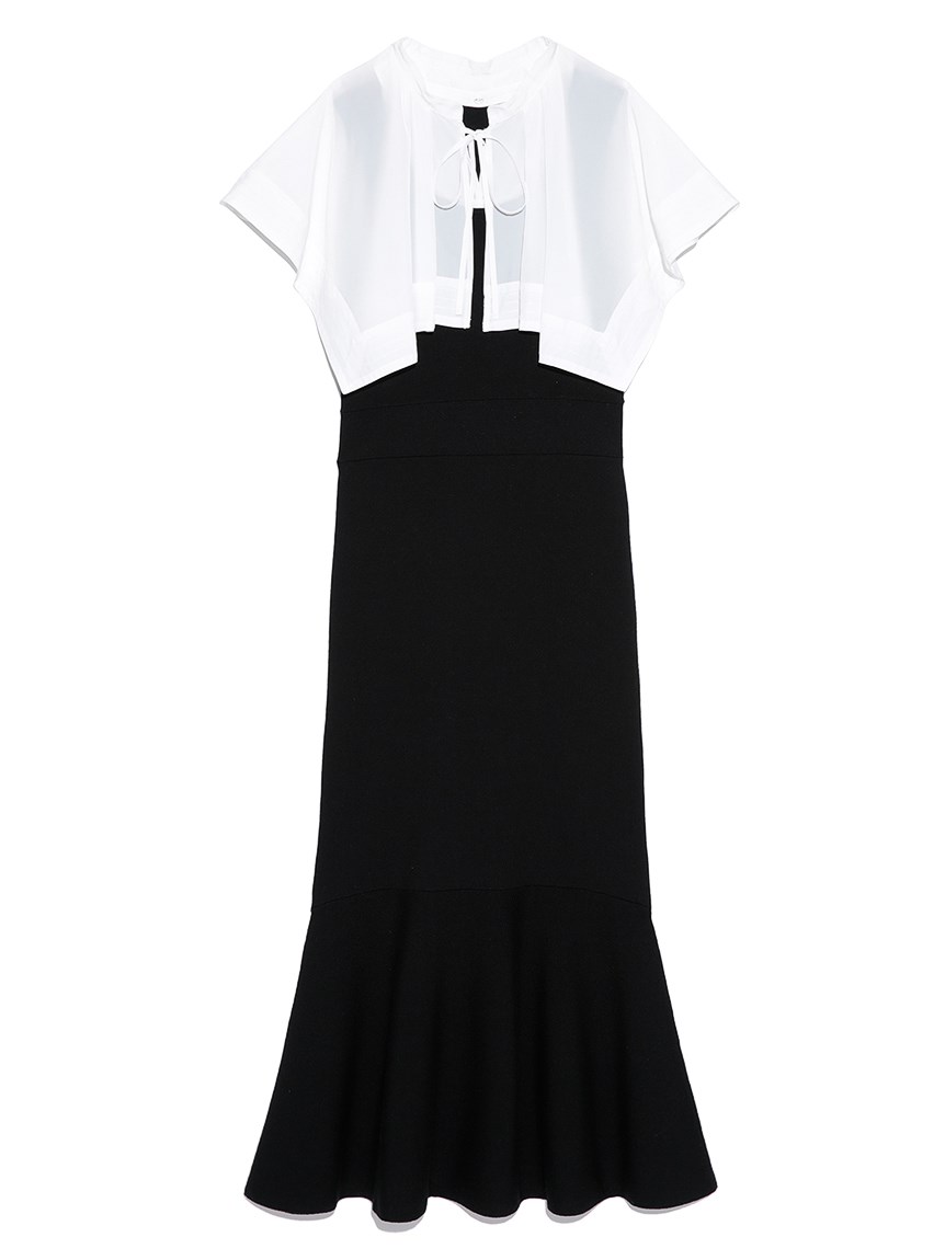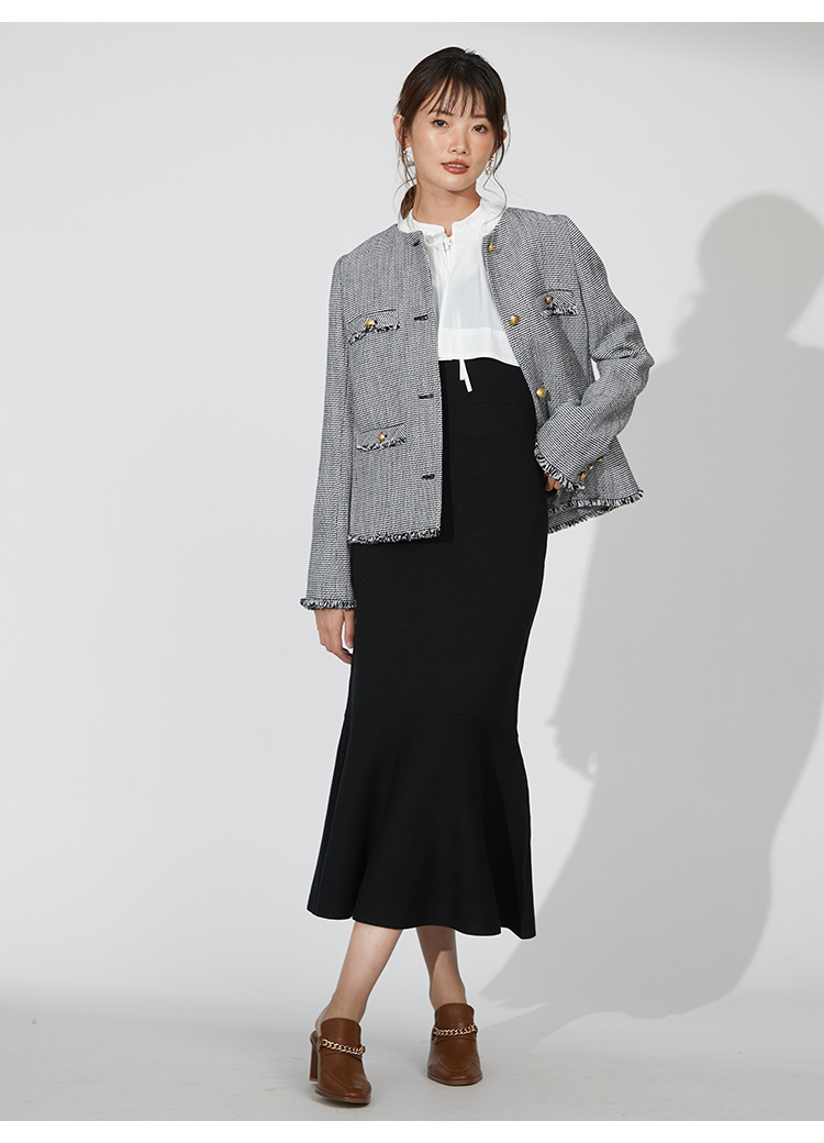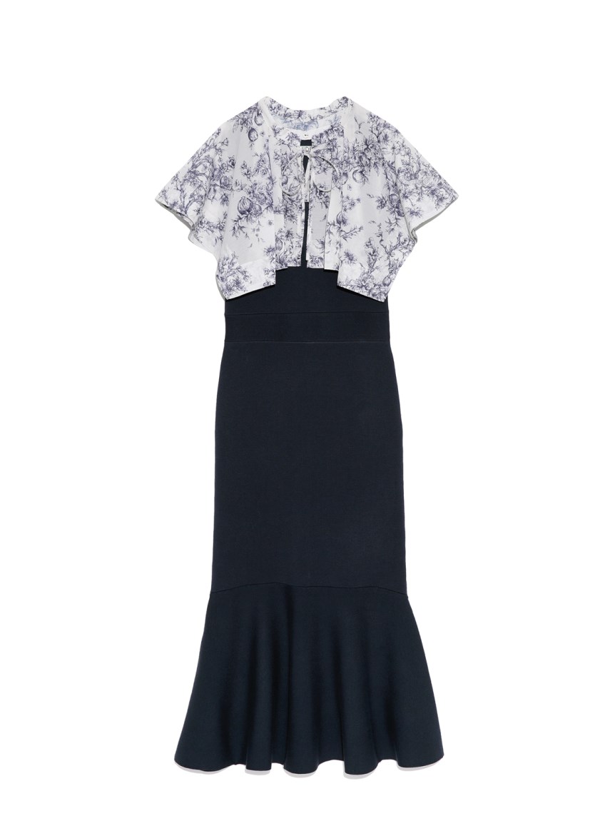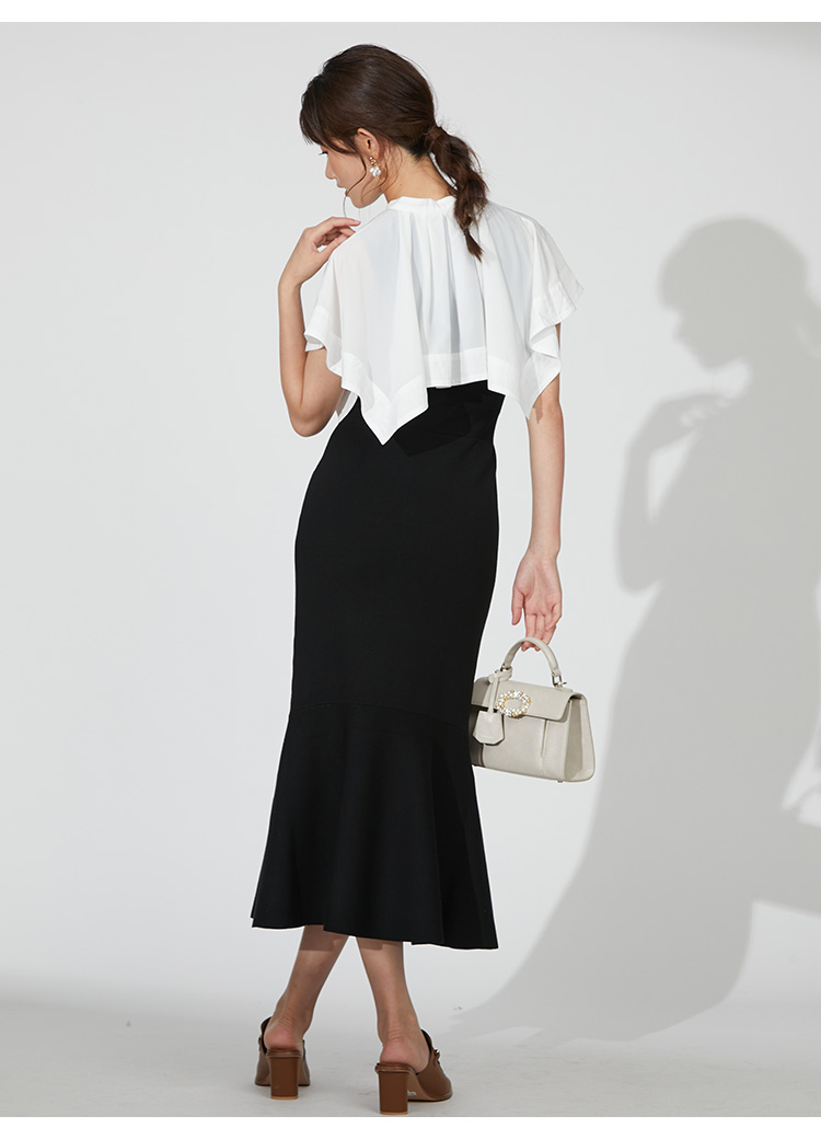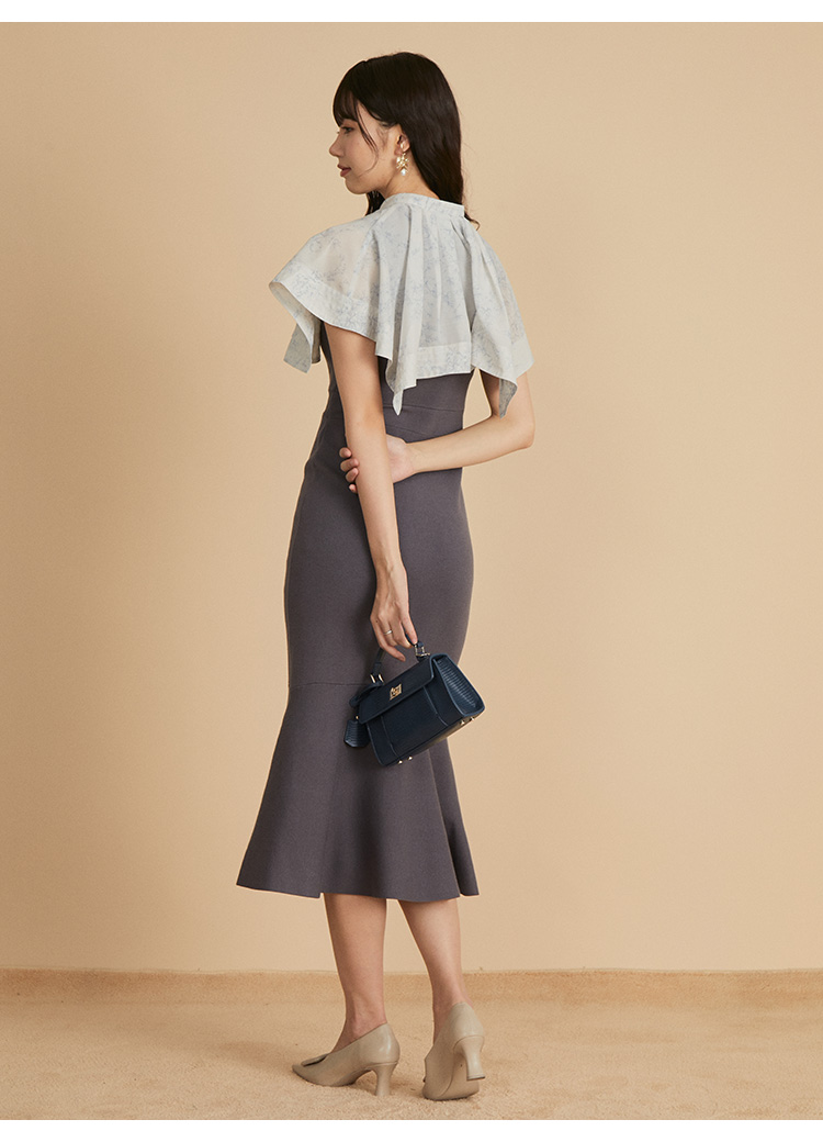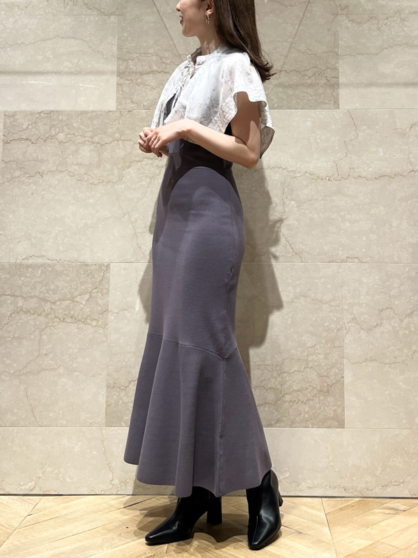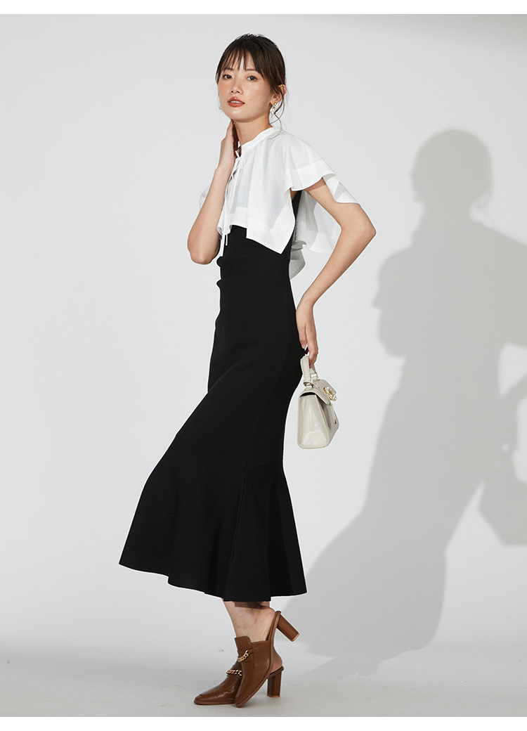 「SNIDEL」で先シーズン人気を集めたニットワンピースが登場。今季トレンドのケープカラーを組み合わせアップデートしました。タックやステッチなど細部にまでこだわったデザインはそのままに、今シーズンは柄の要素も加え鮮度たっぷりに仕上げています。セットで着こなせばこれだけで華やかに決まり、それぞれ別々でも活躍してくれるので、コーディネートの幅は一気に広がります。衿の布帛は取り外し可能で、ノースリーブのニットマーメイドワンピースとしても着用可能です。