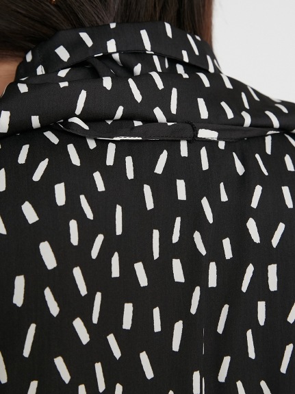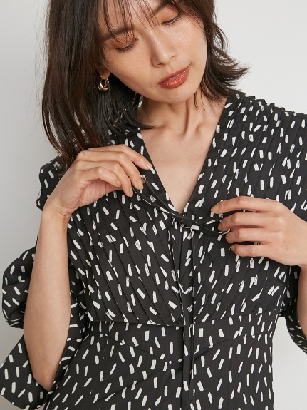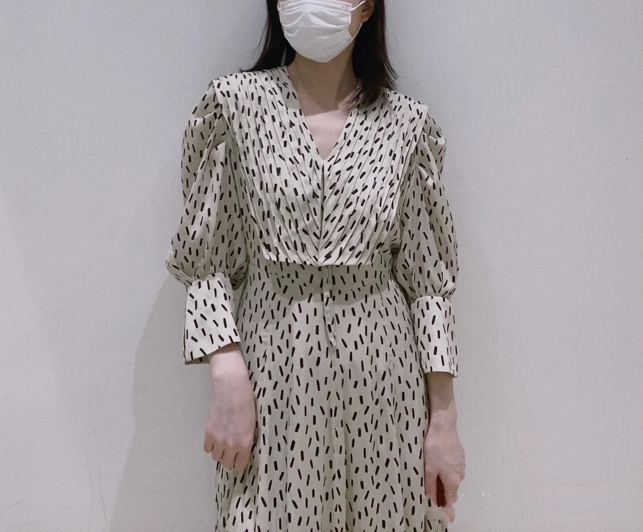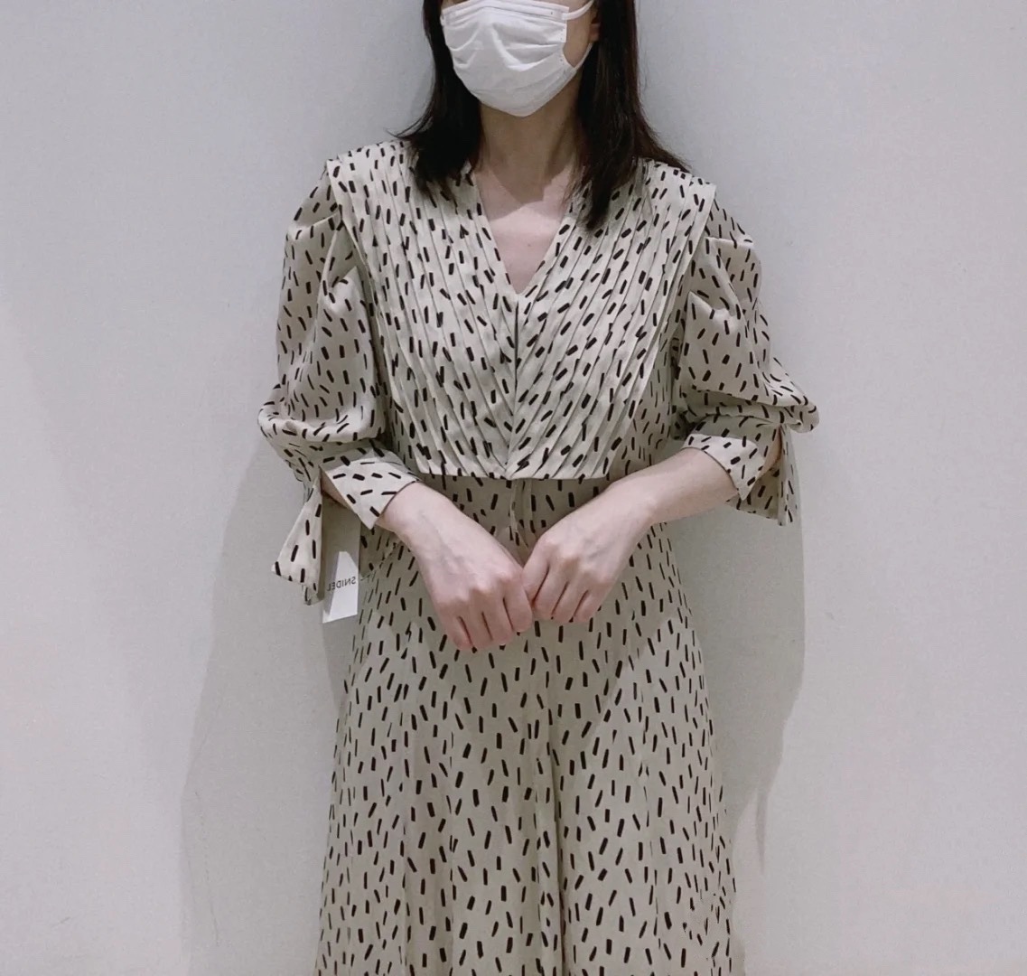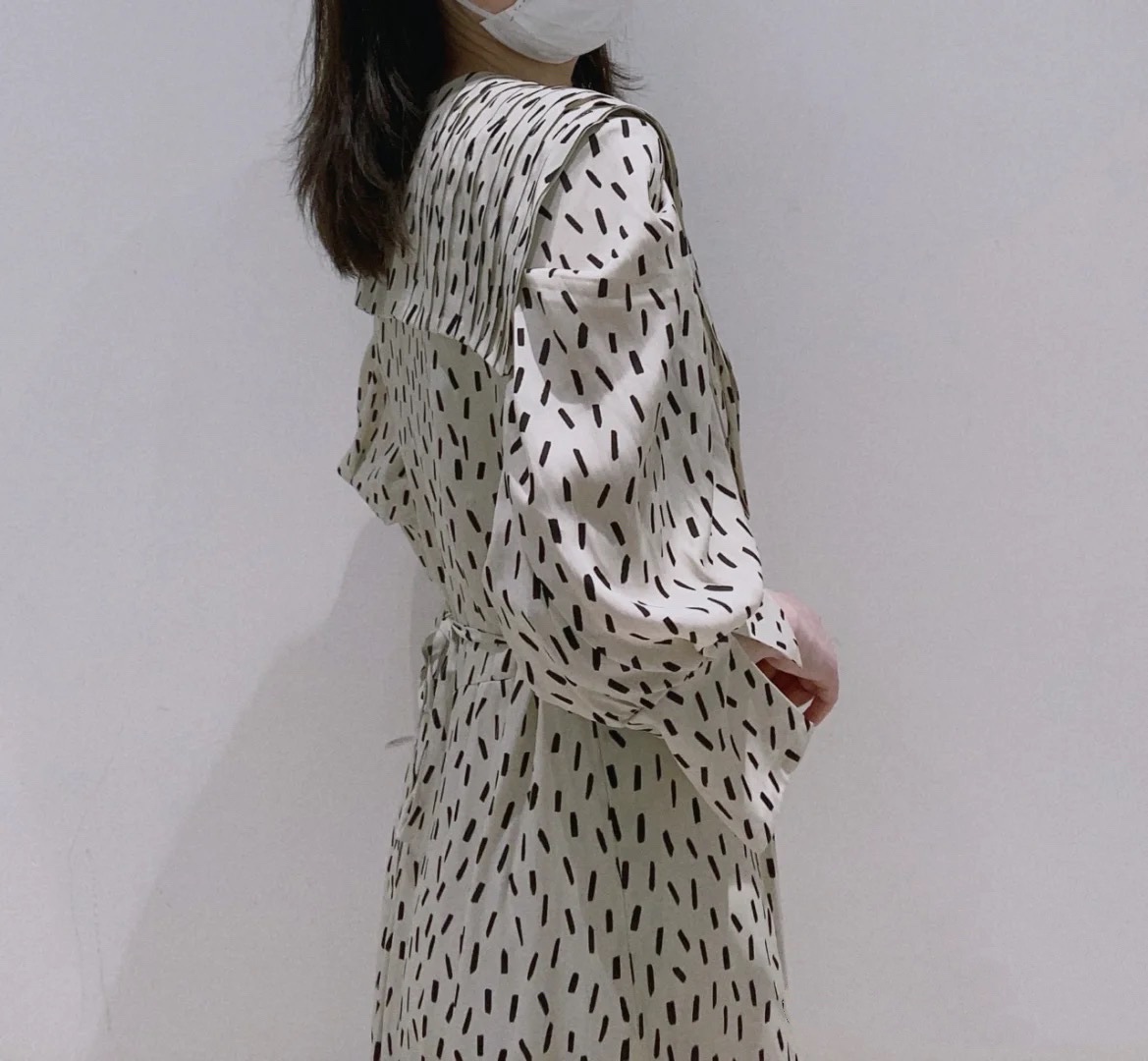 シワになりにくく、落ち感のある生地を使用しました。変形ドットのアイボリーとブラック、無地のダークグレーの3色展開です。