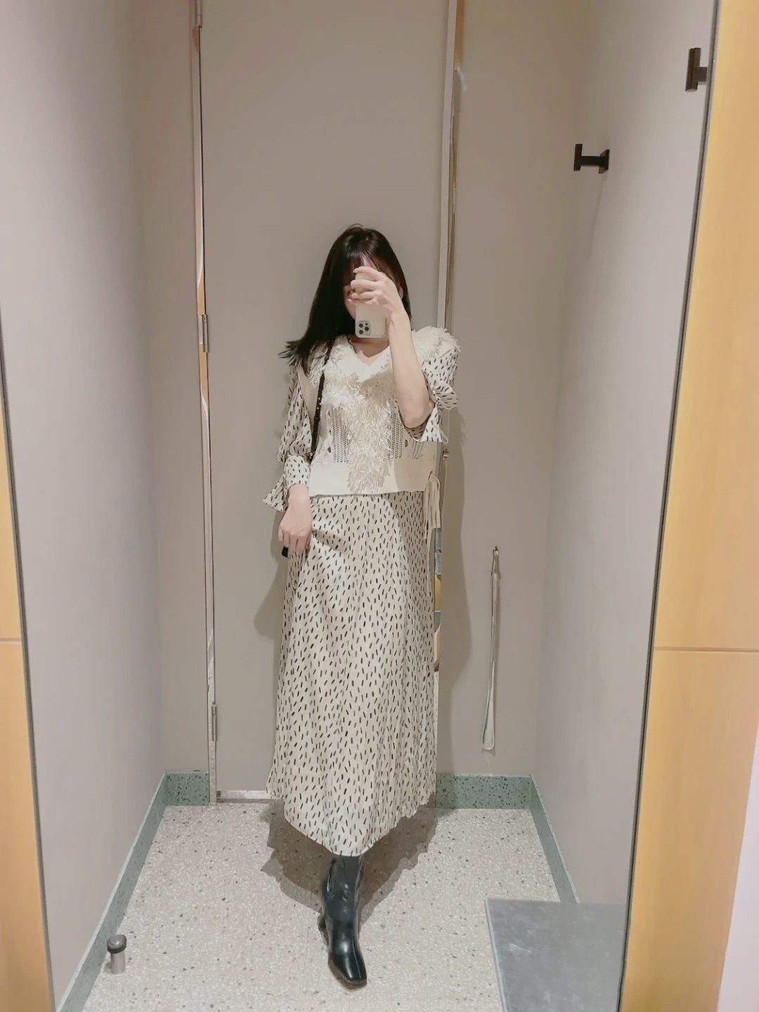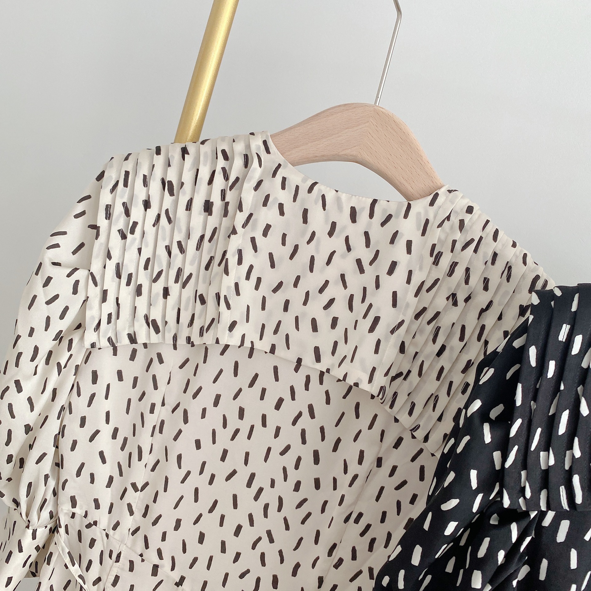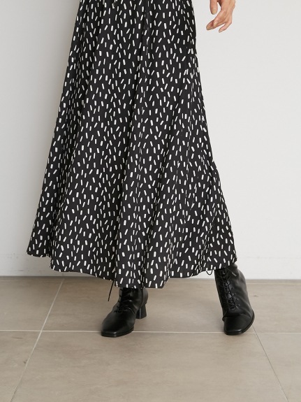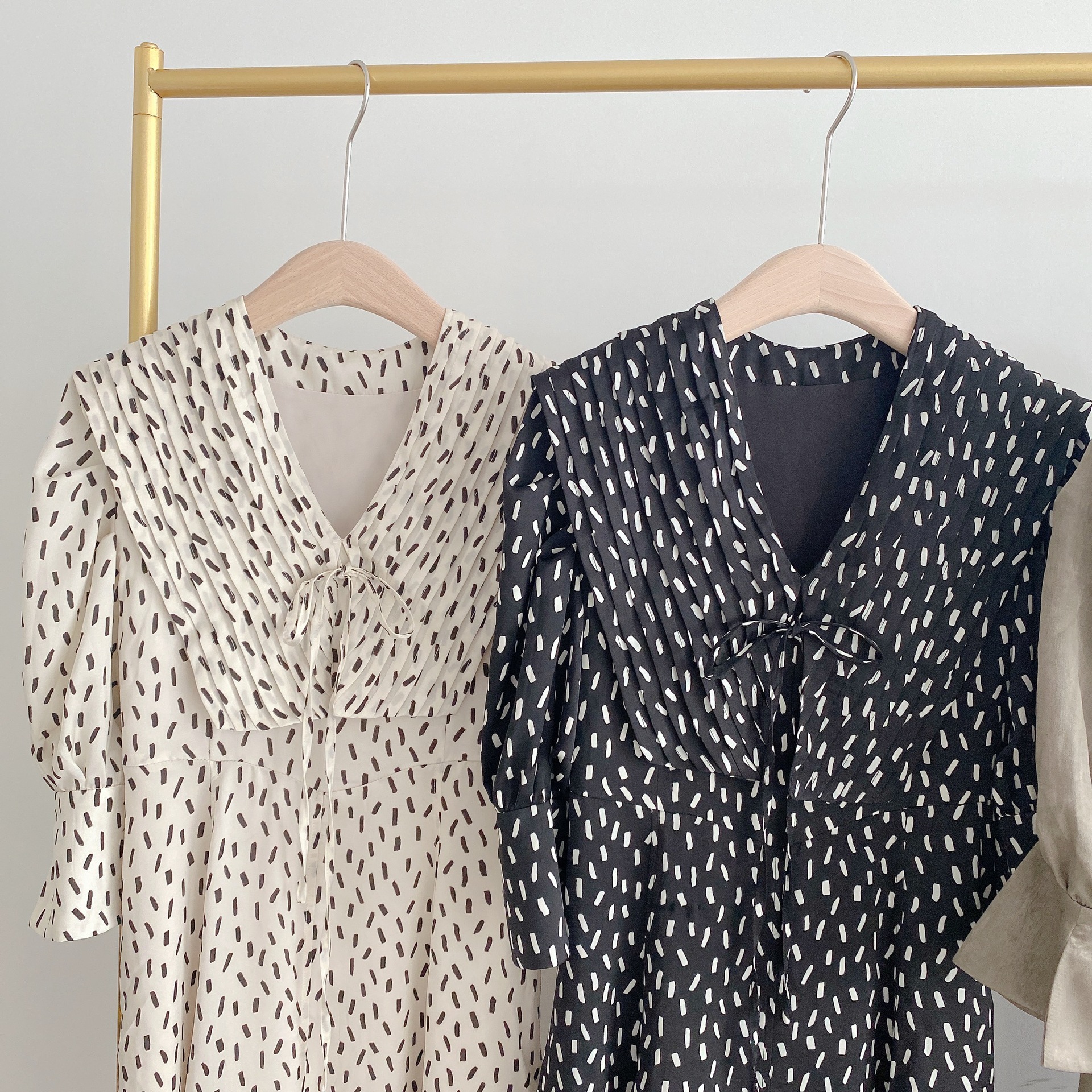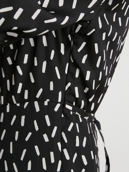 シワになりにくく、落ち感のある生地を使用しました。変形ドットのアイボリーとブラック、無地のダークグレーの3色展開です。