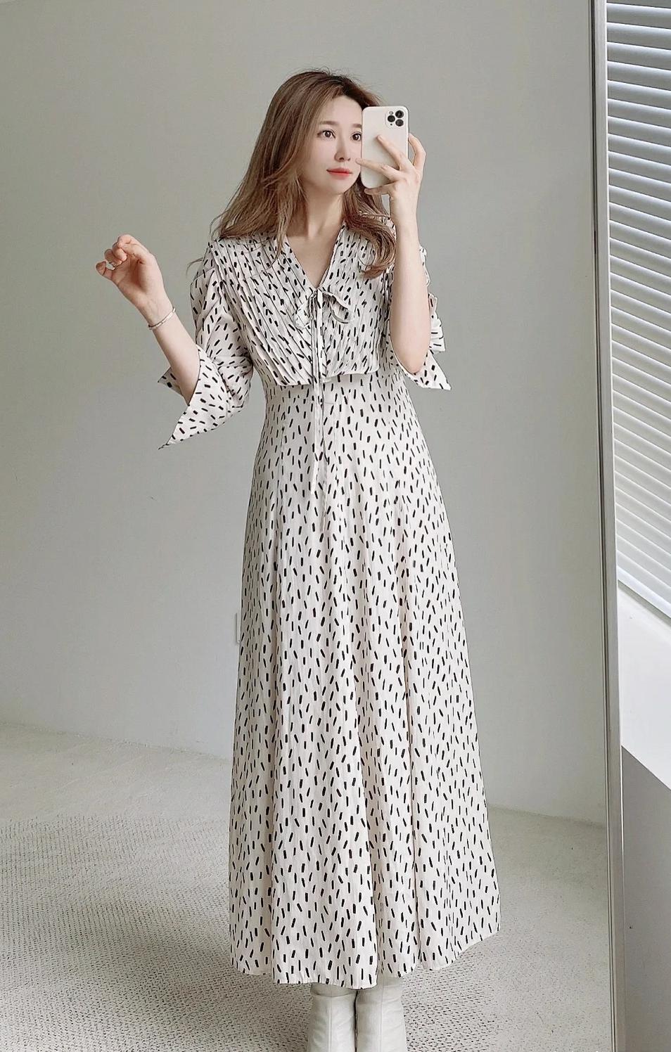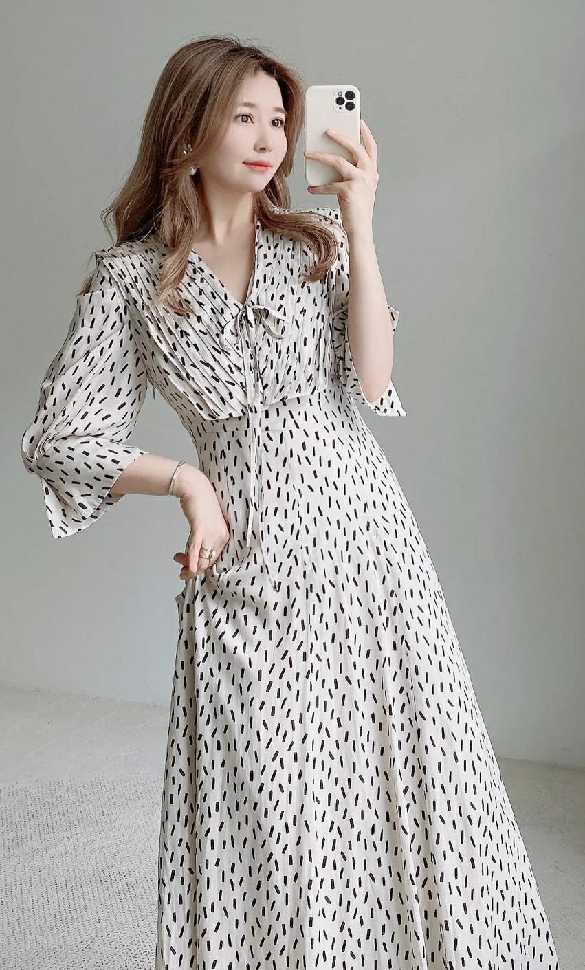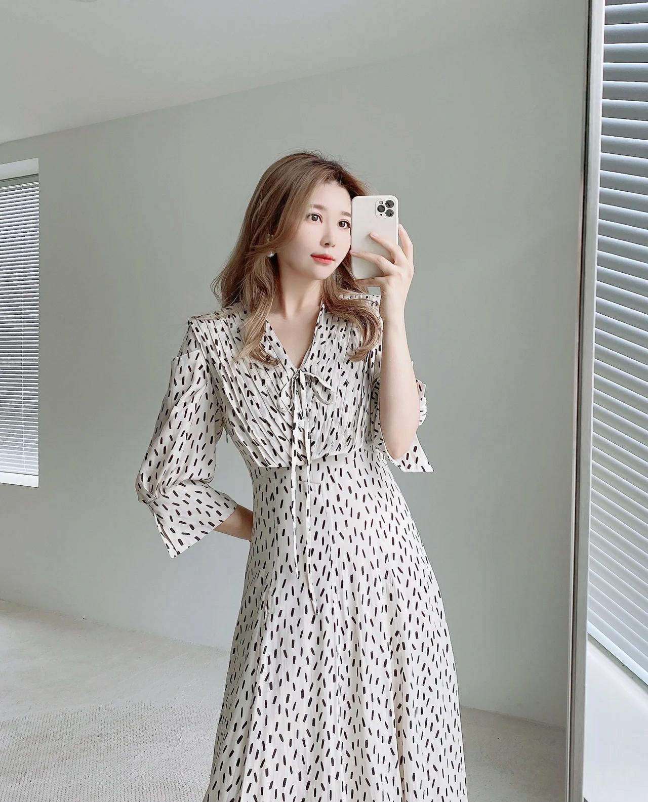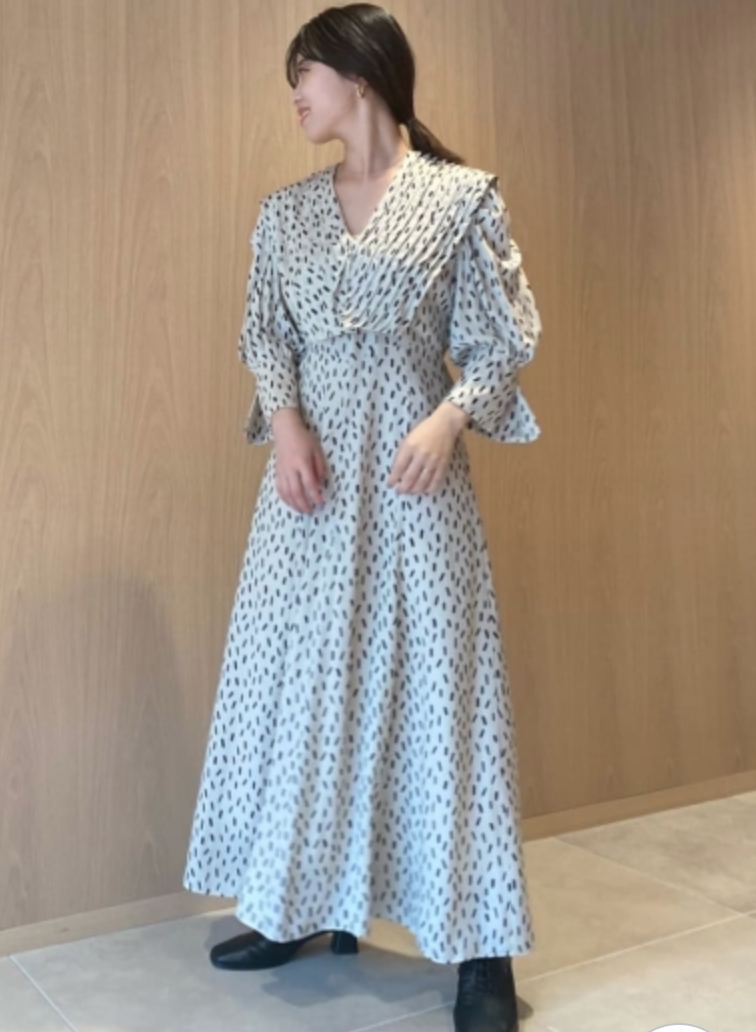 トレンドのビックカラーが目を惹くワンピースは、タックデザインやモードなディティールで、大人に似合う甘さ控えめのビターな印象に。スペシャルメイドな遊び心を効かせつつも、女性らしい胸元の開き具合や美しいナローシルエットで、「SNIDEL」らしいレディな印象へと昇華させました。ドラマティックなパフショルダーは可憐な印象を後押し。センシュアルな装いへと導きます。