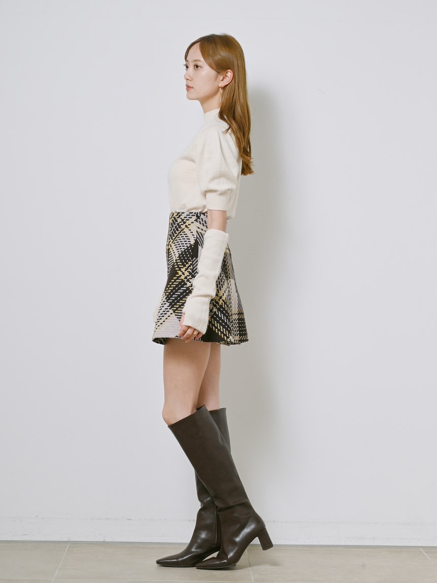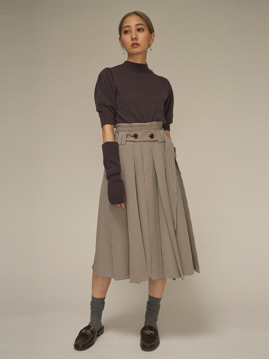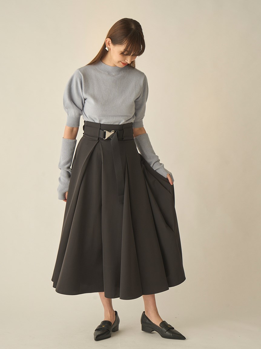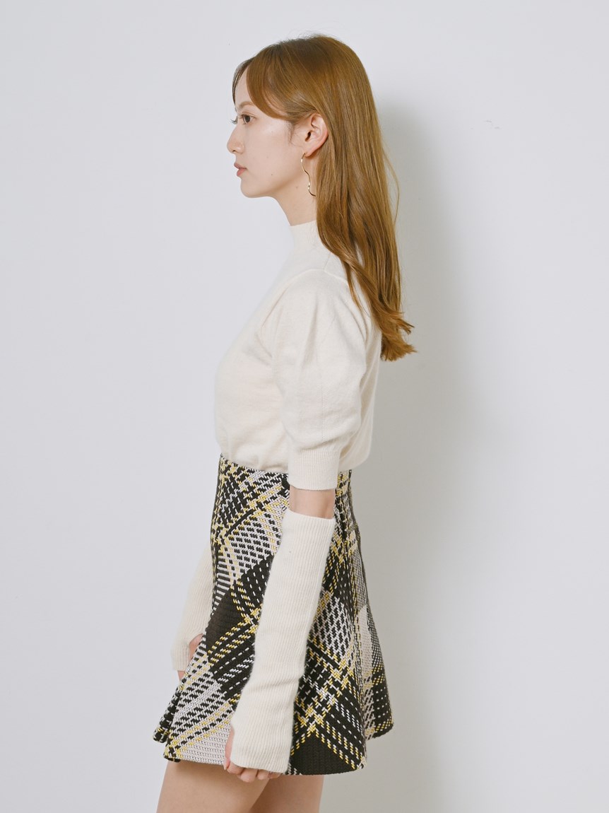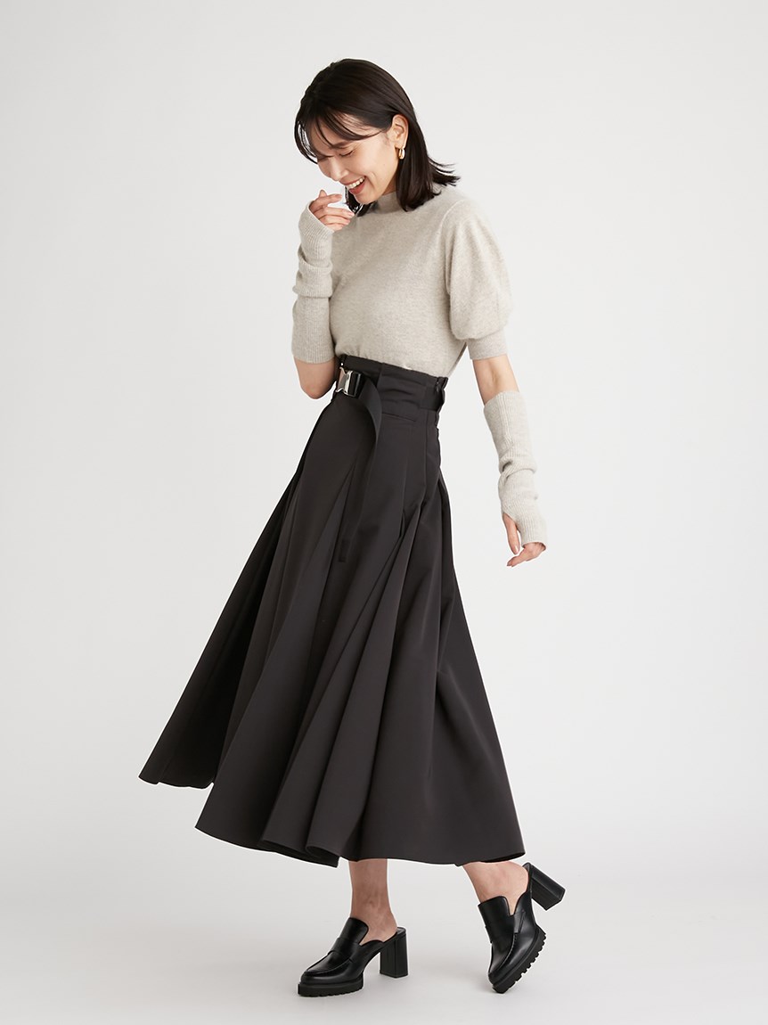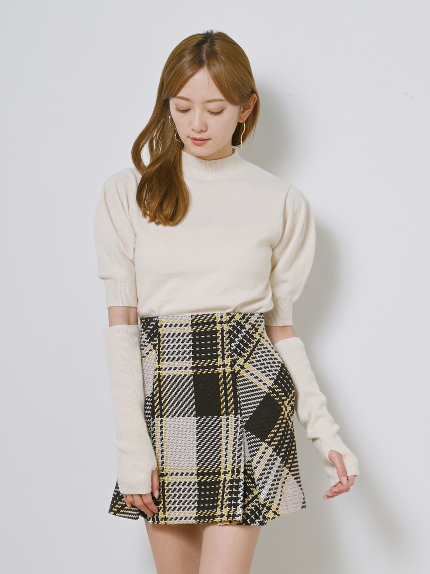 女性らしいボリュームスリーブのニットプルオーバーとアームウォーマーのセットアイテム。五分袖なので夏から秋の季節の変わり目から着られ、アームウォーマーをプラスすれば寒い季節もカバーできる優秀な1着です。アームウォーマーは長めに仕立てているので少しクシュっとさせてニュアンスたっぷりに。フィンガーレスで携帯の操作などもしやすく、実用性もしっかりと押さえています。