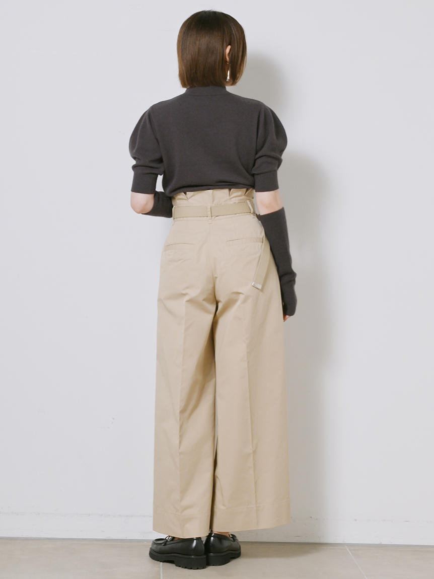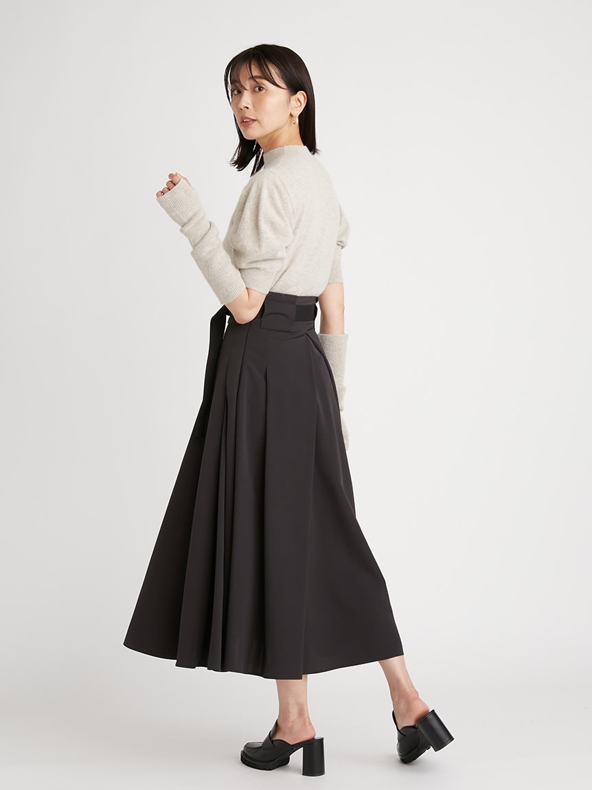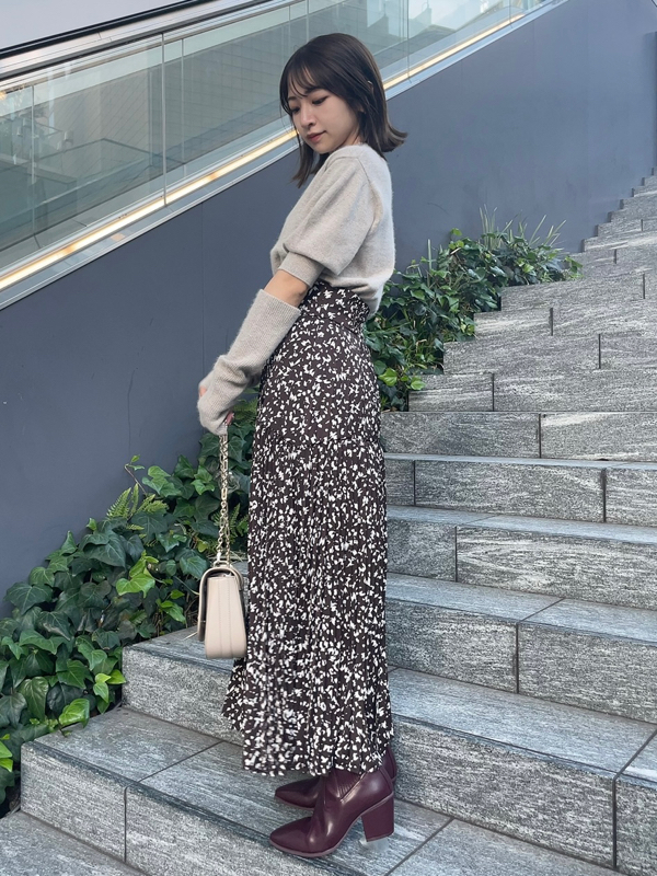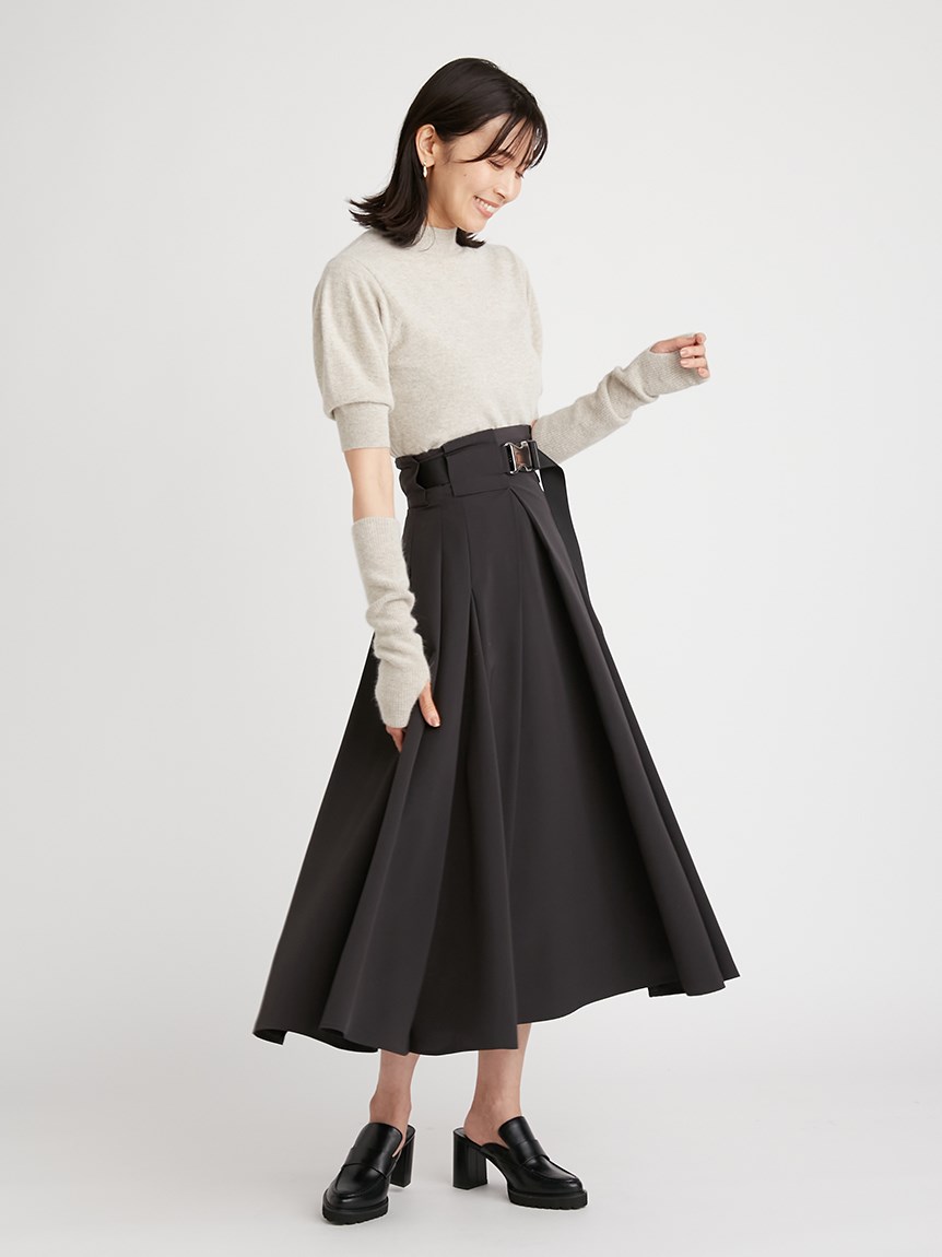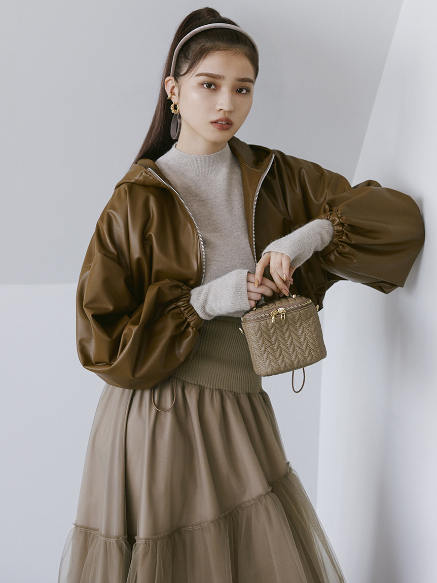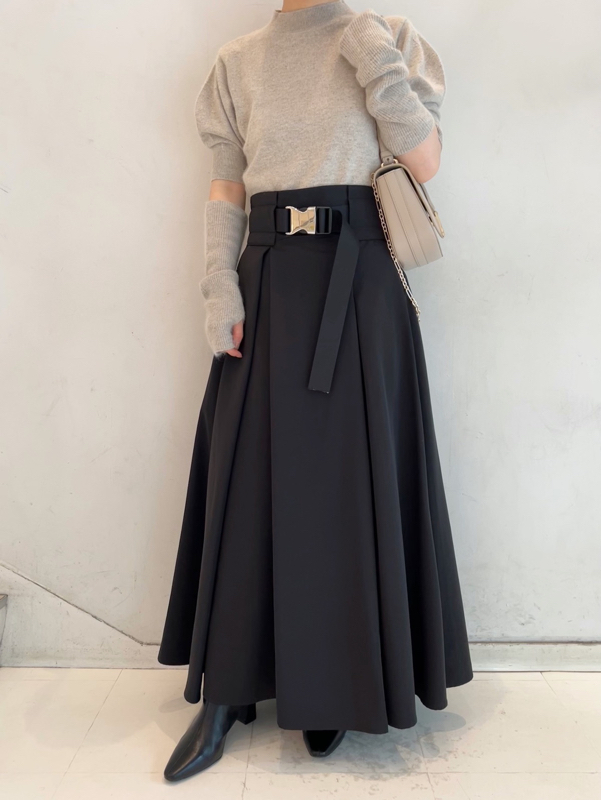 起毛感のあるフェミニンなニット素材を使用しました。深みのあるカラートーンのチャコールグレー、着まわしやすいグレーベージュ、ペールトーンでニュアンスのあるライトブルーの3色に加え、WEB限定で、フェミニンにも合わせやすいアイボリーを作りました。