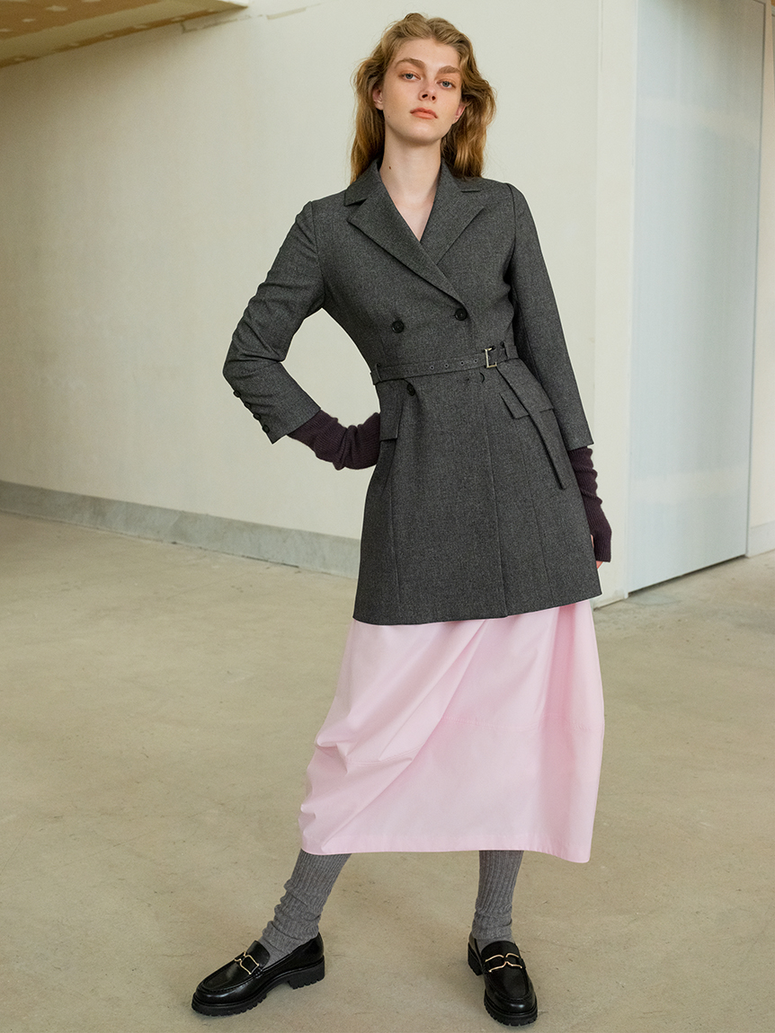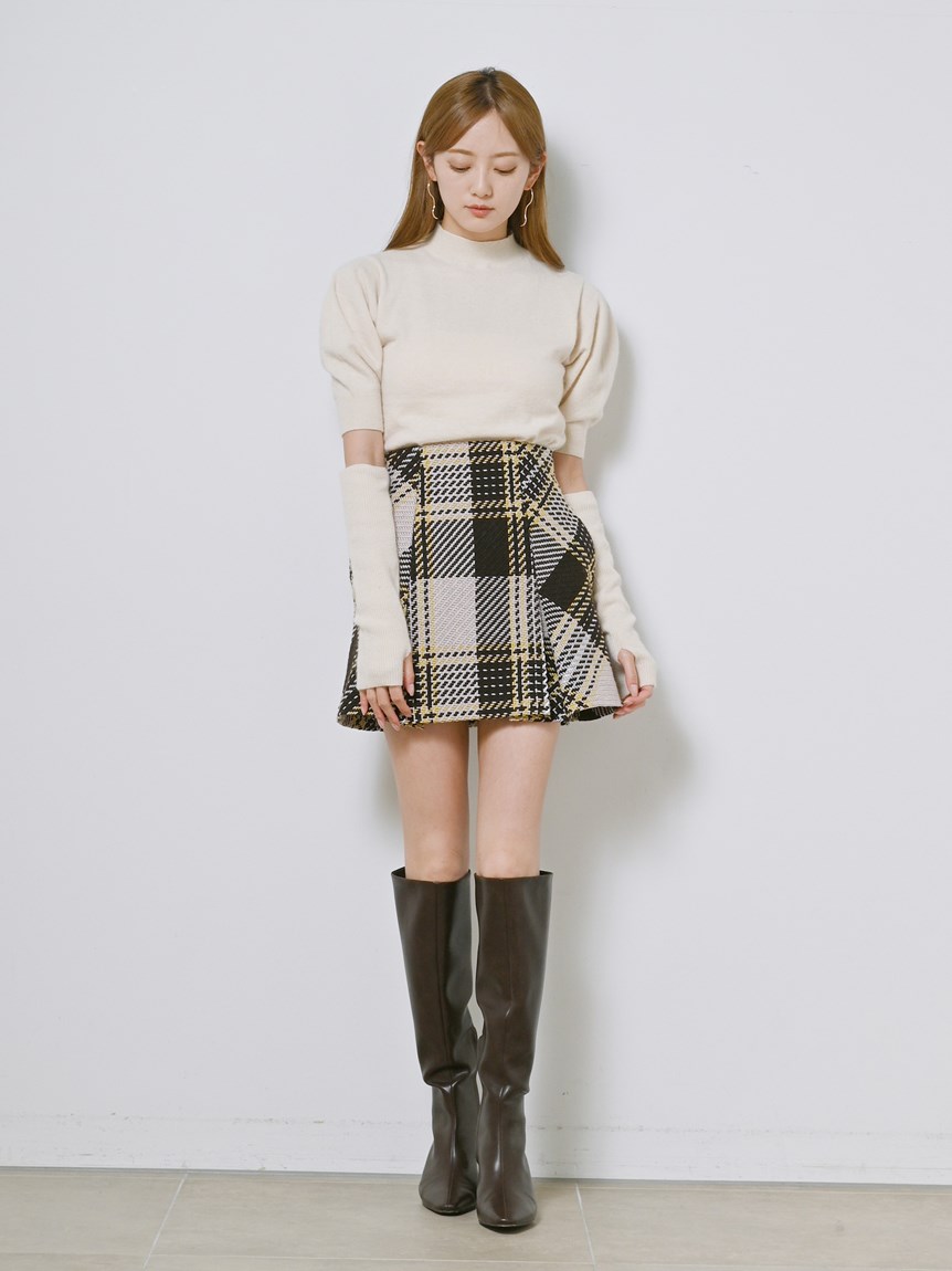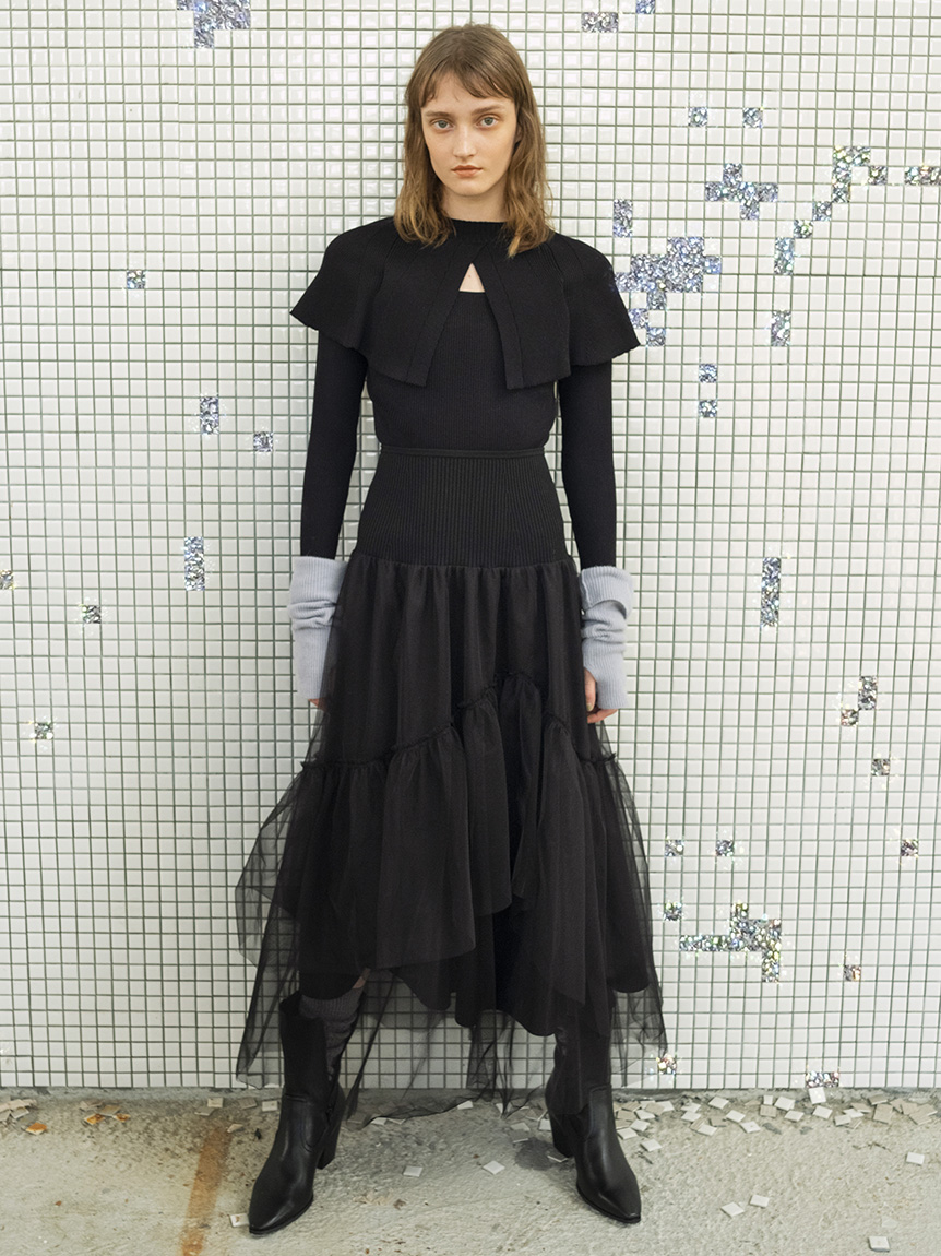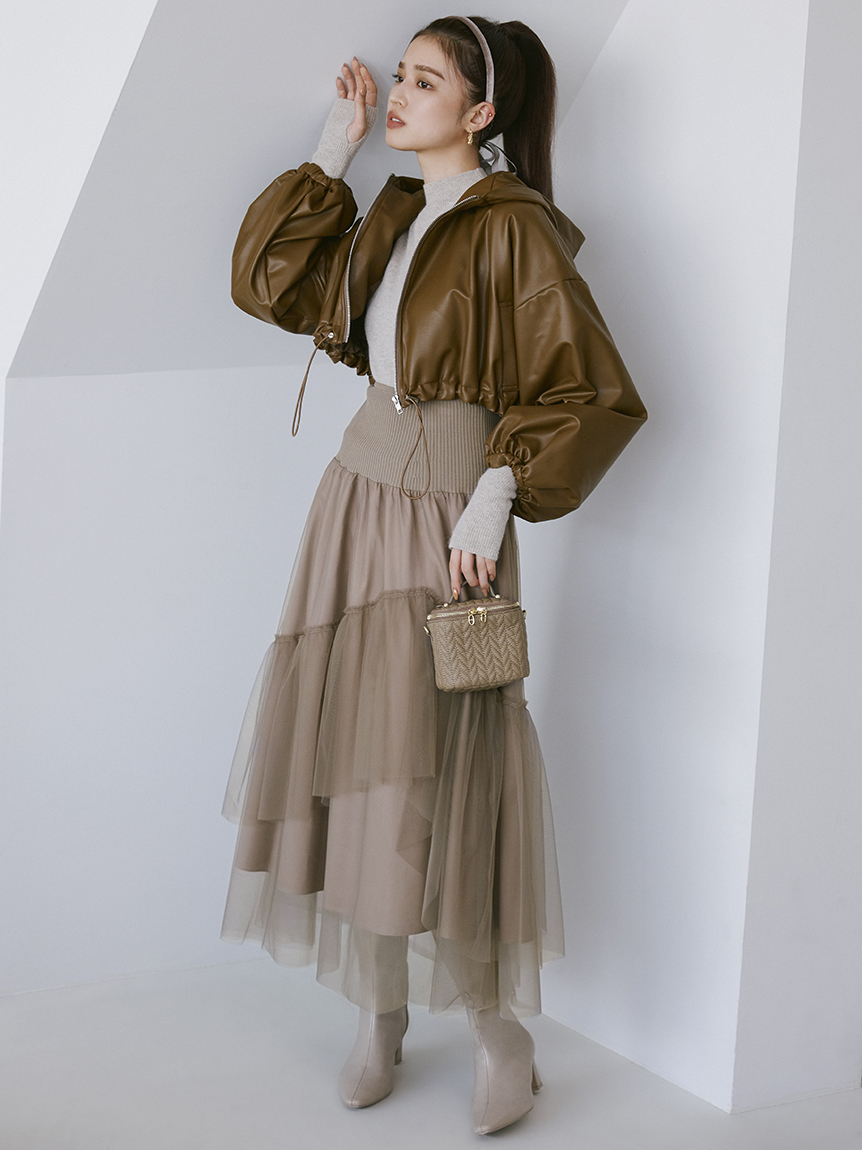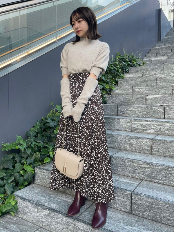 起毛感のあるフェミニンなニット素材を使用しました。深みのあるカラートーンのチャコールグレー、着まわしやすいグレーベージュ、ペールトーンでニュアンスのあるライトブルーの3色に加え、WEB限定で、フェミニンにも合わせやすいアイボリーを作りました。