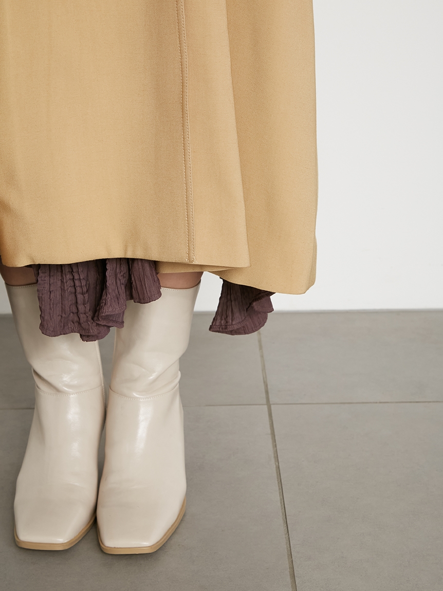ソフトな肌さわりと上質な光沢感があり、シワになりにくい素材を使用しました。スタンダードなアイボリーとベージュに、深みのある色合いのグリーを加えた3色展開。